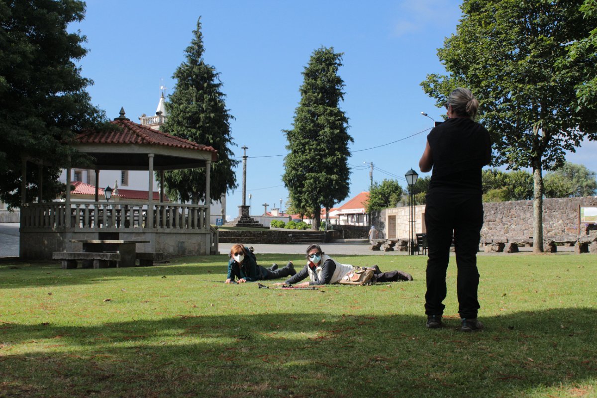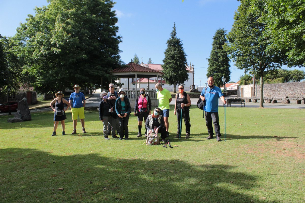 Partimos do centro de São Lourenço, por volta das 9.30 horas, depois da fotografia da praxe (entenda-se com alguns mascarados, outros nem tanto) em direcção ao viveiro, onde seguimos o trilho dos romeiros a São João de Arga.