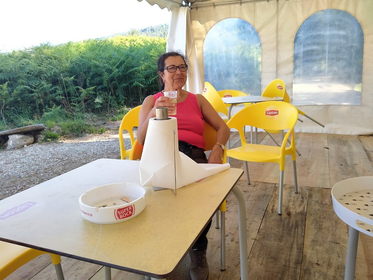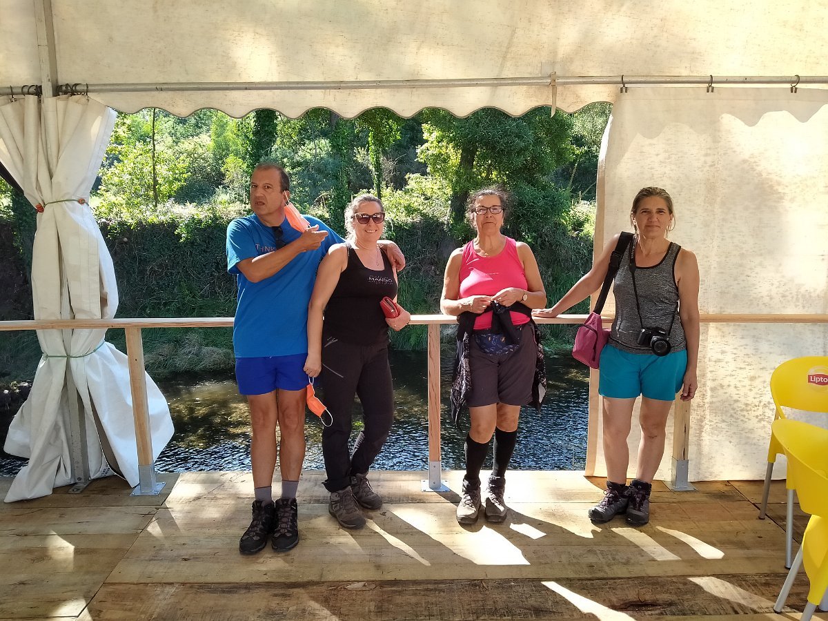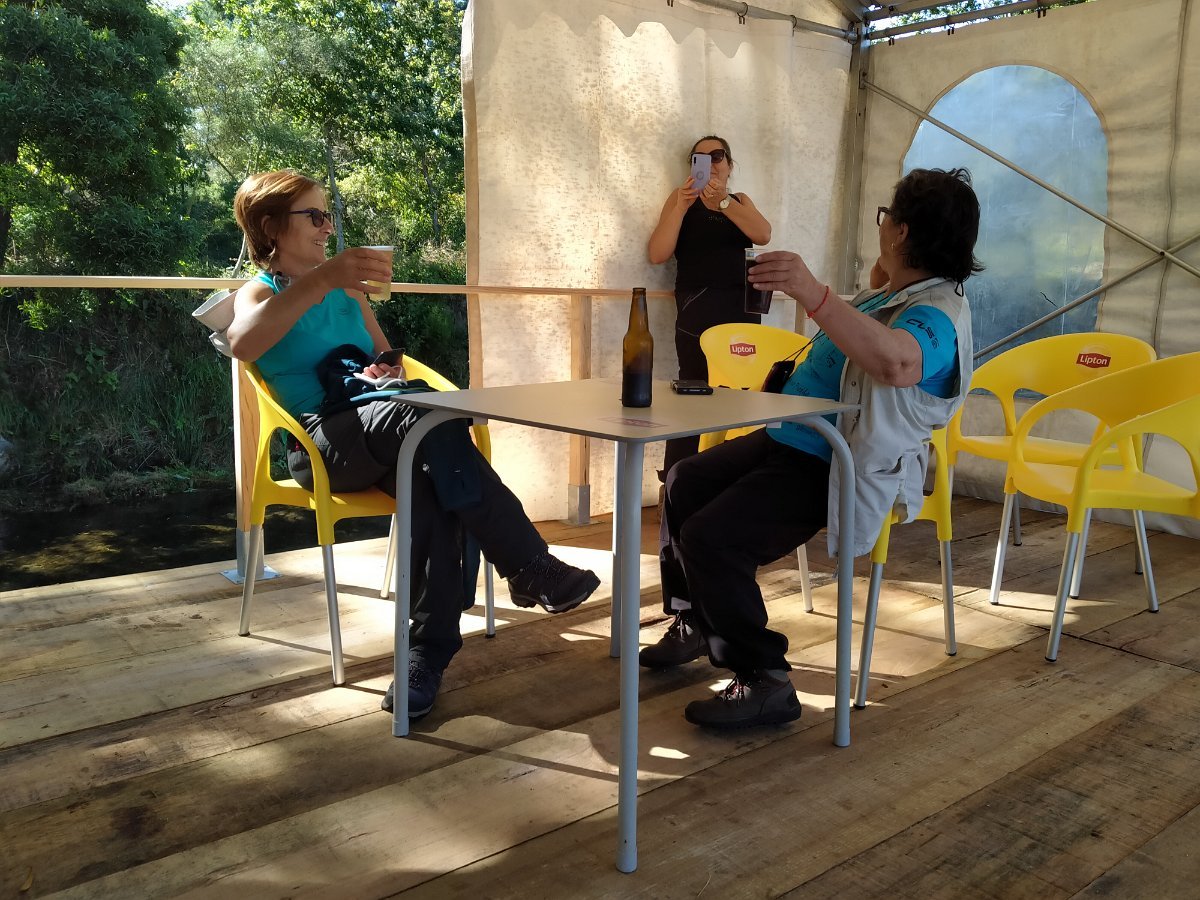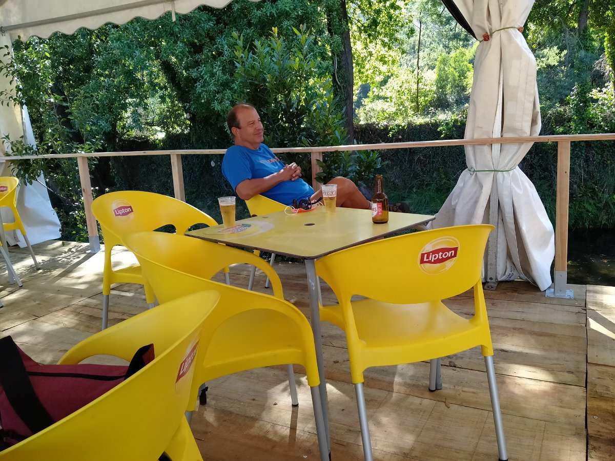 Como há hábitos que não se perdem, mas tendo em atenção o cumprimento das regras de segurança e distanciamento impostas por esta nova realidade do COVID, por unanimidade decidimos retemperar forças com alguns comes e bebes num bar instalado no Parque de Merendas de São João, em Amonde, numa agradável esplanada instalada junto ao Rio.
