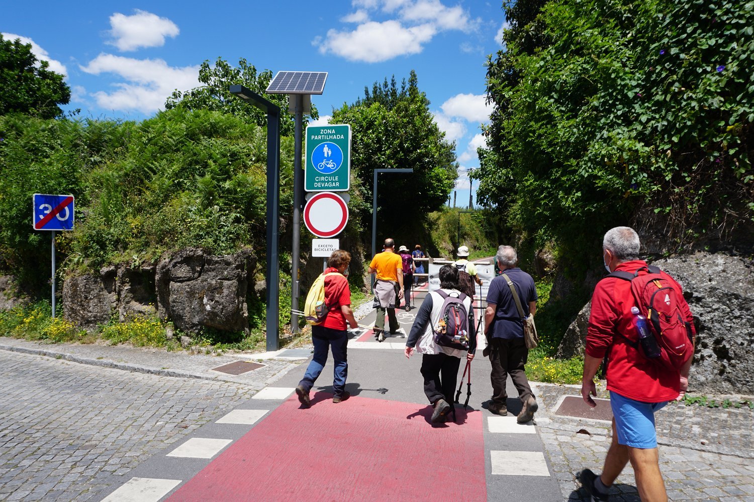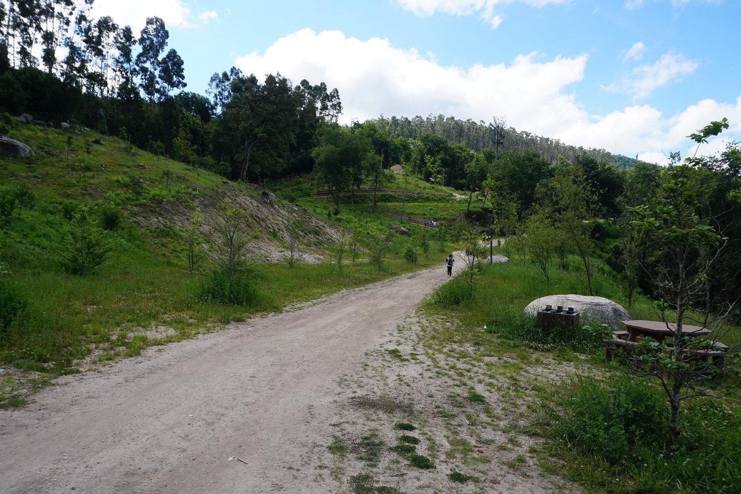 Depois foi a descida, bem mais rápida, mas mais castigadora para os joelhos, em que utilizamos o percurso do PR3 – Rota da Penha e mais abaixo um troço da ciclovia Fafe - Guimarães, tendo alcançado o fim do percurso cerca das 14:00, hora mais que propícia para a prometida “surpresa”. O final efetivo não foi no Parque da Cidade mas sim num loteamento próximo, onde nos aguardava o companheiro Armando, mas quem quiser repetir este percurso só tem que continuar a descida antes da última viragem à direita, pois o local de início é bem visível.