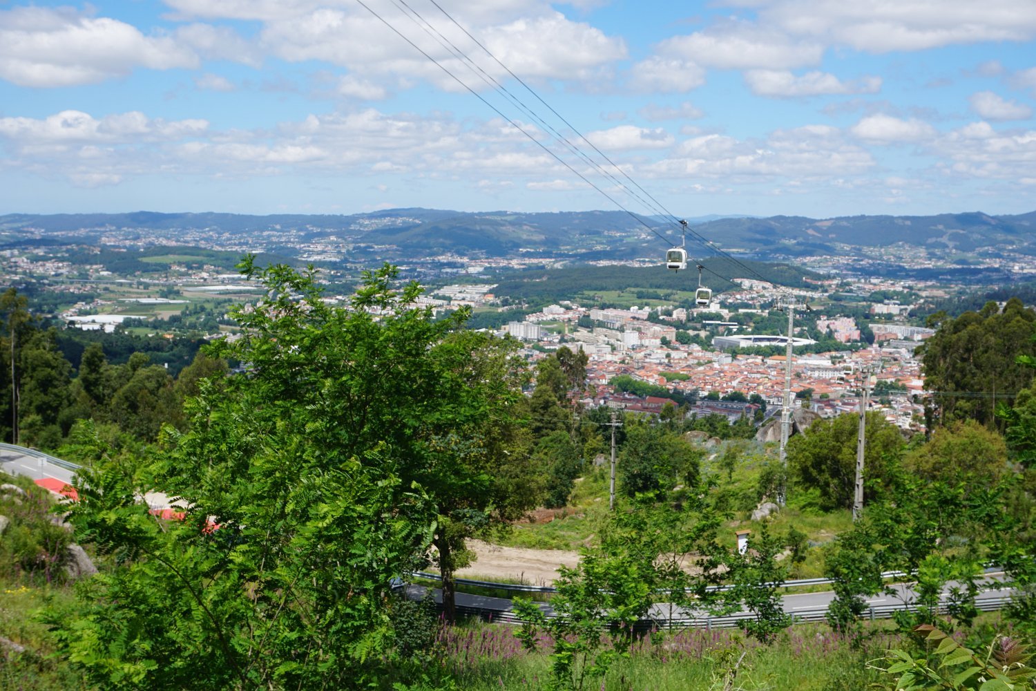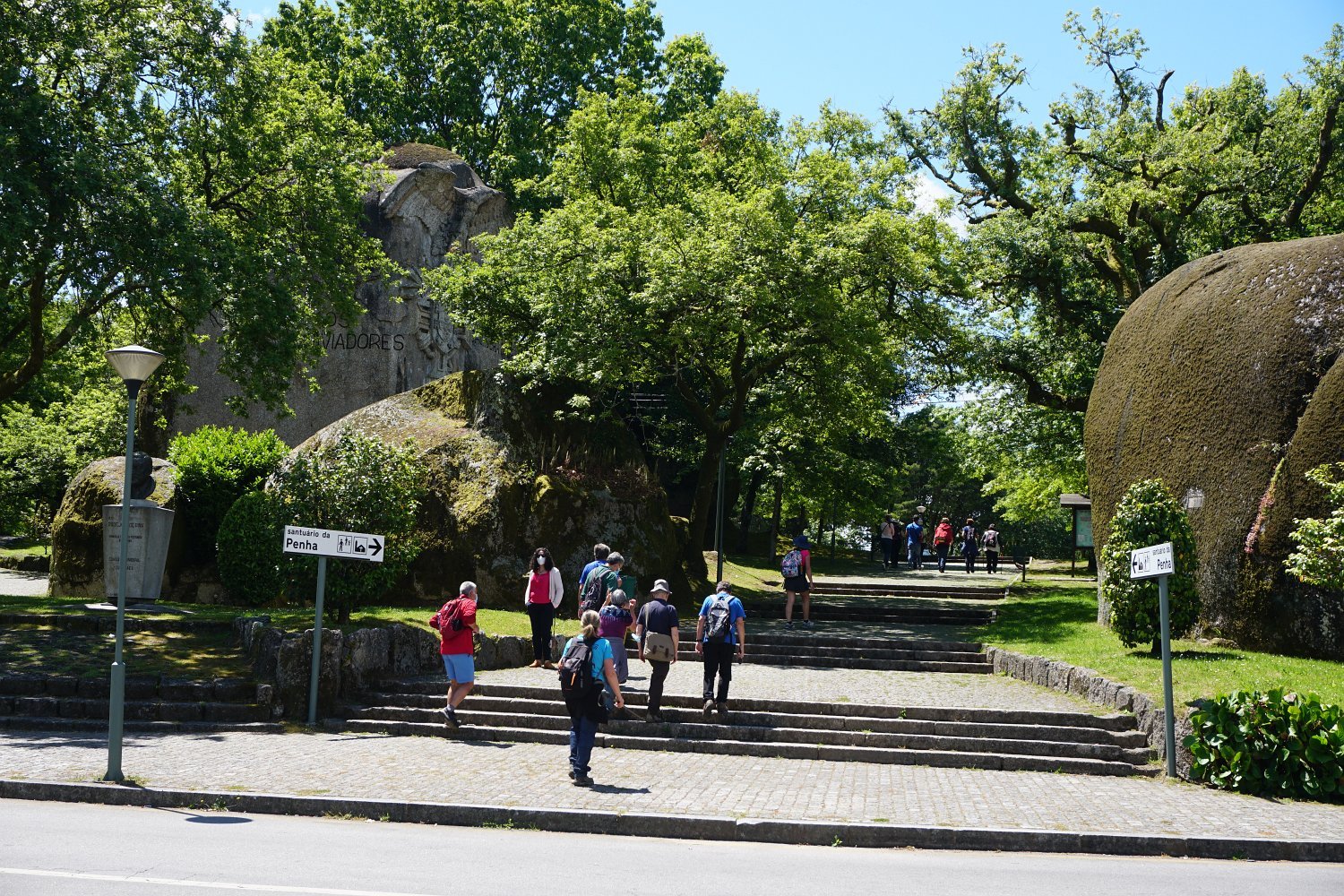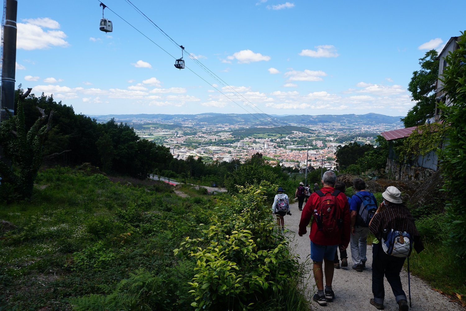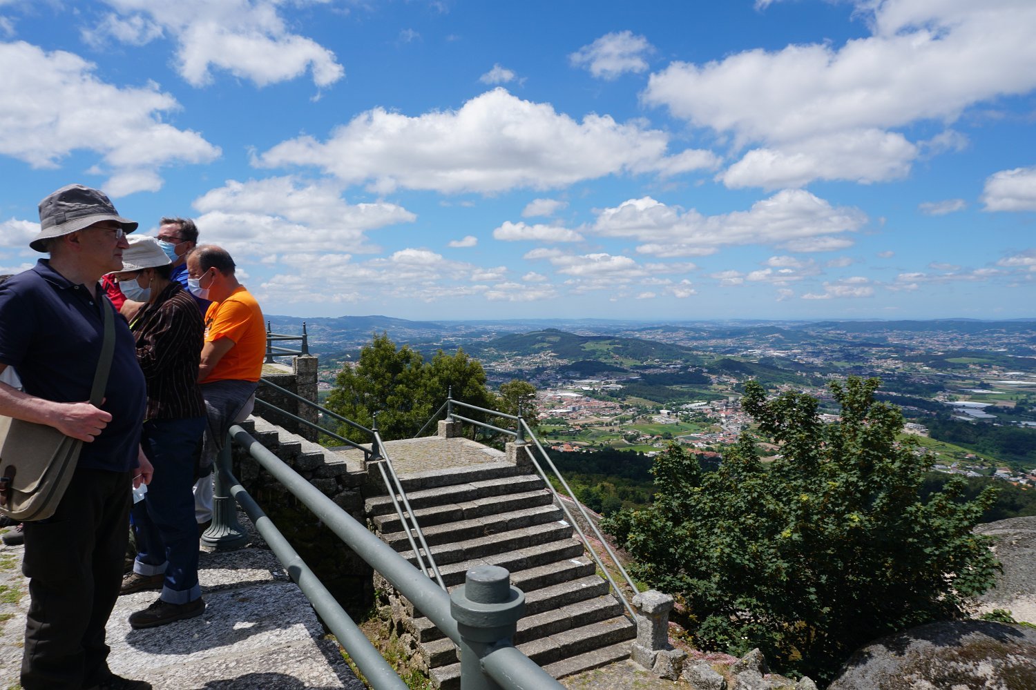 Chegados ao largo do Santuário de Nossa Senhora do Carmo da Penha, também chamado de Santuário de Nossa Senhora da Penha, reunimo-nos com os quatro companheiros que preferiram fazer a subida pelo teleférico e fomos ver Guimarães “por um canudo”, já que na parte traseira do templo há um miradouro com vista deslumbrante para a cidade.