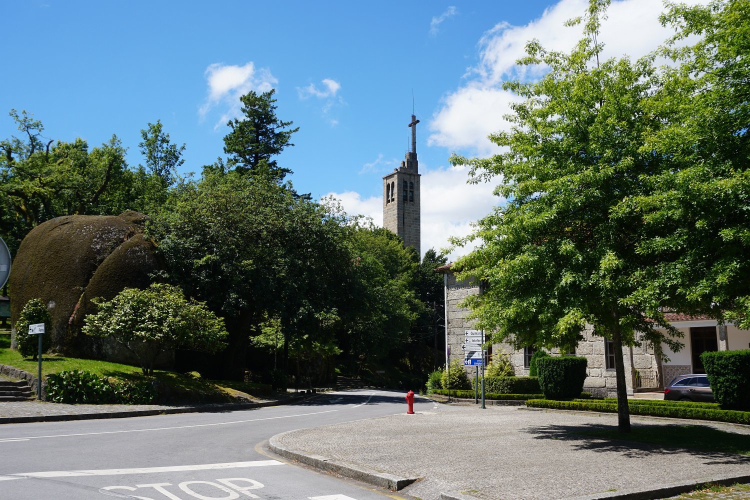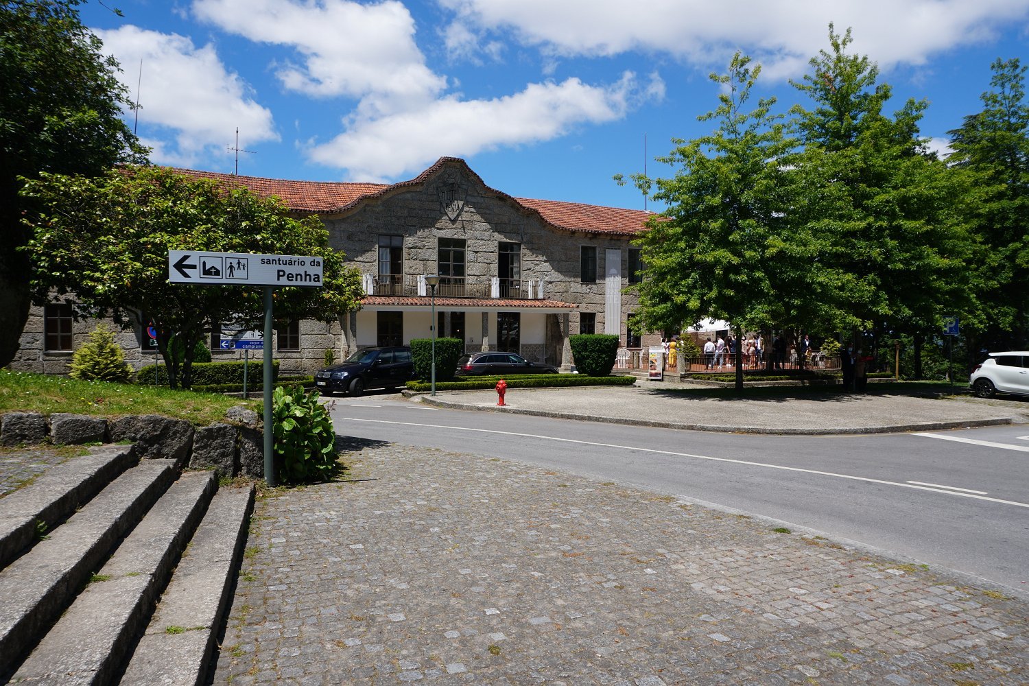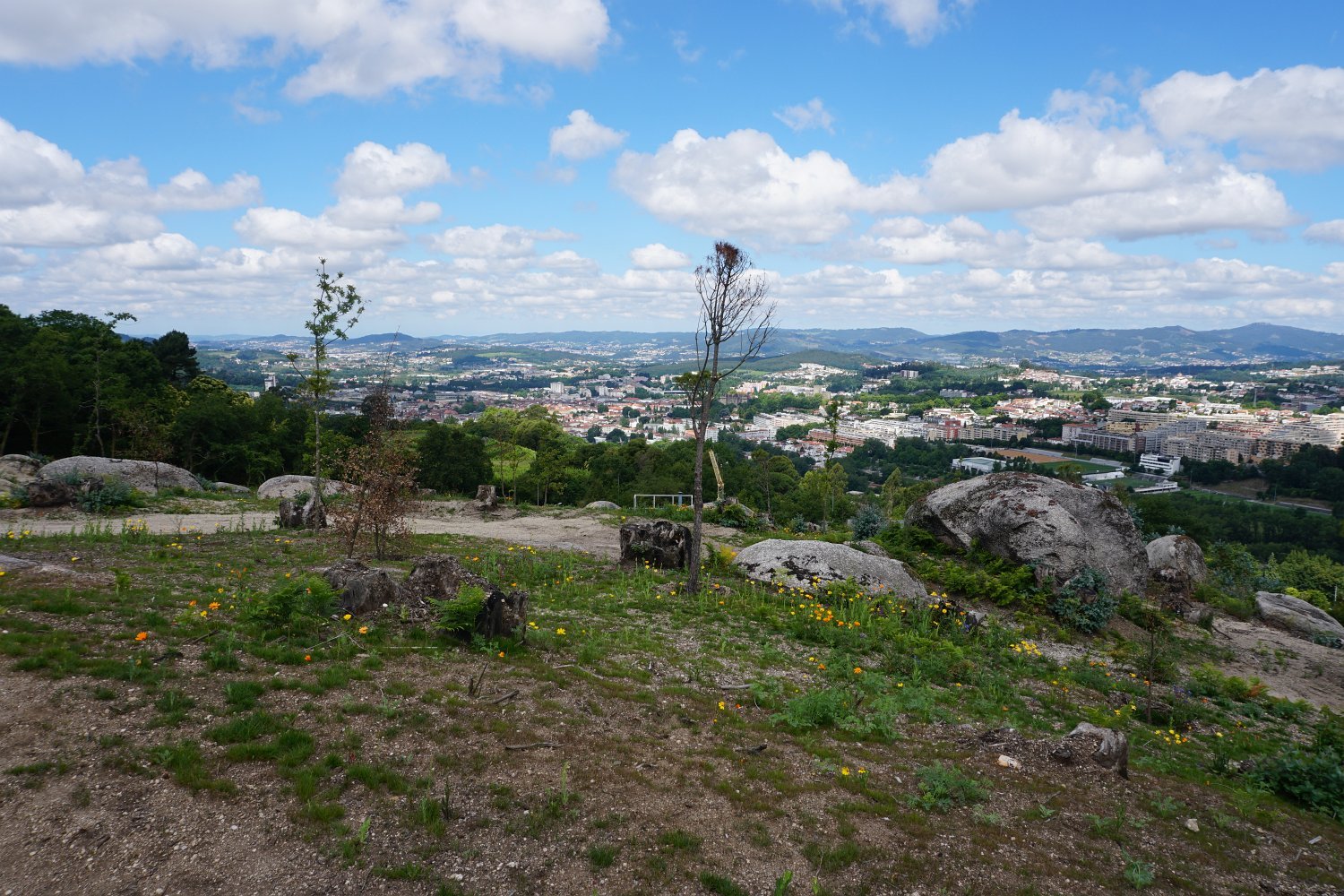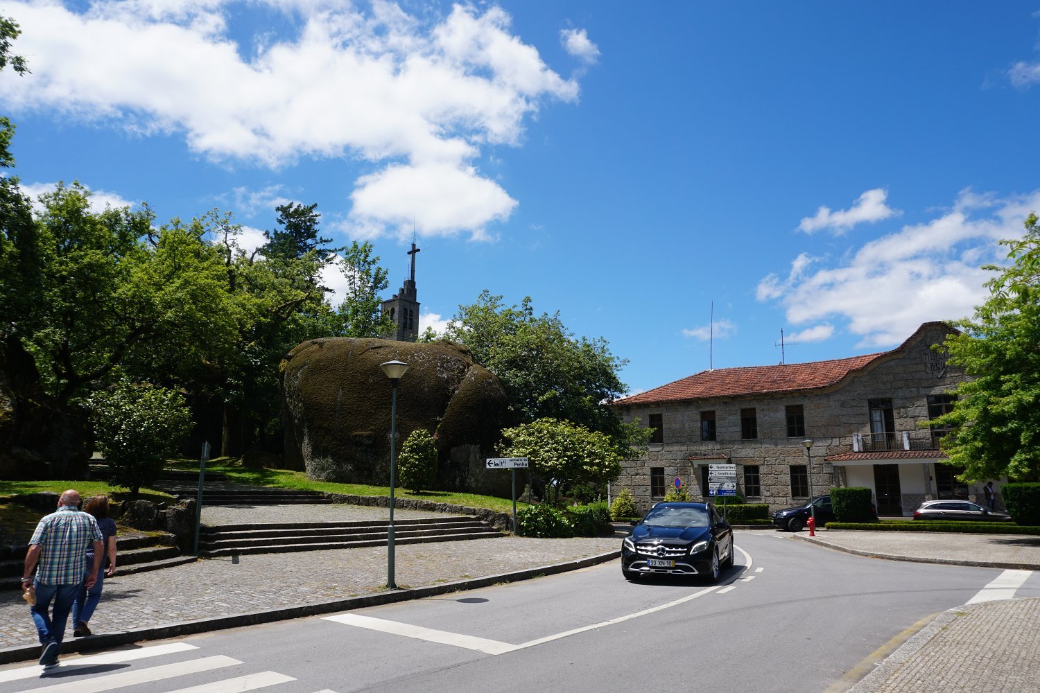 Chegados ao largo do Santuário de Nossa Senhora do Carmo da Penha, também chamado de Santuário de Nossa Senhora da Penha, reunimo-nos com os quatro companheiros que preferiram fazer a subida pelo teleférico e fomos ver Guimarães “por um canudo”, já que na parte traseira do templo há um miradouro com vista deslumbrante para a cidade.