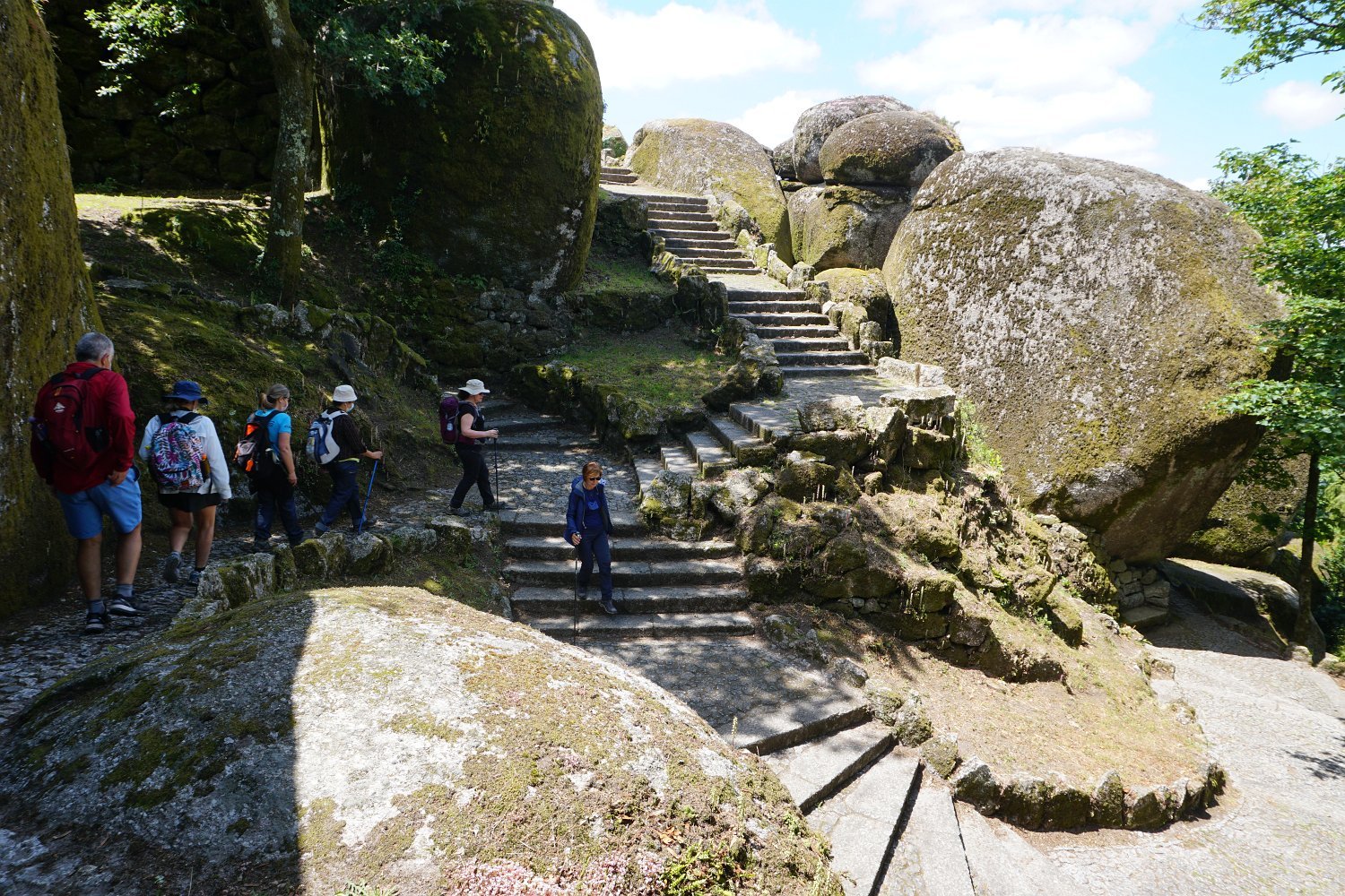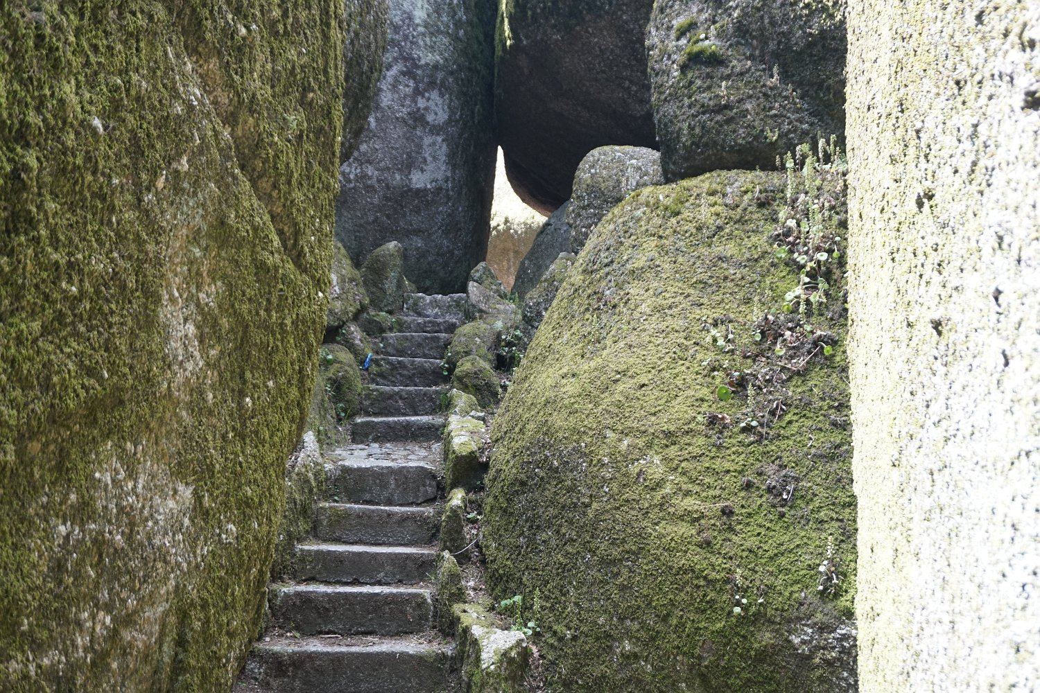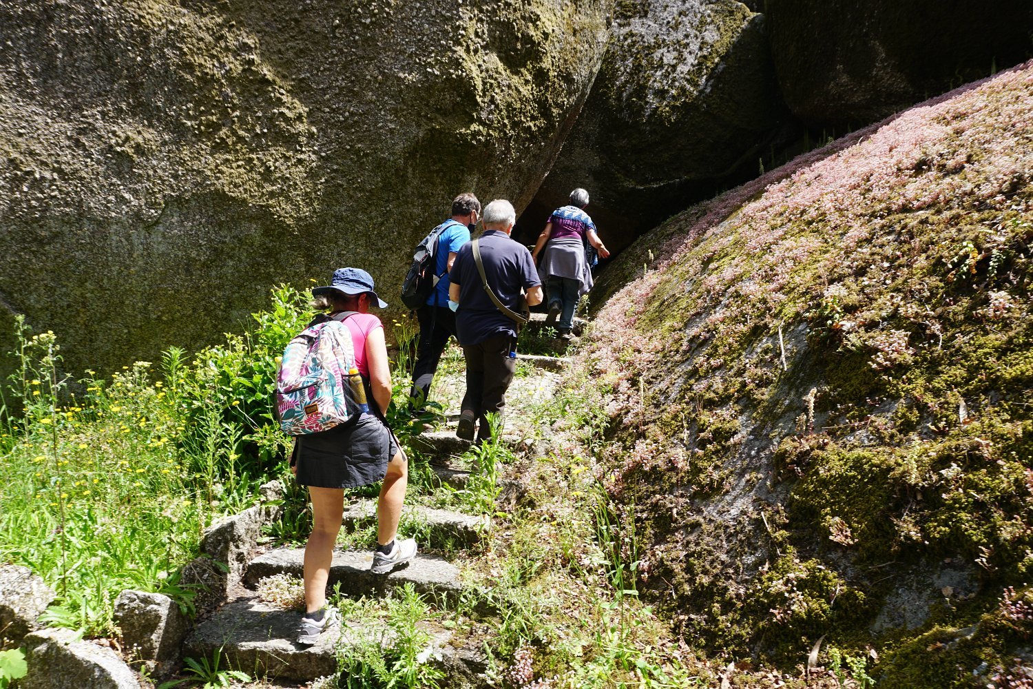 À medida que fomos subindo, a envolvente foi-se alterando e ultrapassamos as dificuldades do íngreme escadório cravado nos ciclópicos maciços graníticos, proporcionando aqui e ali curiosas formações de pequenas grutas, estreitas passagens e autênticos túneis entre os matacões de granito.