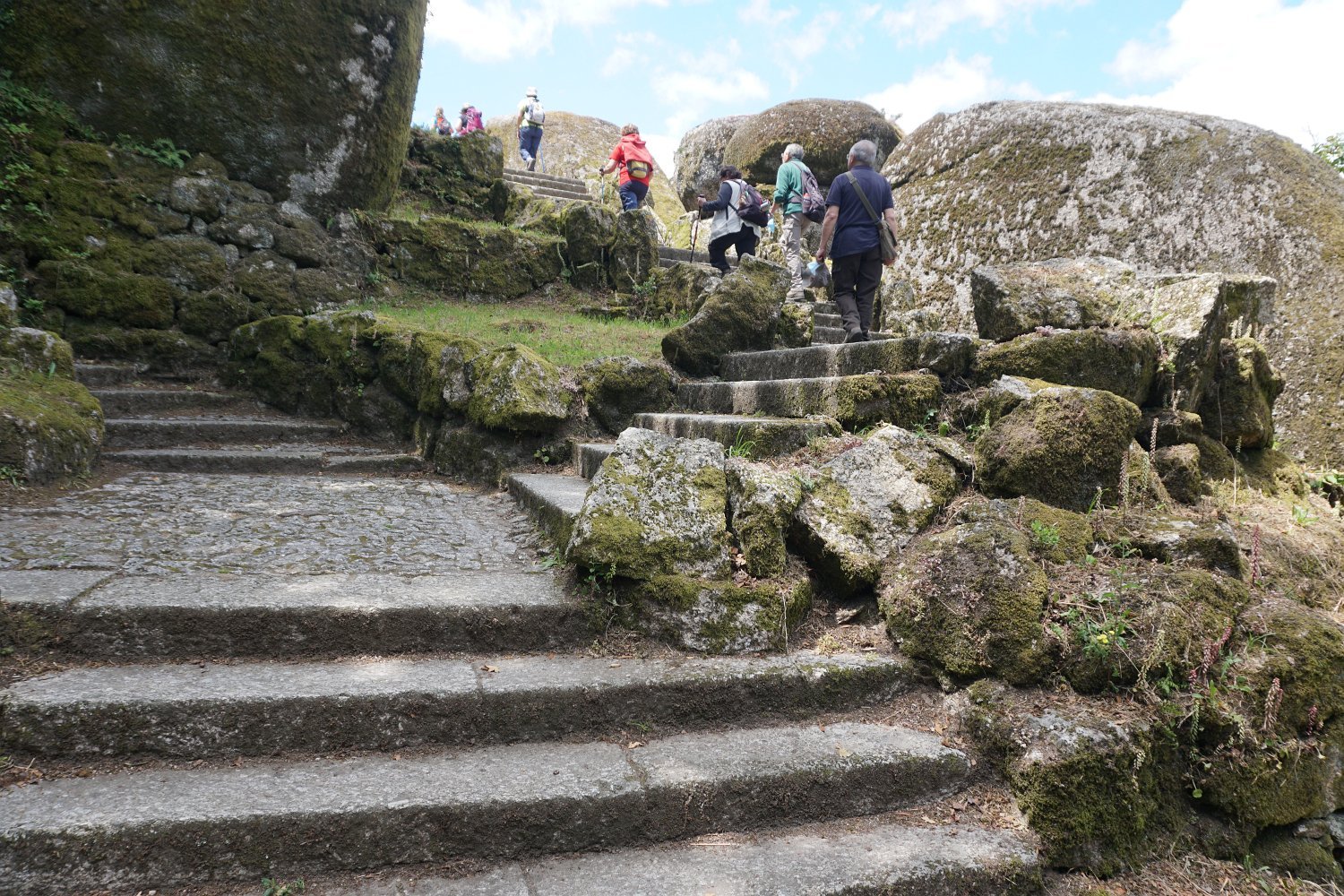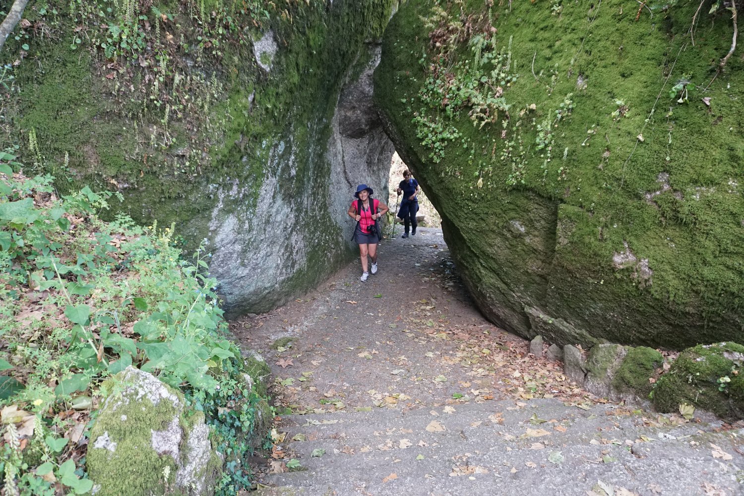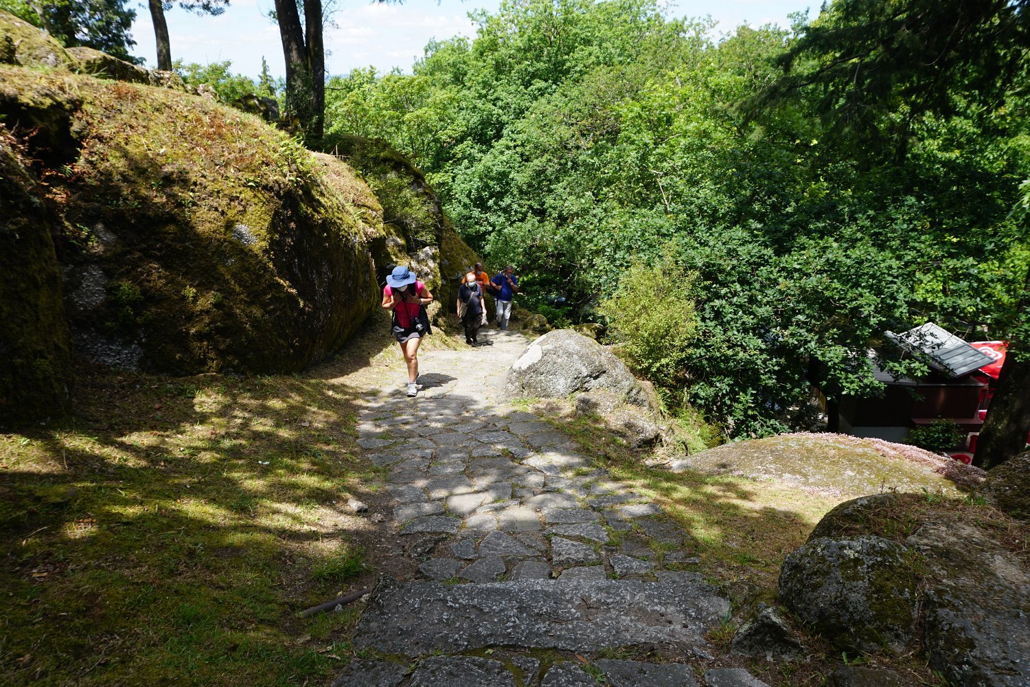 À medida que fomos subindo, a envolvente foi-se alterando e ultrapassamos as dificuldades do íngreme escadório cravado nos ciclópicos maciços graníticos, proporcionando aqui e ali curiosas formações de pequenas grutas, estreitas passagens e autênticos túneis entre os matacões de granito.