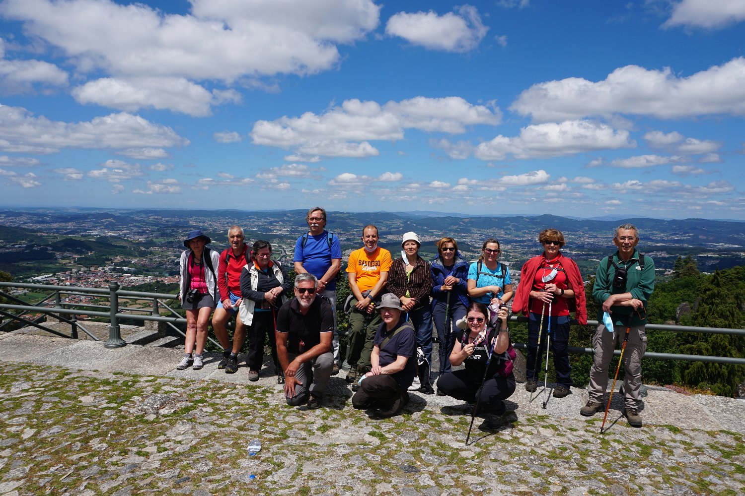 A última etapa da subida foi trepar até ao ponto mais alto, o Miradouro da Penha, encimado pela enorme estátua do papa Pio IX, local de vista privilegiada para todo o Vale do Ave, onde tiramos mais uma foto de grupo.