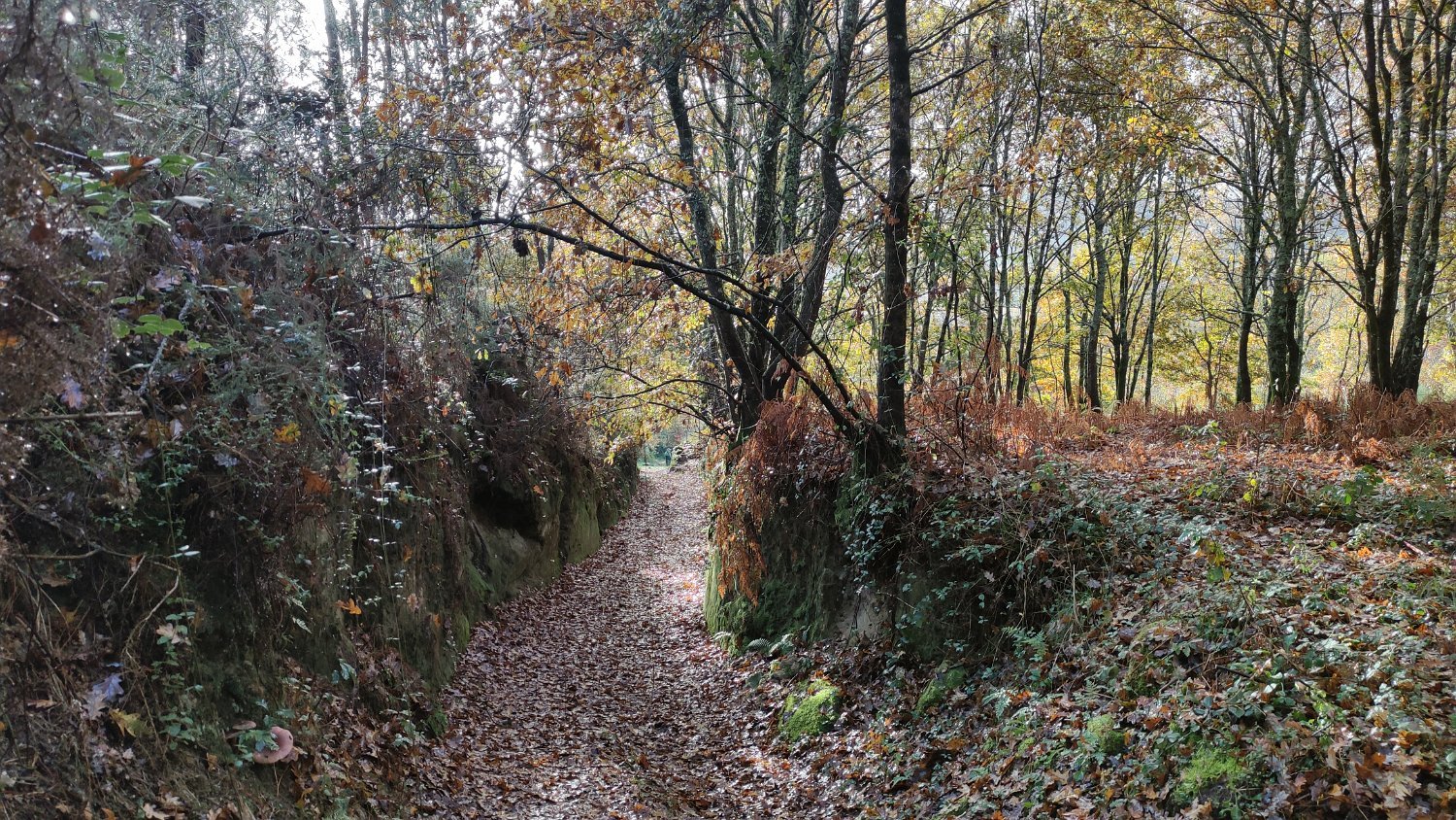 Belíssimas as cores dominantes do Outono que tingiam os densos bosques e o espesso tapete de folhas caídas, que quase escondia os semi-abandonados caminhos rurais.