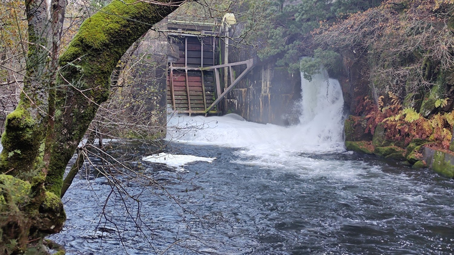 Passamos então a descer a margem direita do Coura, descendo a ingreme encosta na direção da parede da barragem, que foi entretanto reconstruída e continua a reter as águas do rio Coura, já não para a produção elétrica da antiga central de Covas, mas para a regularização do caudal do rio e para alimentação da Central Hidroelétrica de France, através de uma galeria em carga, com um comprimento de mais de 4 Km de extensão.