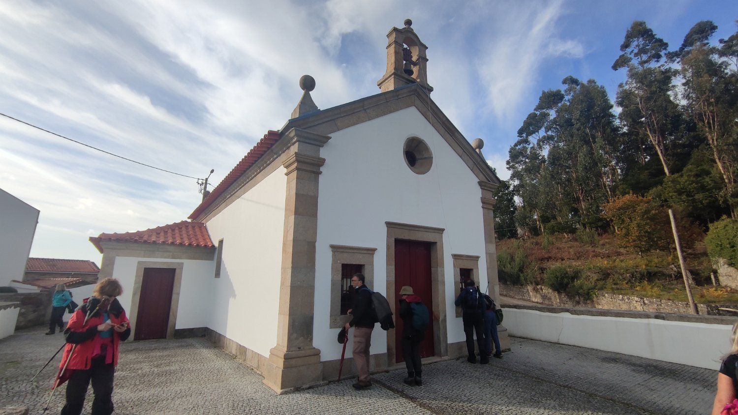 Começamos junto da Igreja do Divino Salvador de Covas, onde tiramos uma foto de grupo diante da Casa do Carboal ou Casa de Covas, propriedade vinícola do Séc. XVII, tendo seguido para o parque de campismo próximo e mais à frente embrenhando-nos em caminhos rurais num extenso bosque de carvalhos na direção do Açude de Pagade.