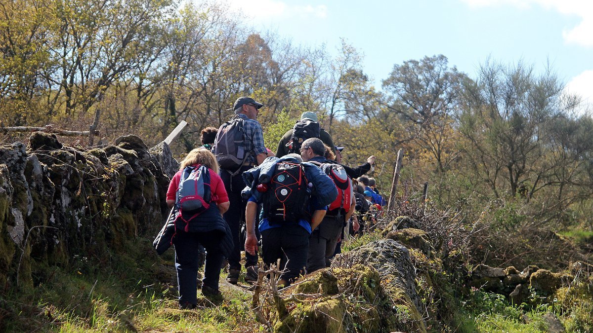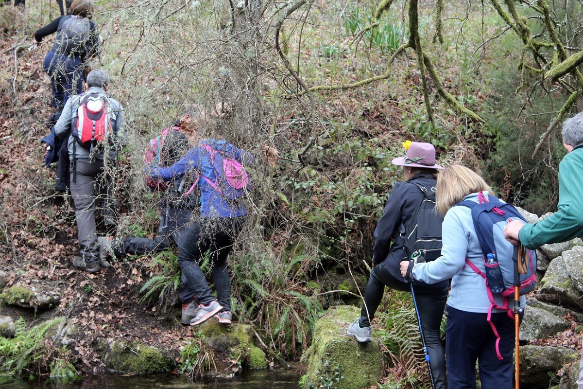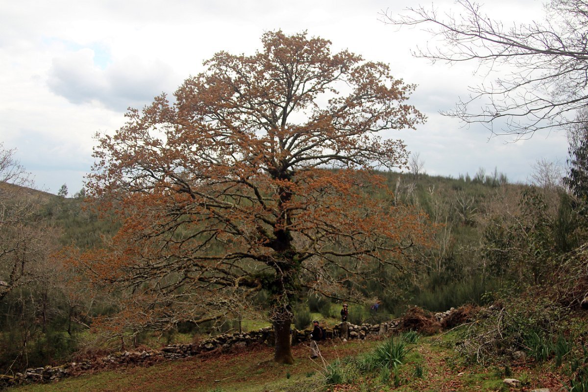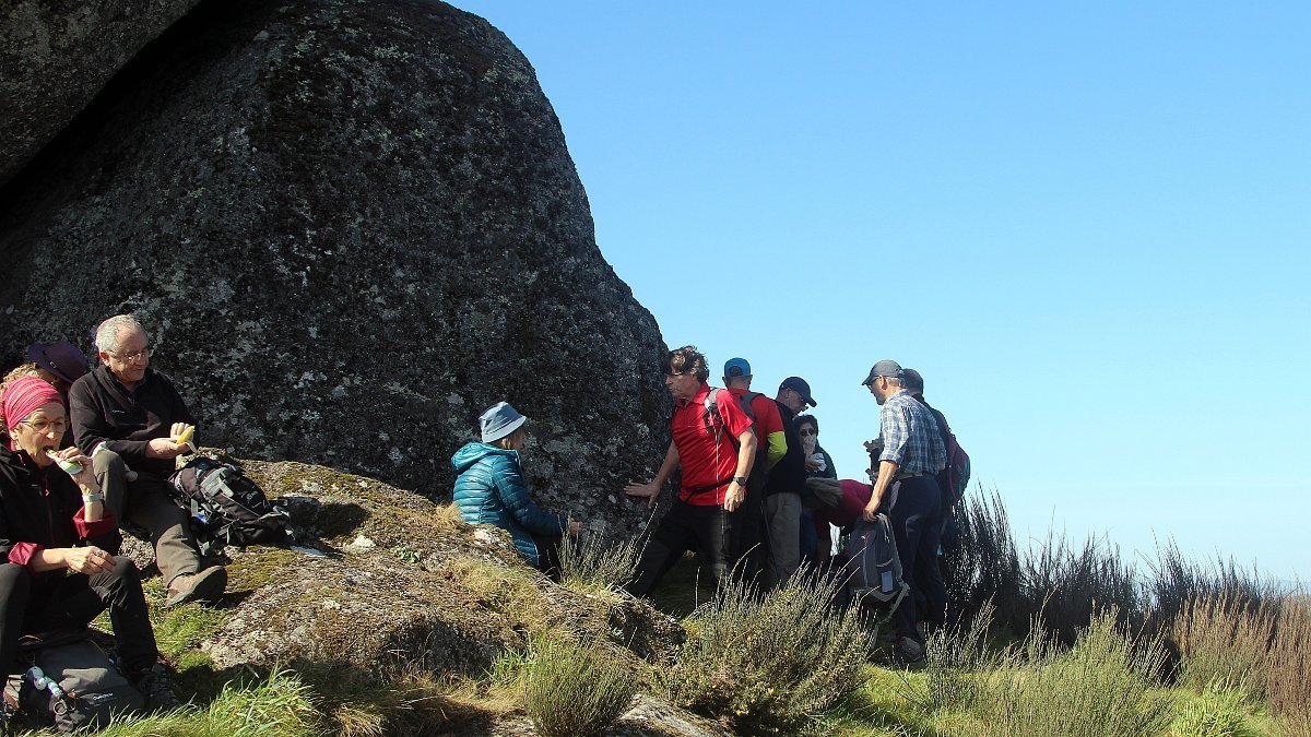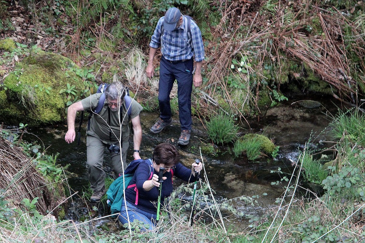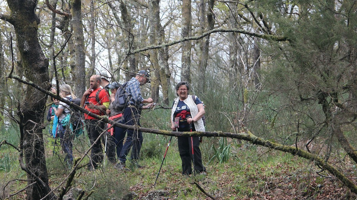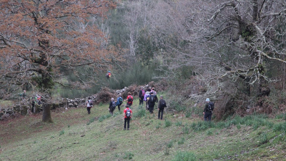 Realizado o reabastecimento, eram horas de partir e iniciamos o regresso, cruzando o casario do lugar de Eido de Baixo subindo através da encosta do Monte de S. Miguel O Anjo, passando ao lado do lugar de Porto Bom em direção do Lugar de Teixugueiras que dá o nome a este percurso. Esta parte do trilho é muito bonita, sempre através de um frondoso carvalhal onde houve lugar até para pequena aventura na procura do caminho certo.