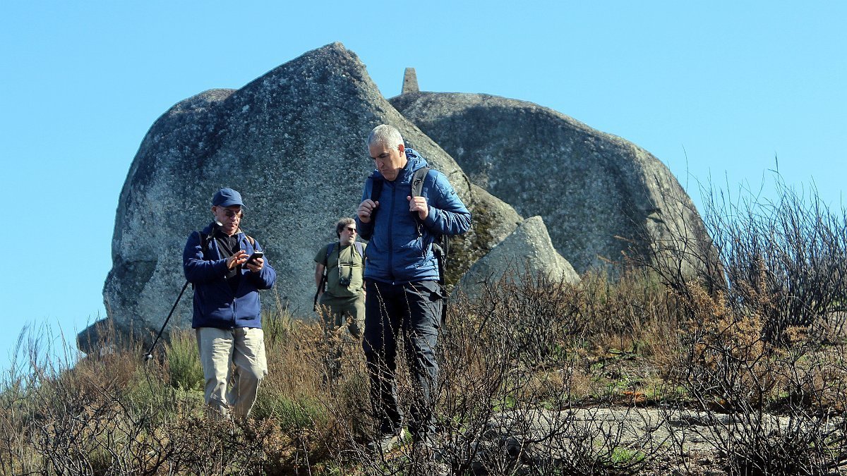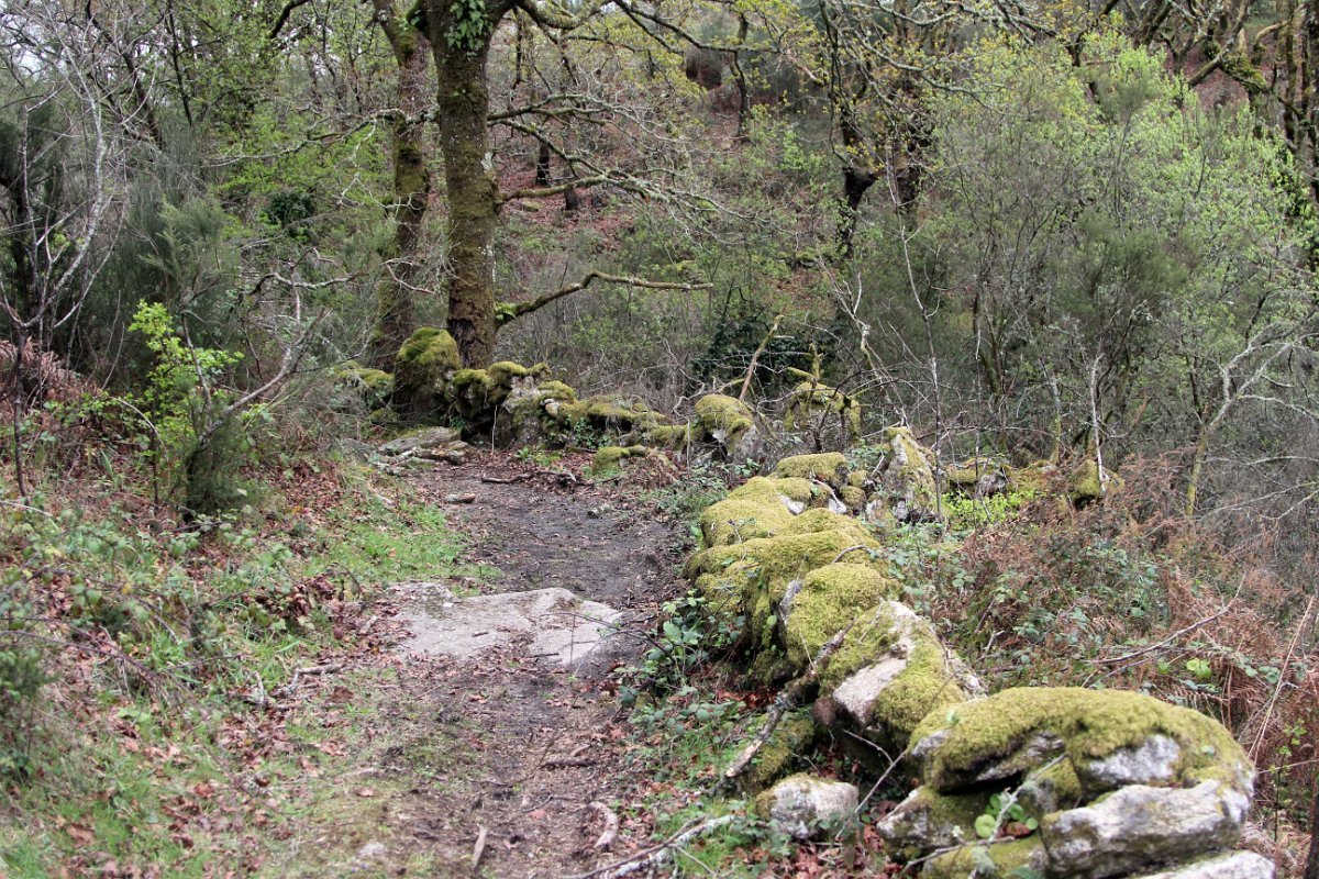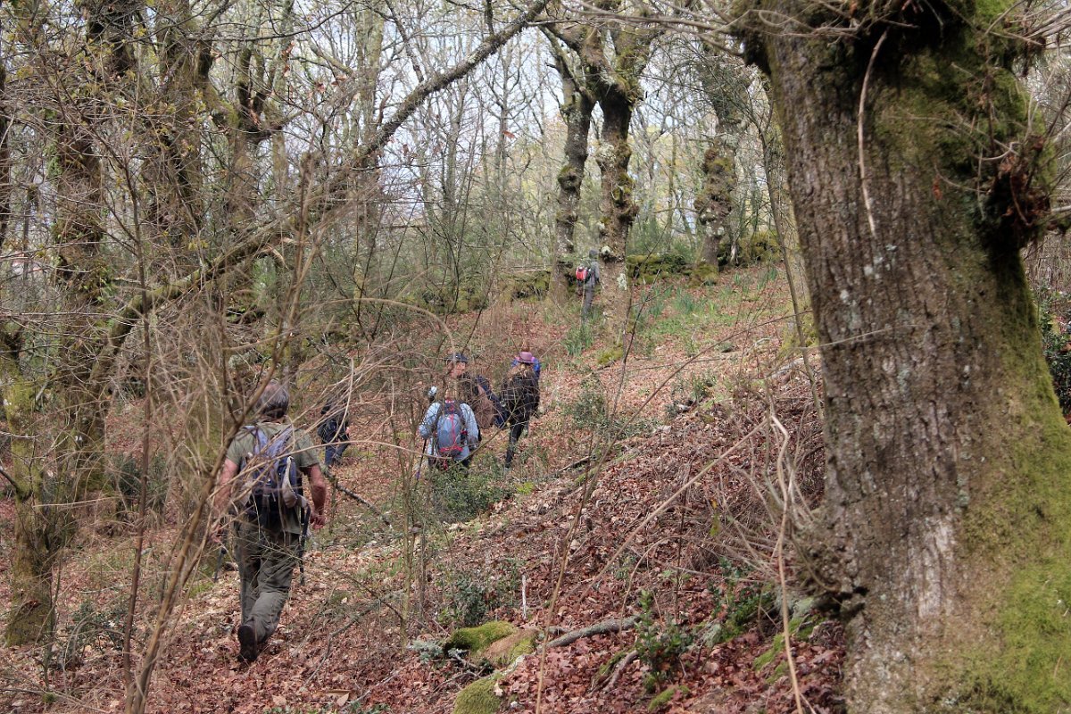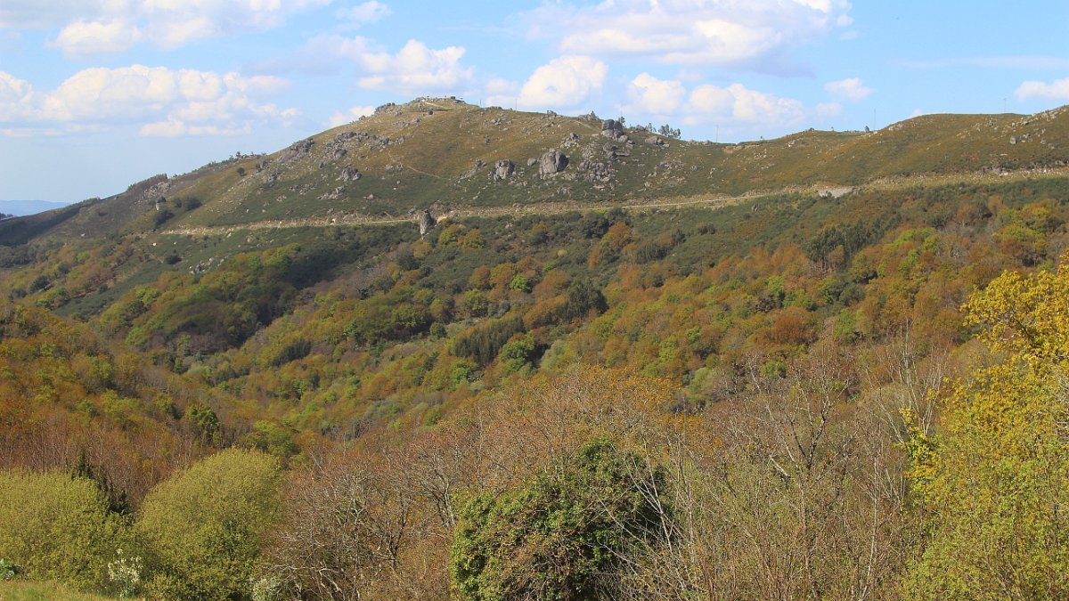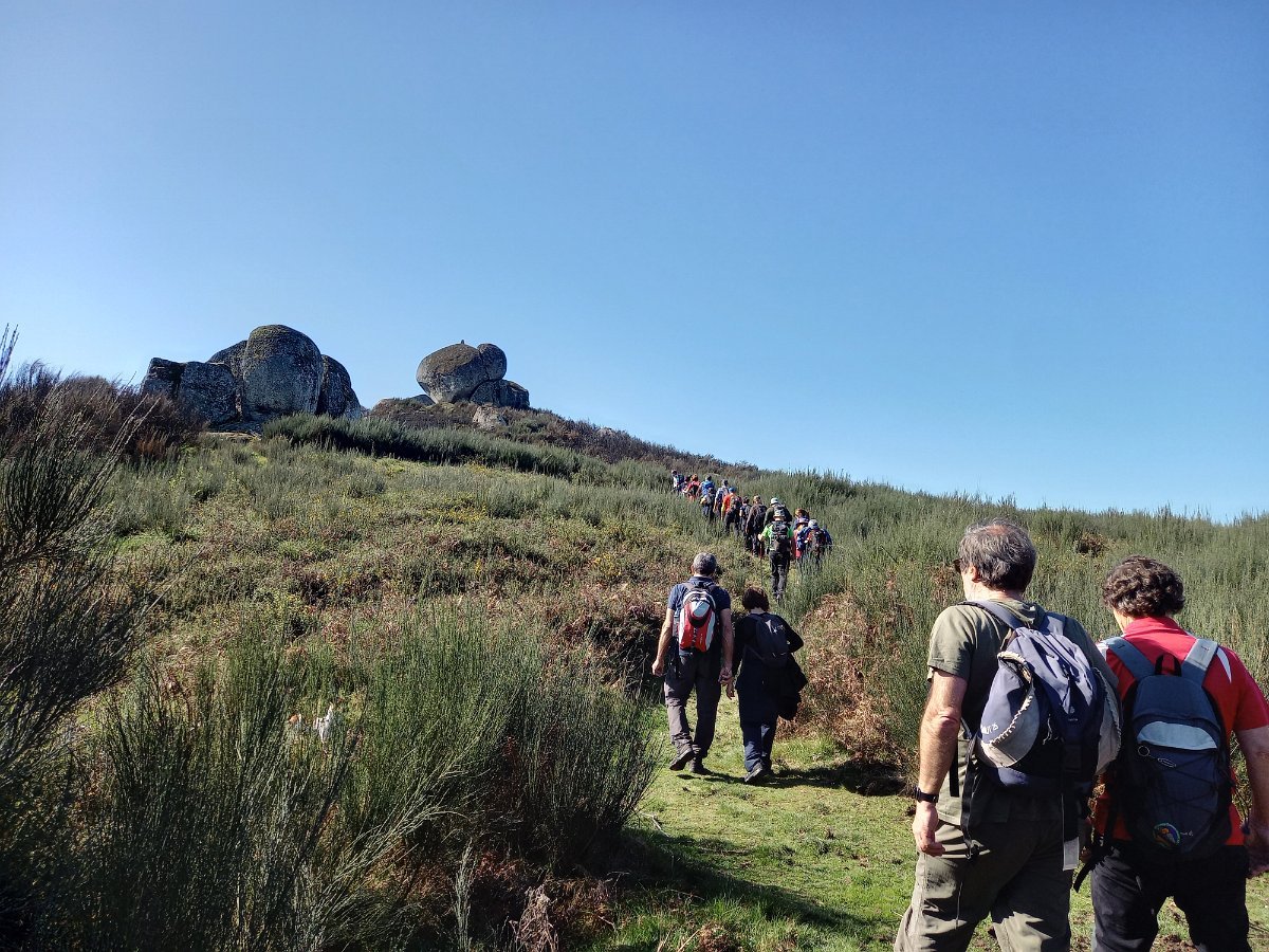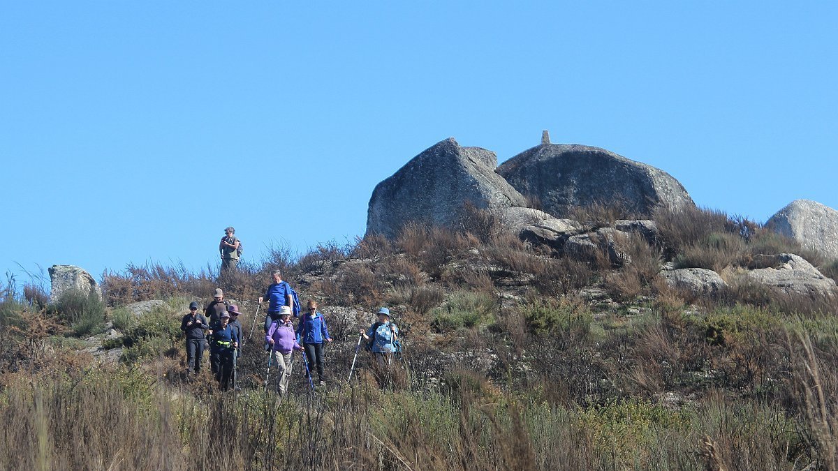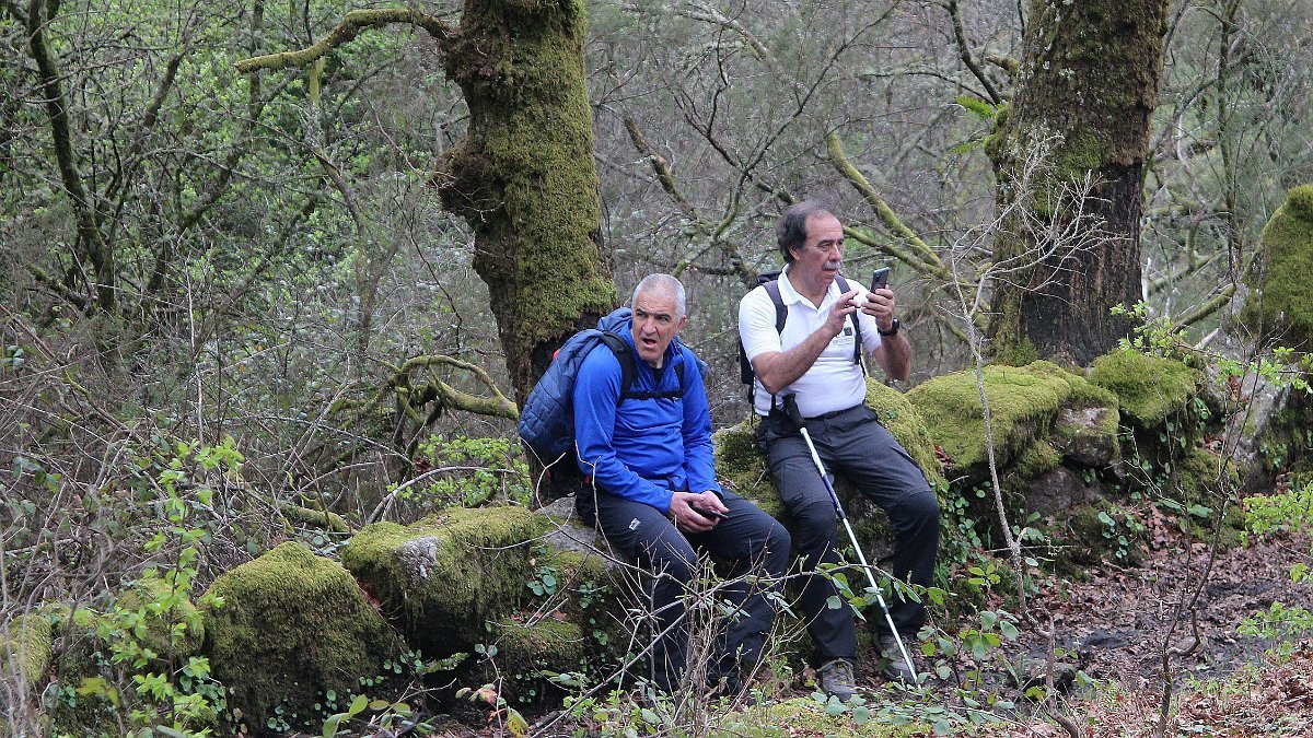 Realizado o reabastecimento, eram horas de partir e iniciamos o regresso, cruzando o casario do lugar de Eido de Baixo subindo através da encosta do Monte de S. Miguel O Anjo, passando ao lado do lugar de Porto Bom em direção do Lugar de Teixugueiras que dá o nome a este percurso. Esta parte do trilho é muito bonita, sempre através de um frondoso carvalhal onde houve lugar até para pequena aventura na procura do caminho certo.