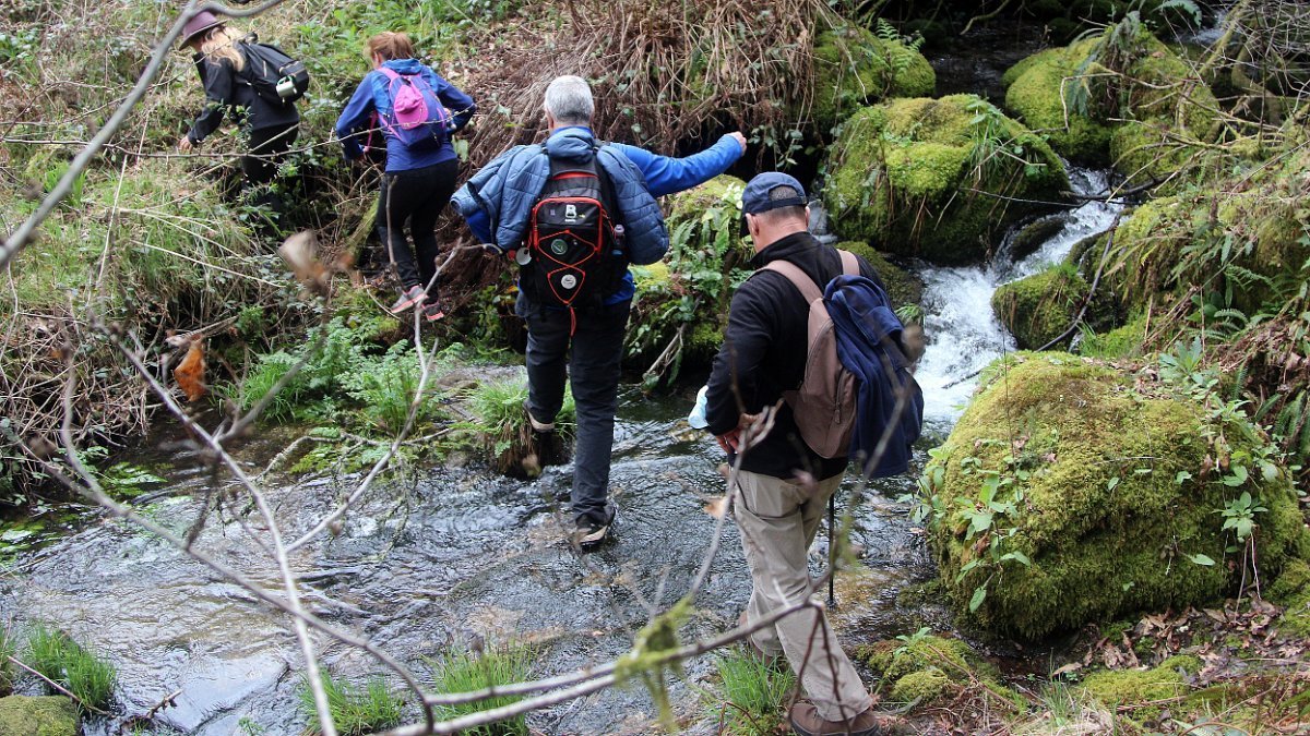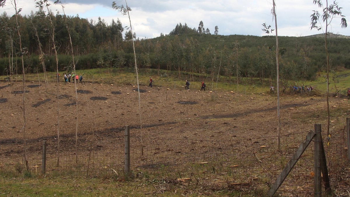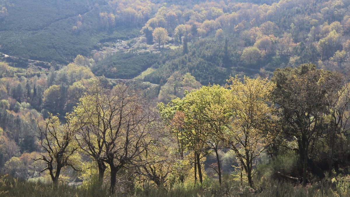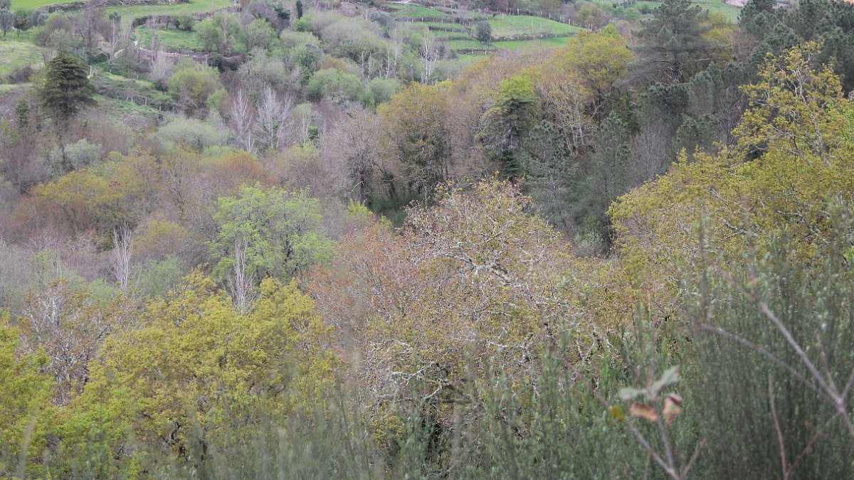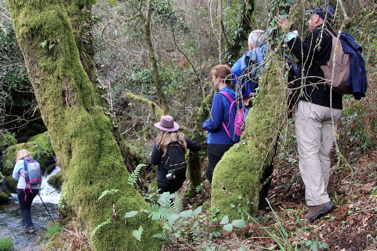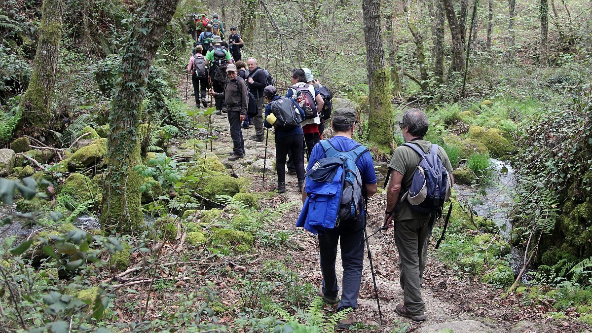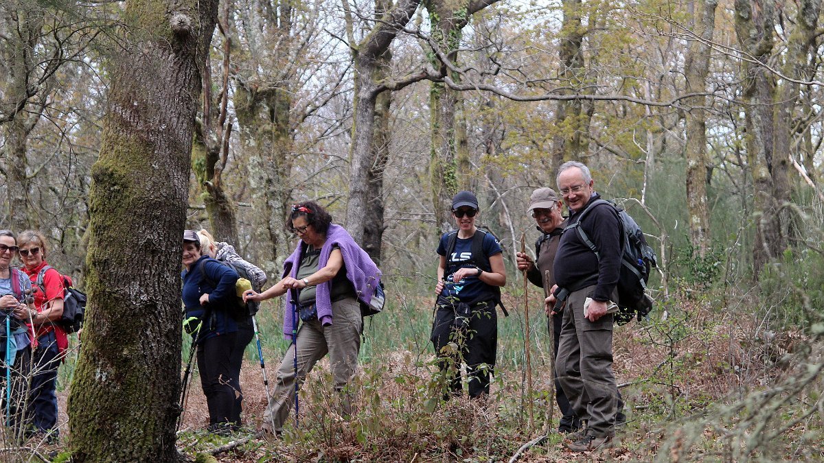Realizado o reabastecimento, eram horas de partir e iniciamos o regresso, cruzando o casario do lugar de Eido de Baixo subindo através da encosta do Monte de S. Miguel O Anjo, passando ao lado do lugar de Porto Bom em direção do Lugar de Teixugueiras que dá o nome a este percurso. Esta parte do trilho é muito bonita, sempre através de um frondoso carvalhal onde houve lugar até para pequena aventura na procura do caminho certo.
