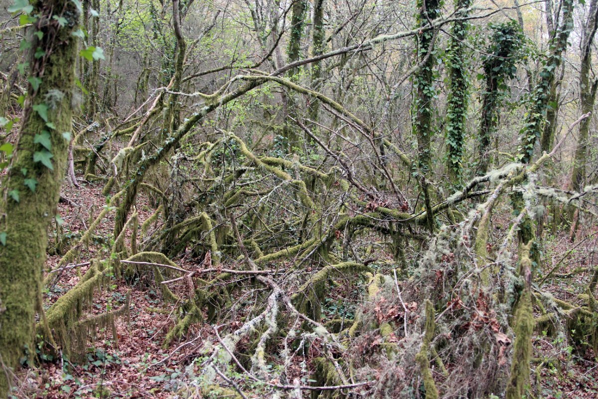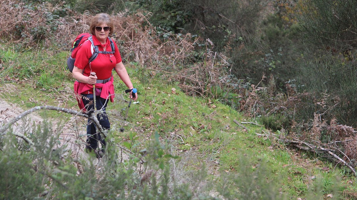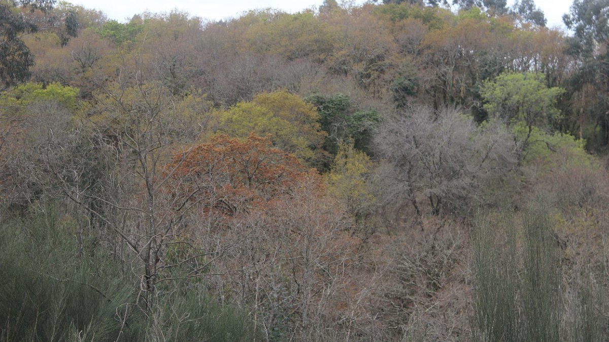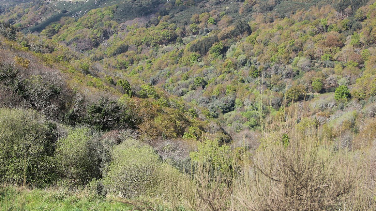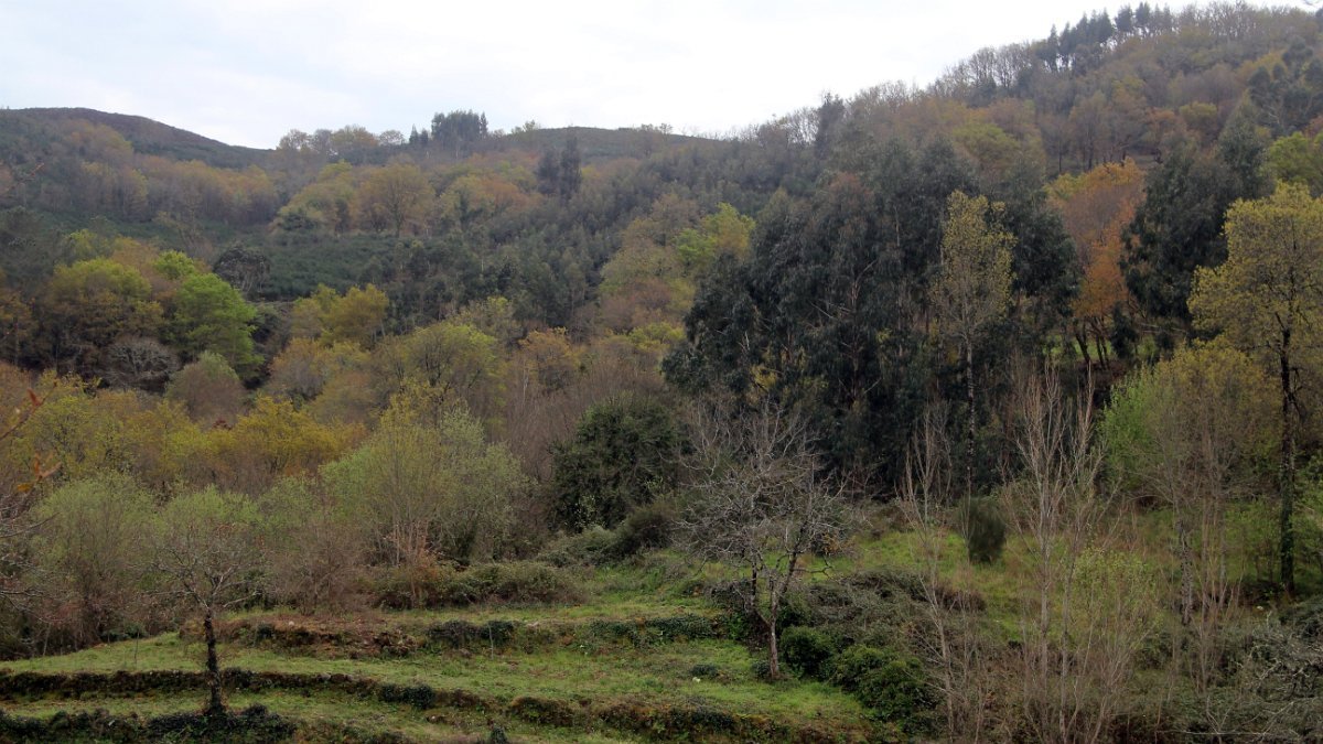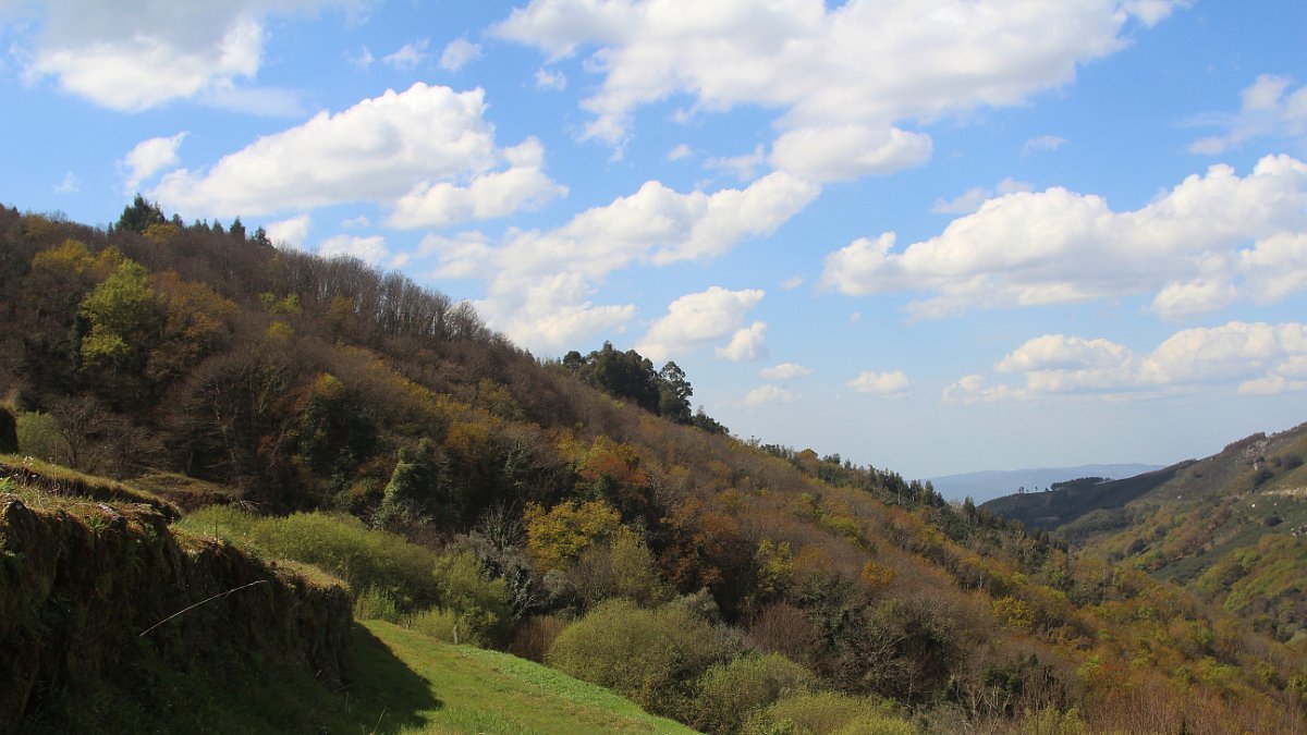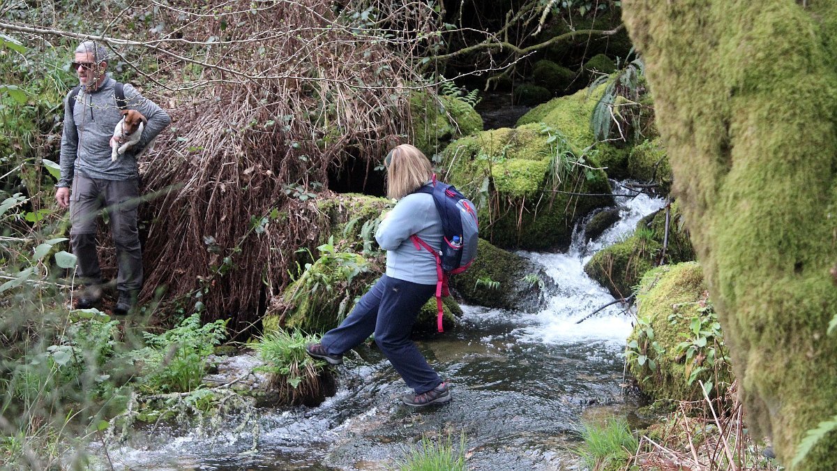 Realizado o reabastecimento, eram horas de partir e iniciamos o regresso, cruzando o casario do lugar de Eido de Baixo subindo através da encosta do Monte de S. Miguel O Anjo, passando ao lado do lugar de Porto Bom em direção do Lugar de Teixugueiras que dá o nome a este percurso. Esta parte do trilho é muito bonita, sempre através de um frondoso carvalhal onde houve lugar até para pequena aventura na procura do caminho certo.