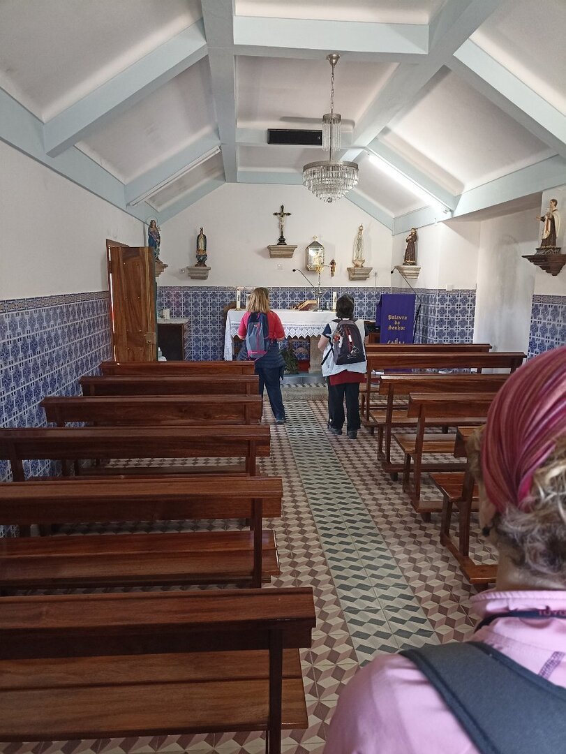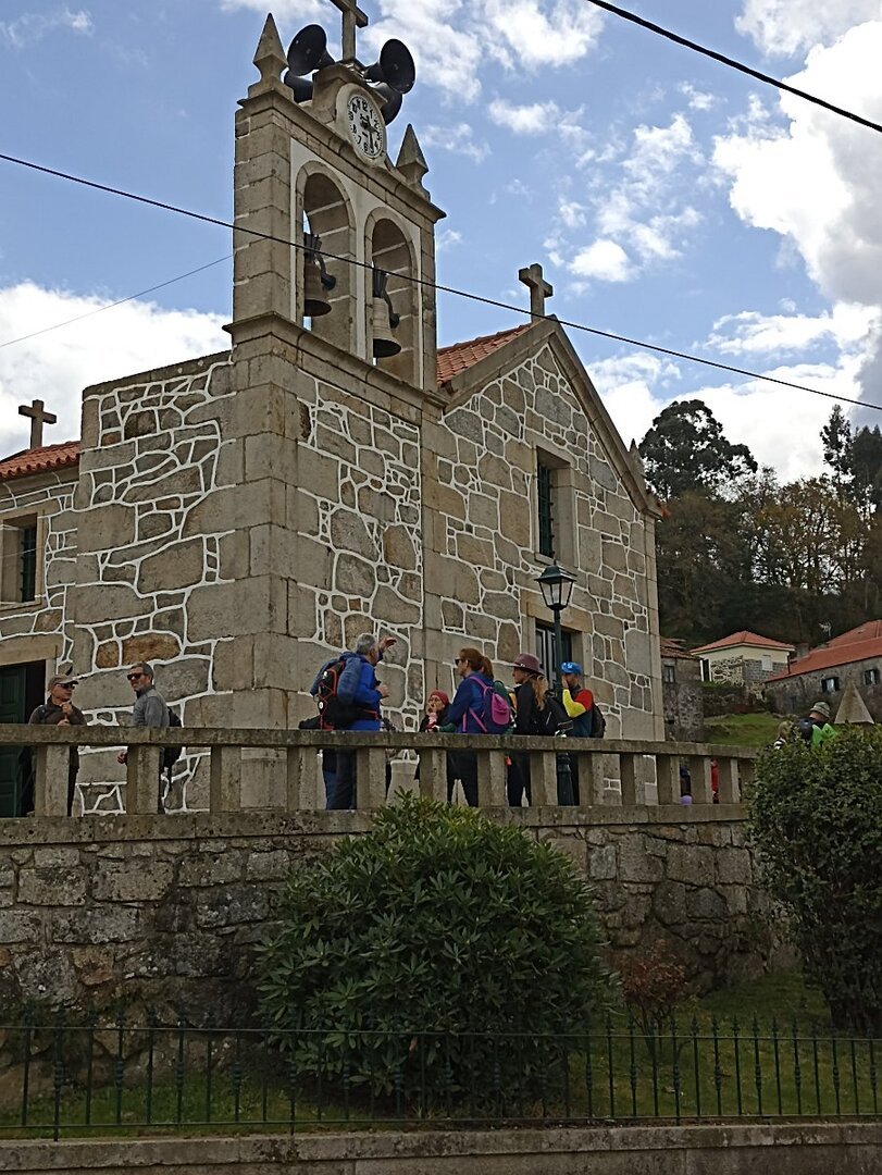 Chegados, e feito o reagrupamento com os que lá tinham ido ter, cerca 09H30 e com a participação de 32 caminheiros, iniciamos o percurso junto da igreja Paroquial de Boivães, em direção à aldeia de Armada / Ponte de Lima, bem lá mais no alto, onde teve lugar uma pequena paragem para aproveitar o café local. Aqui também visitamos a pequena capela de N. Srª da Conceição, que um morador gentilmente nos abriu e em cujo adro, belo miradouro sobre o vale do rio Trovela, se tirou a foto de grupo.