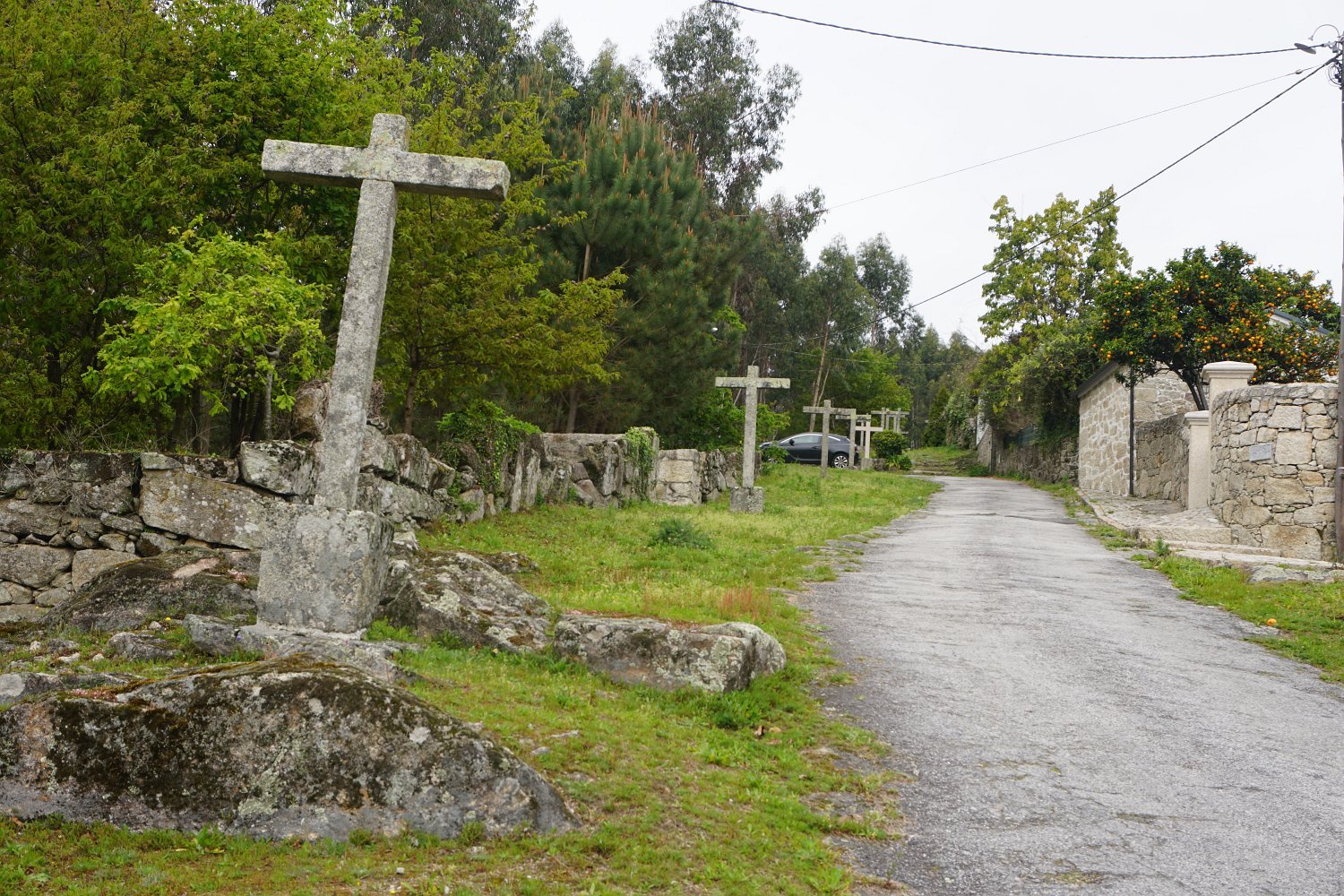 Deixamos o largo pelas 10:30 e passamos junto da Cruzeiro do Senhor da Saúde, oferta de locais em pagamento de promessa de que as tropas napoleónicas de 1909 não espalhassem terror na população local. Passamos defronte da Capela de Nossa Senhora das Neves e da Mesa dos 3 Abades, local de confluência das freguesias de Vila de Punhe, Mujães e Barroselas/Carvoeiro, todas do concelho de Viana do Castelo.