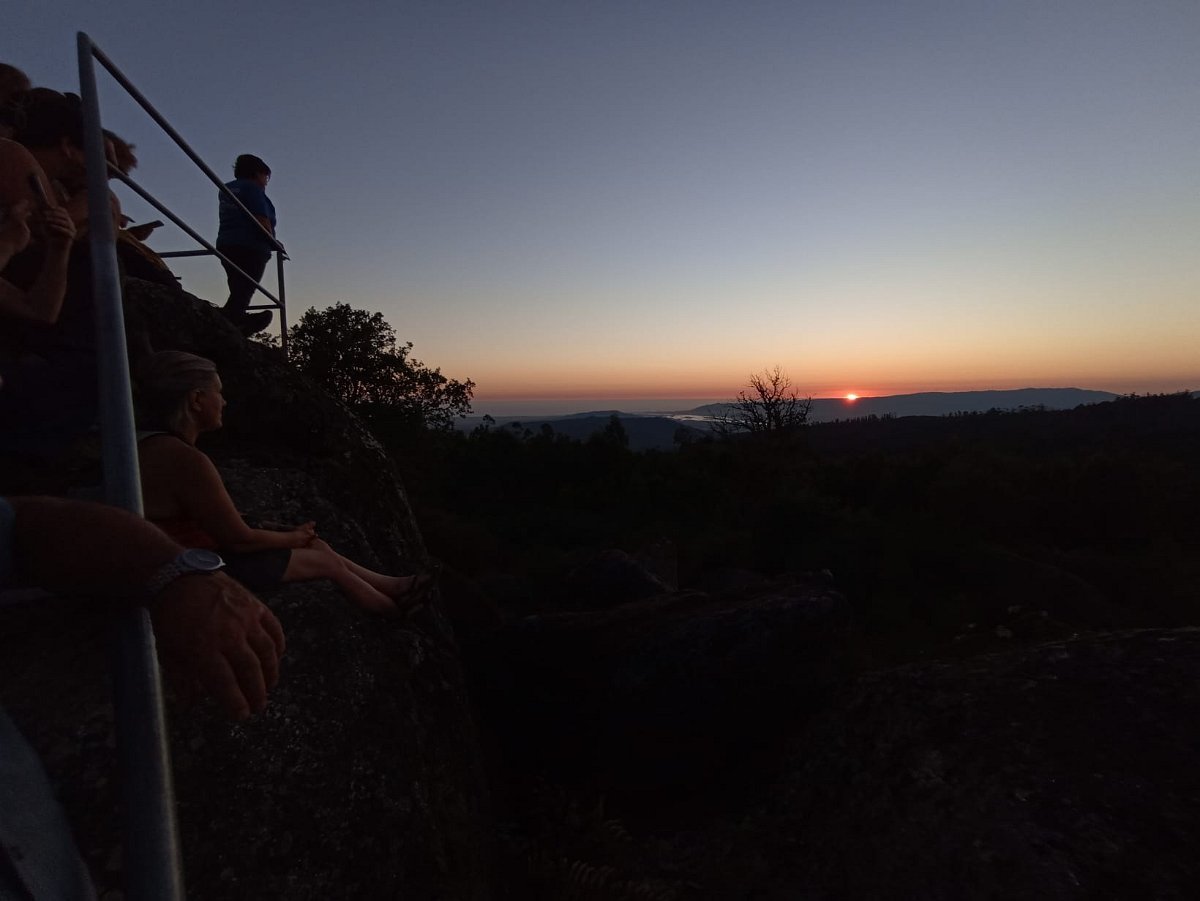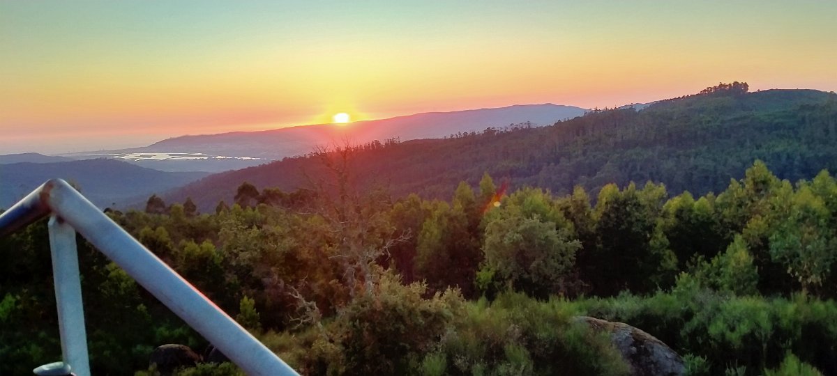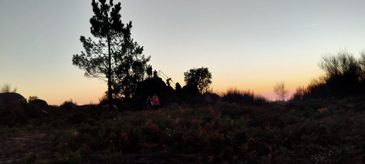 Já para o final da tarde, após um lanche/convívio e já com a companhia do companheiro Abreu e sua esposa, caminhamos em direção do cimo da serra, mais propriamente até ao Miradouro do Vale do Lima, local escolhido para esperar e admirar o esperado Pôr do Sol. O Astro Rei brindou-nos com um espetáculo digno de registo desaparecendo aos poucos no oceano através do recortado do templo de Santa Luzia e a foz do rio Lima.
