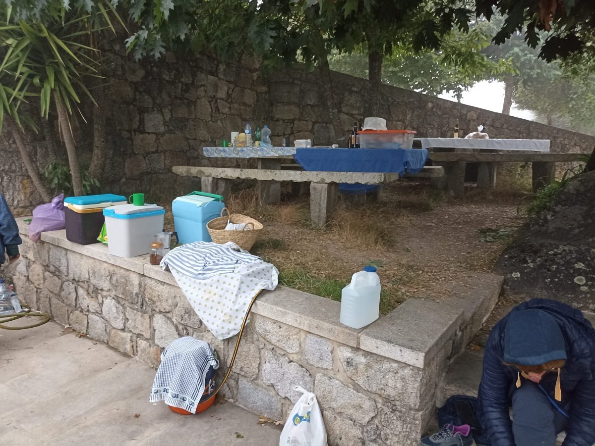 Após contacto com o núcleo de Limianos, rumamos até Portela de Susã, passando pelo Parque de Lazer de Torrente e daí ao local de destino junto da capela de Stª. Justa instalada no alto da serra da Padela, no lugar de Vacaria, pertencente á freguesia de Carvoeiro. No local lá nos esperavam o grupo de sapadores florestais pertencente à Comissão de Baldios de Carvoeiro e cujo Presidente Eng. Artur, gentilmente nos cedeu o local e as instalações sanitárias aí existentes.