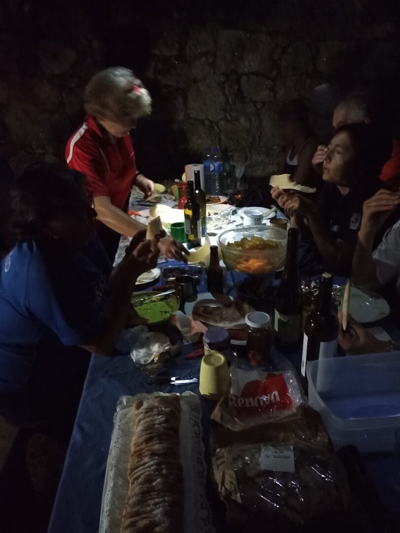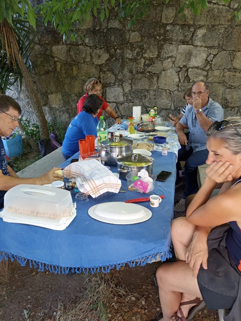 Regressados ao acampamento já noite, logo as cozinheiras/os elaboraram o jantar composto de”arroz de frango caseiro” com acompanhamentos diversos tanto de entradas como de sobremesas, e com o convívio a durar até cerca das 00H30. Entretanto o Abreu havia regressado a casa e cerca das 01H00 era chegada a hora do descanso pois havia que levantar cedo.