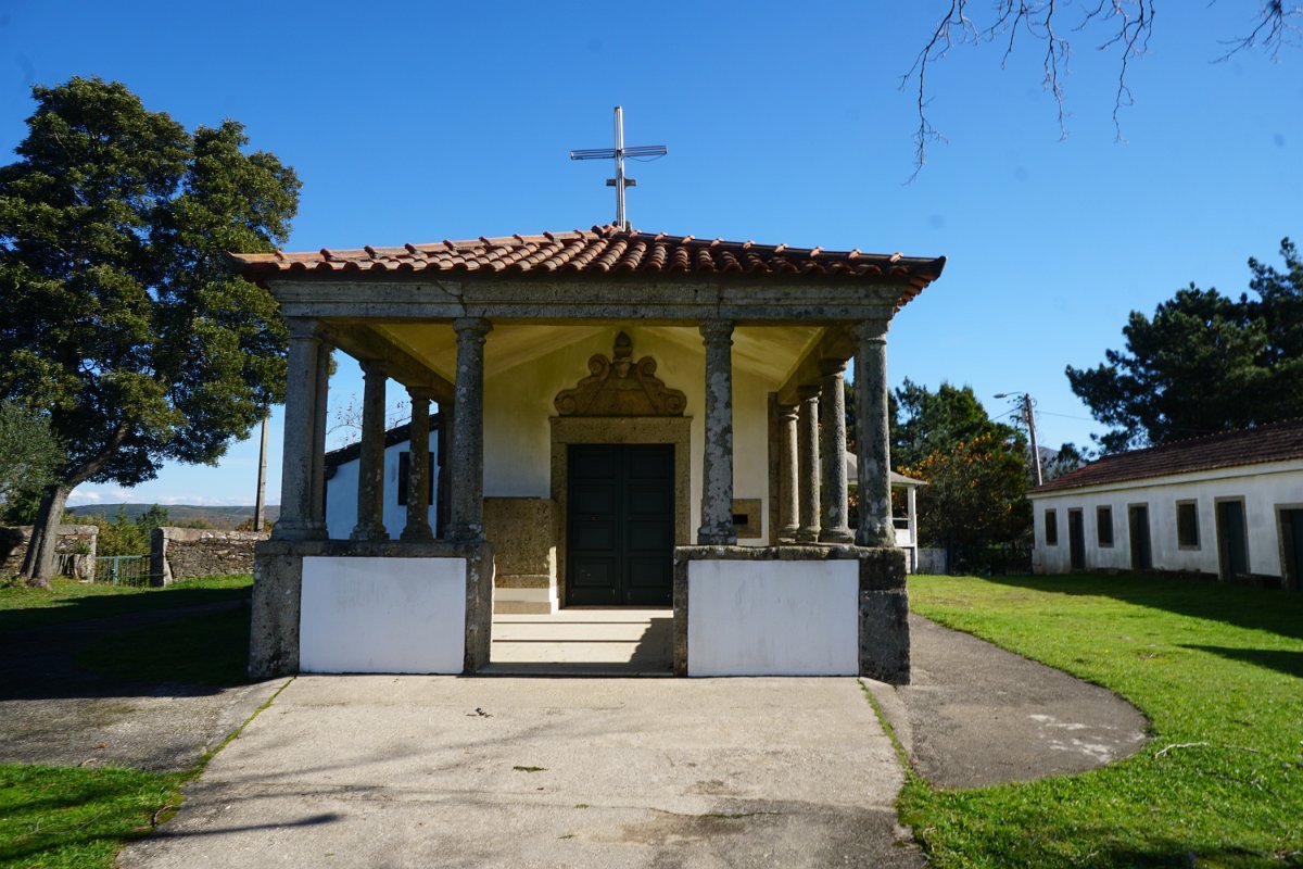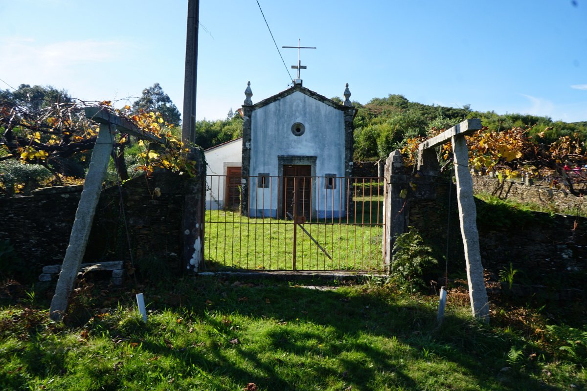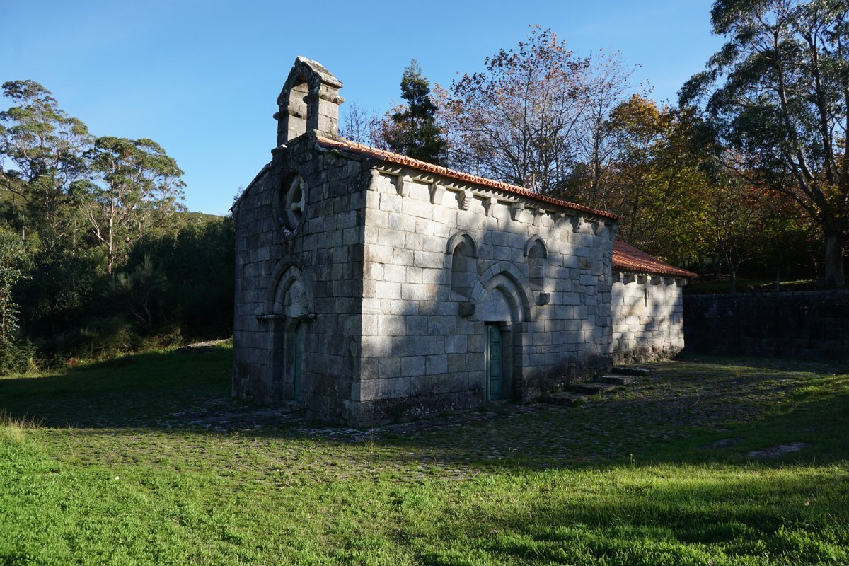 Situada na vertente de dois montes nos contrafortes da Serra d' Arga, é desconhecida a data da sua construção, apontando-se como mais provável o final do séc. XII e o início do séc. XIII, sendo certo que já é referida numa Bula de 1320 do Papa João XXII, que concede a D. Dinis por três anos e para ajuda da guerra contra os mouros, a décima de todas as rendas eclesiásticas dos seus reinos, com exceção das igrejas, comendas e benefícios, que pertencessem à Ordem de Malta. A fachada principal é coroada por um campanário de sineira única, típico do período românico tardio e os painéis pintados a fresco no interior da capela, e restaurados em 1999, datam da primeira metade do século XVI.