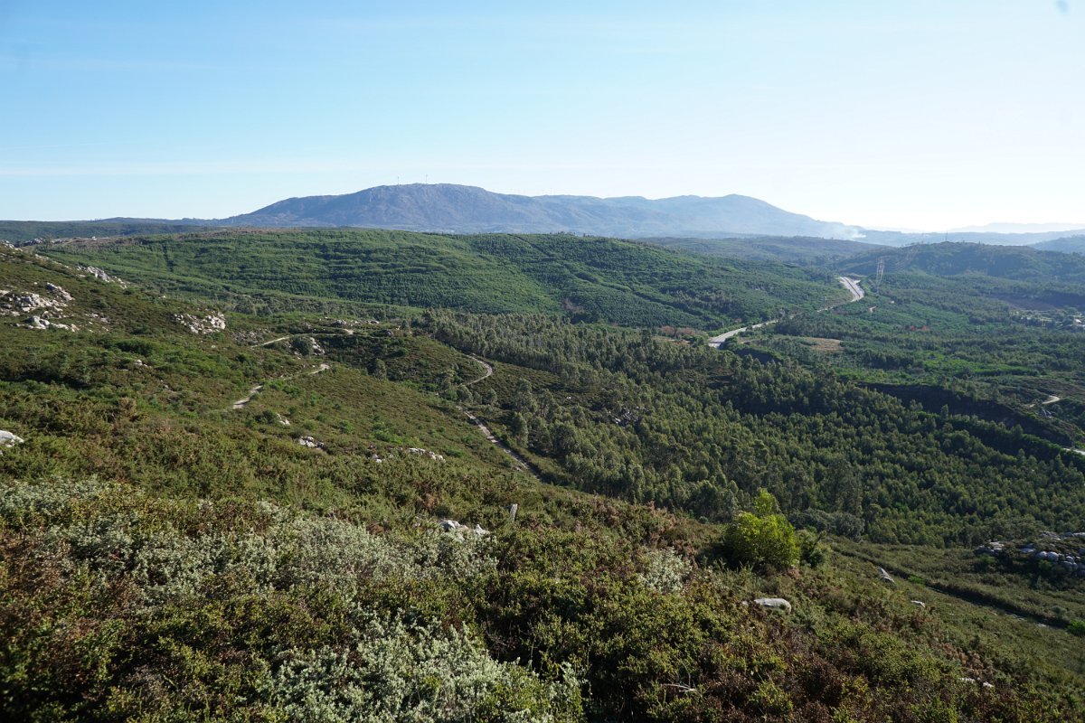Essa zona florestal está a ser intervencionada pela comissão de baldios, com as máquinas de rastos a “pentear” o crescimento espontâneo dos pinheiros, garantindo o seu afastamento e limpeza dos excedentes, após os incêndios que devastaram anteriormente a toda esta zona. Caminhos florestais largos e bem cuidados e a floresta ordenada e desmatada. Gostamos de ver!