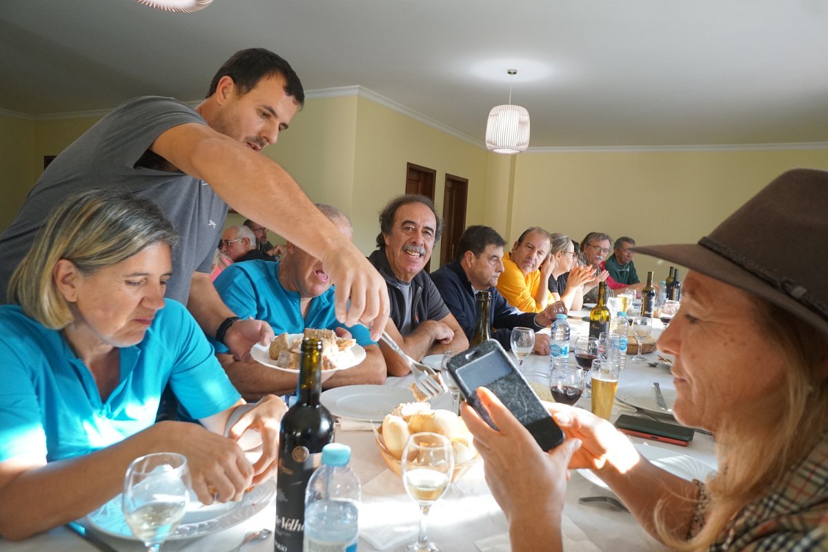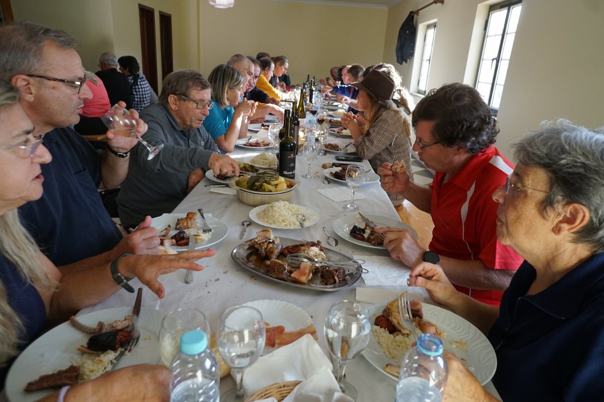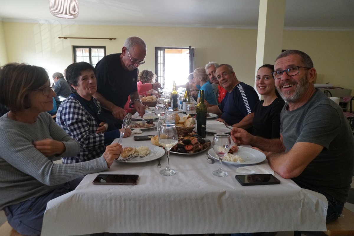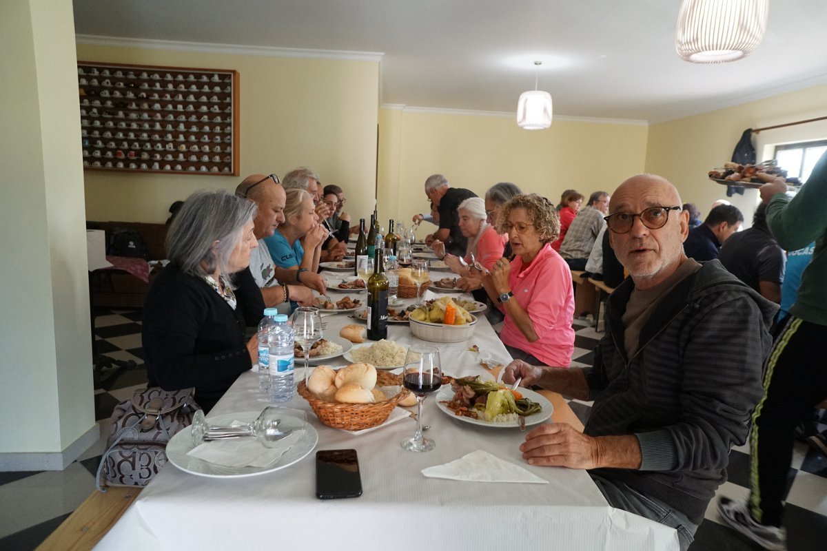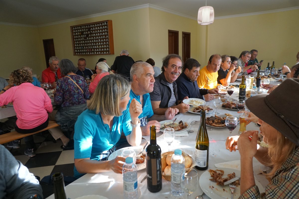 Aí nos esperavam mais alguns companheiros, que desta vez preferiram andar à volta da mesa às agruras da montanha, mas nos cederam transporte para ir buscar as viaturas ao início do percurso, antes de subir para a “desgraça”. O cozido à portuguesa estava bom e o prato alternativo de bacalhau também satisfez os esfaimados caminheiros depois de 15 Km de marcha.