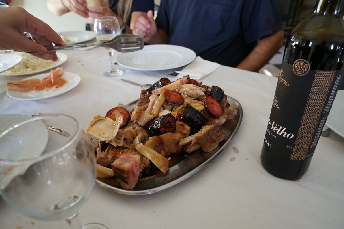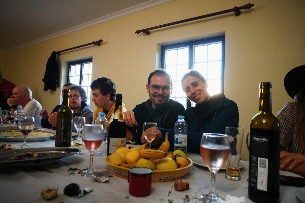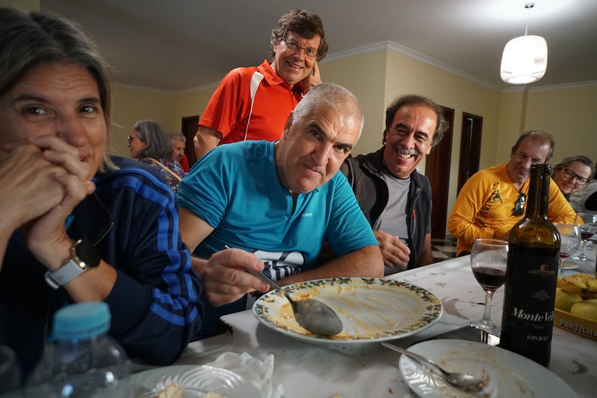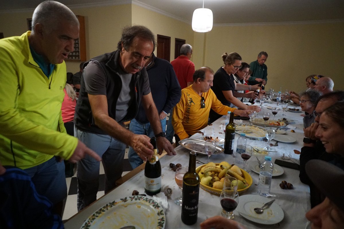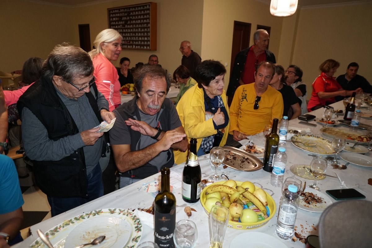Aí nos esperavam mais alguns companheiros, que desta vez preferiram andar à volta da mesa às agruras da montanha, mas nos cederam transporte para ir buscar as viaturas ao início do percurso, antes de subir para a “desgraça”. O cozido à portuguesa estava bom e o prato alternativo de bacalhau também satisfez os esfaimados caminheiros depois de 15 Km de marcha.