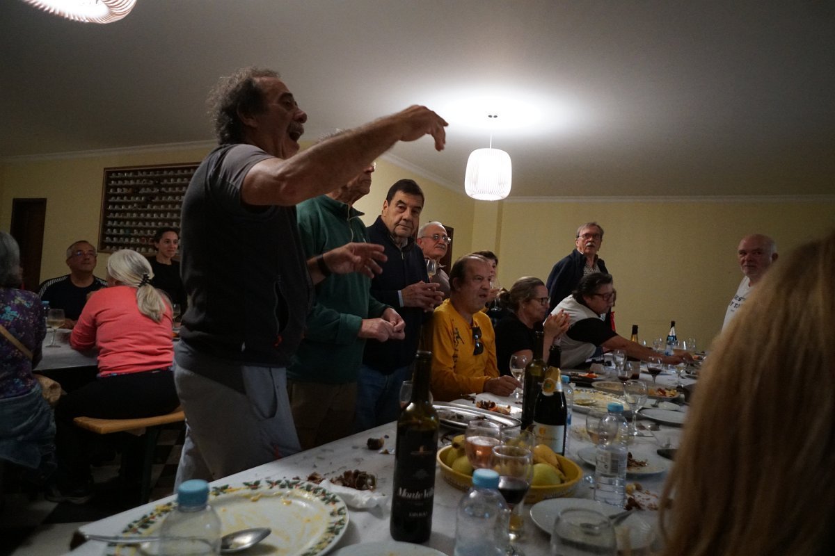 Eramos pois mais a comer do que a caminhar, com o grupo enriquecido com os amigos que nos vieram fazer companhia nesta árdua tarefa de dar destino aos comes que foram servidos a bom ritmo, com as indispensáveis castanhas assadas a rematar a refeição.