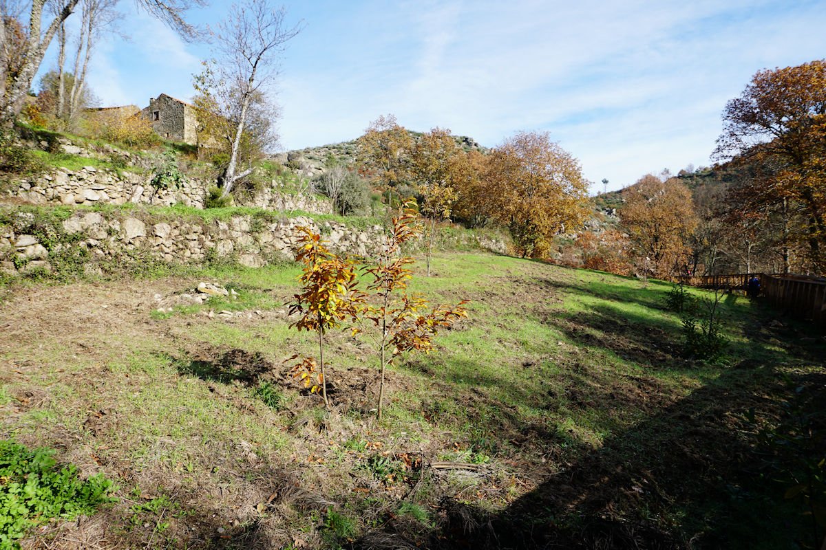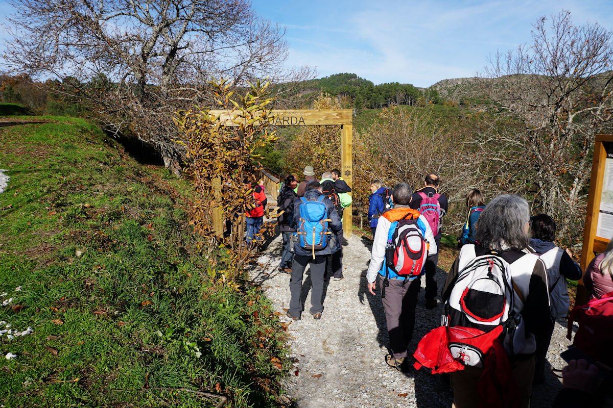O vale do Mondego entretanto alarga e ganha dimensão, permitindo uma maior abrangência destas terras serranas e possibilitando a existência de culturas agrícolas dispersas. Passamos junto da Fábrica Velha e um pouco mais à frente, depois de uma curva do vale, fica a porta de controlo do percurso do lado da Guarda, que aproveitamos para mais umas fotos e uma paragem técnica para damas e cavalheiros.