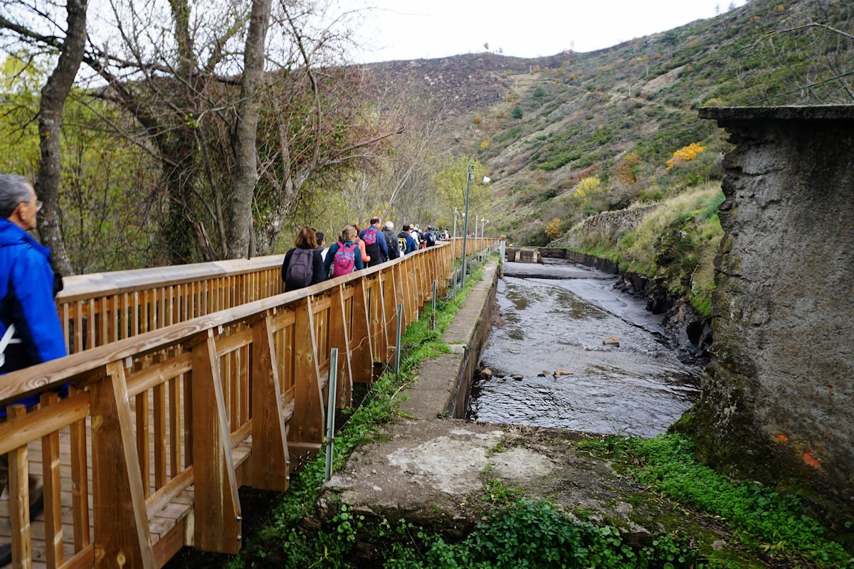 Após a refeição seguimos os passadiços até cruzar de novo o Mondego para a margem direita, passamos junto do Engenho do Pateiro, que iniciou a laboração em 1890 e ficou destruído por incêndio em 1954. Depois seguimos os passadiços sempre pela margem direita junto dos diversos açudes e respetivas levadas até à Central hidroelétrica do Pateiro, inaugurada em 1899, sendo pois uma das mais antigas do país, que alimentava de eletricidade a cidade da Guarda.
