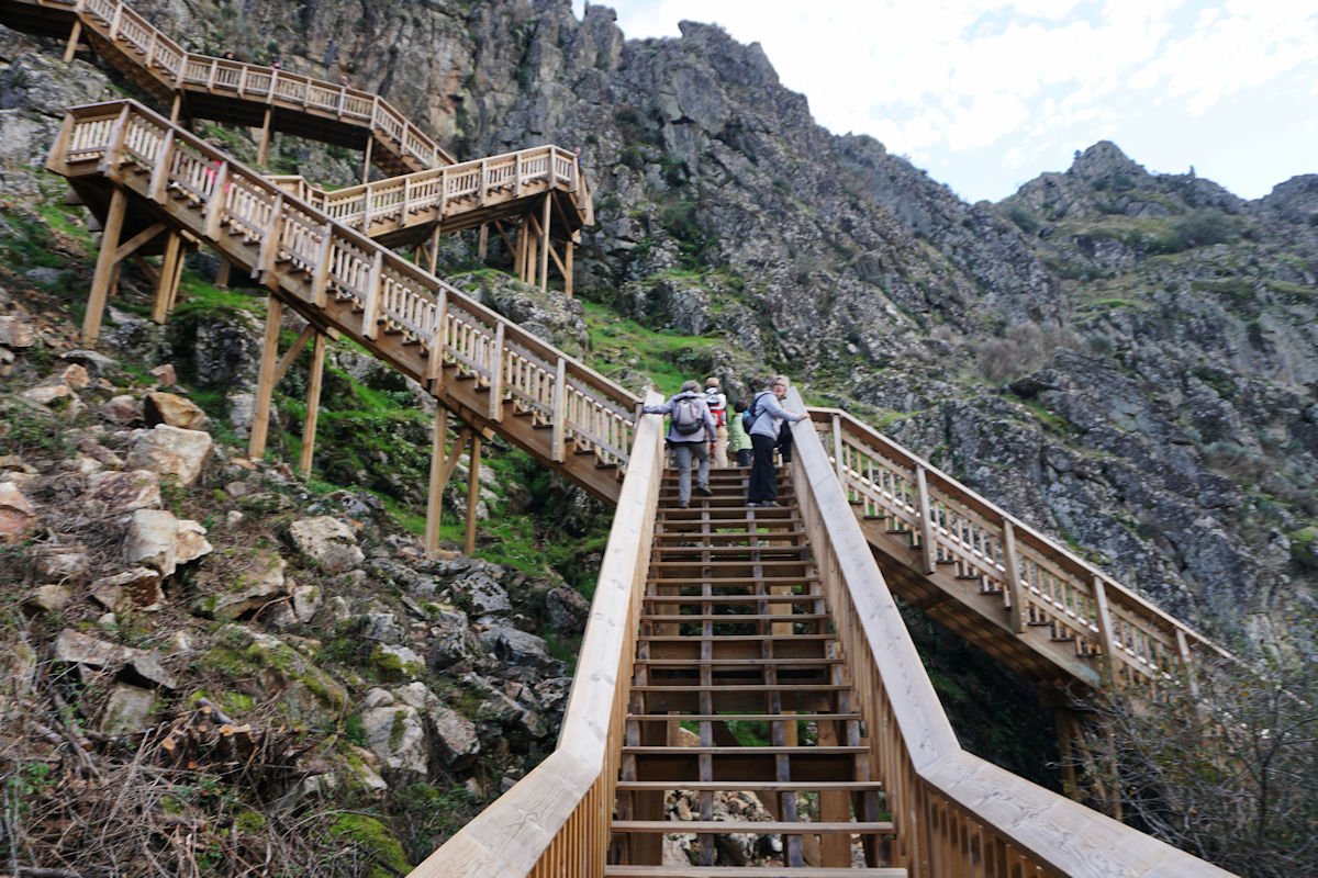 Esta opção estava desde o princípio prevista e foi posta à disposição de quem o quisesse, mas como ninguém manifestou interesse, o autocarro não desceu à ponte e aguardava por nós no cimo da barragem. Porém, talvez intimidados pela escadaria que trepava a parede da barragem, alguns deram o dito por não dito e acabaram por acabar na ponte.