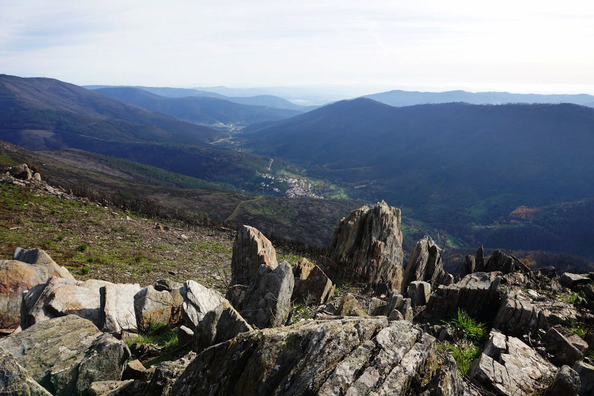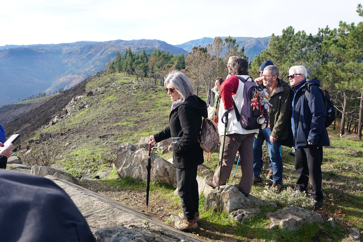 Depois de apreciar a paisagem e da foto de grupo percorremos a crista da serra na direção do Marco Geodésico e Posto de Vigia de S. Lourenço, onde se consegue ter uma vista extraordinária para Manteigas, para toda a todo o maciço da Serra da Estrela e o Vale Glaciar do Zêzere.