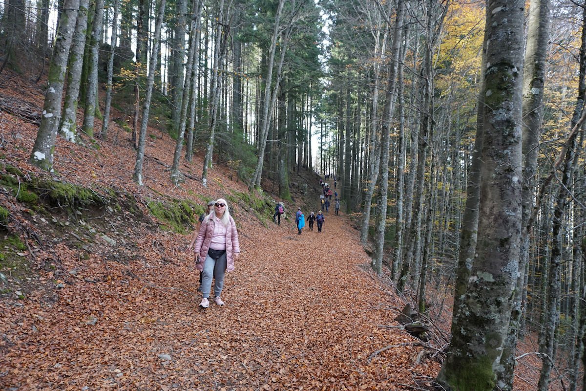 Às 08:30, depois do pequeno-almoço, rumamos ao início do percurso, tomando a EN 232 que segue para as Penhas Douradas, saindo no cruzamento para o Covão da Ponte e seguindo até encontrar a placa “PR13 – Rota das Faias”.