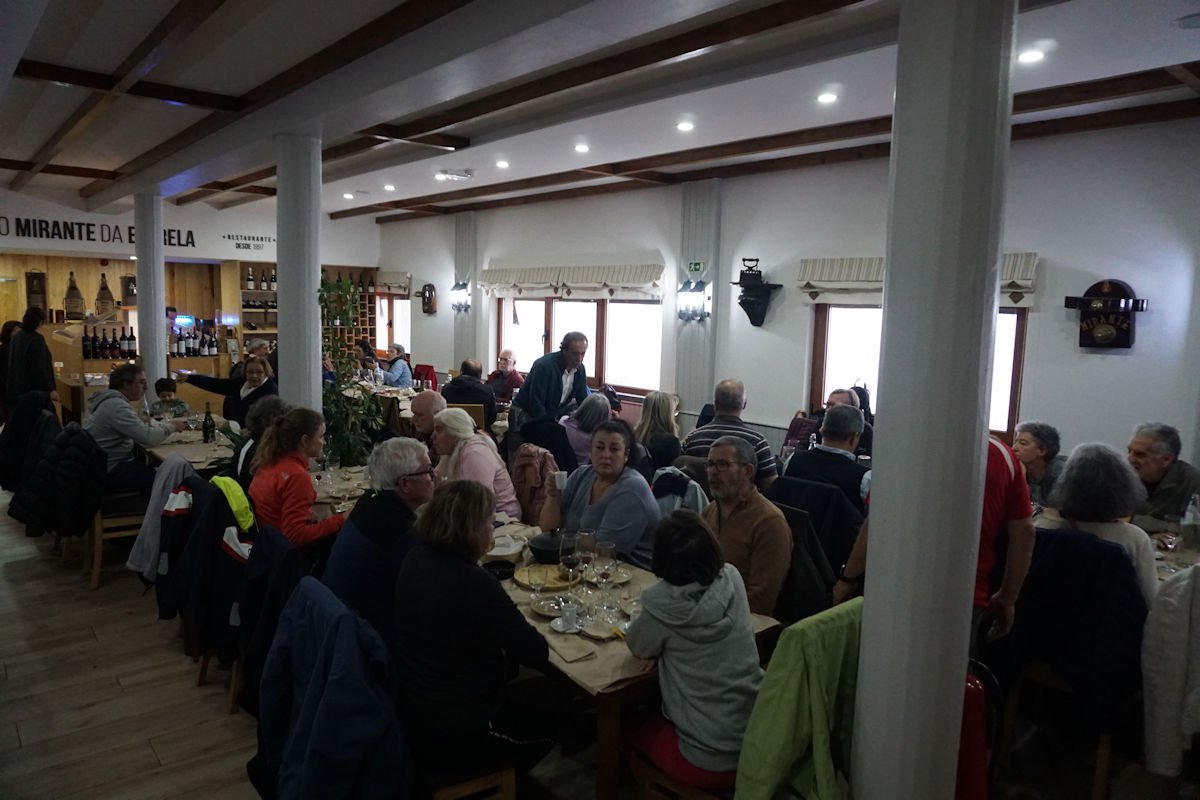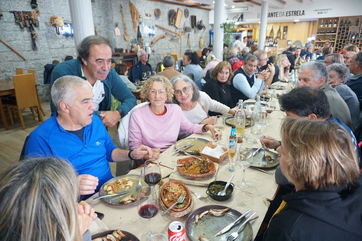 Aí reencontramos as companheiras que ficaram a repousar em Manteigas, e depois de uma breve paragem, rumamos pelas Penhas Douradas para Sabugueiro, onde estava marcado o tão esperado almoço no restaurante Mirante da Estrela.