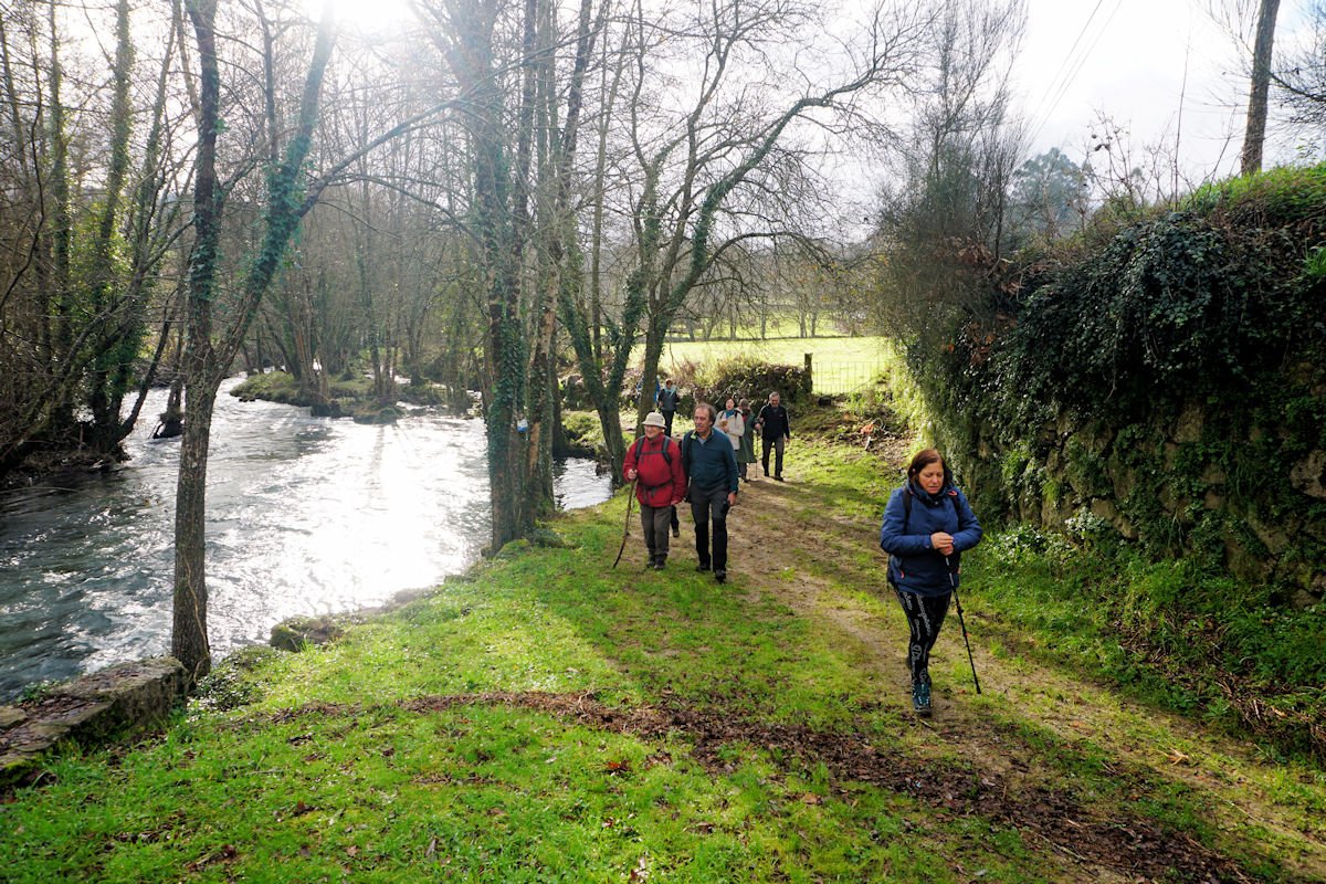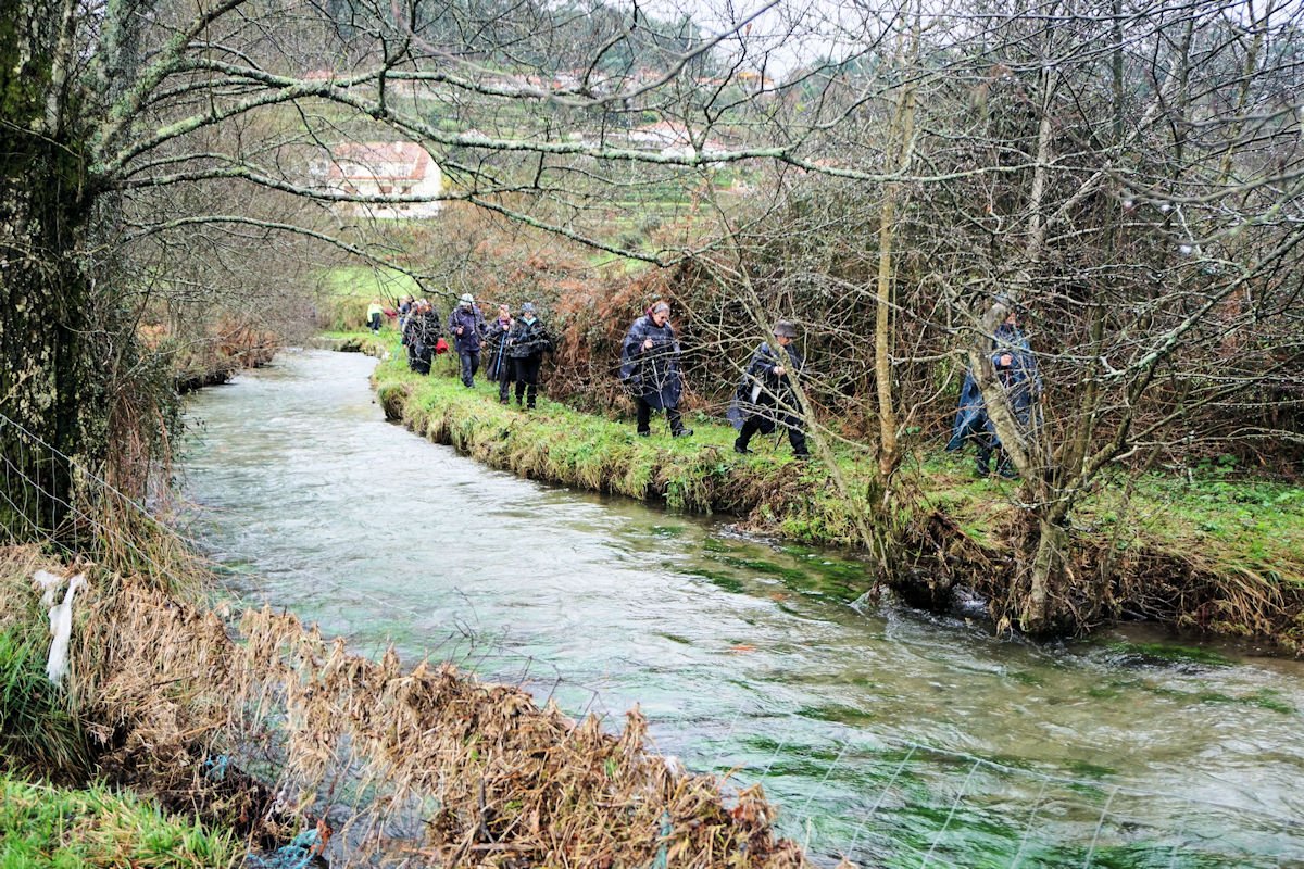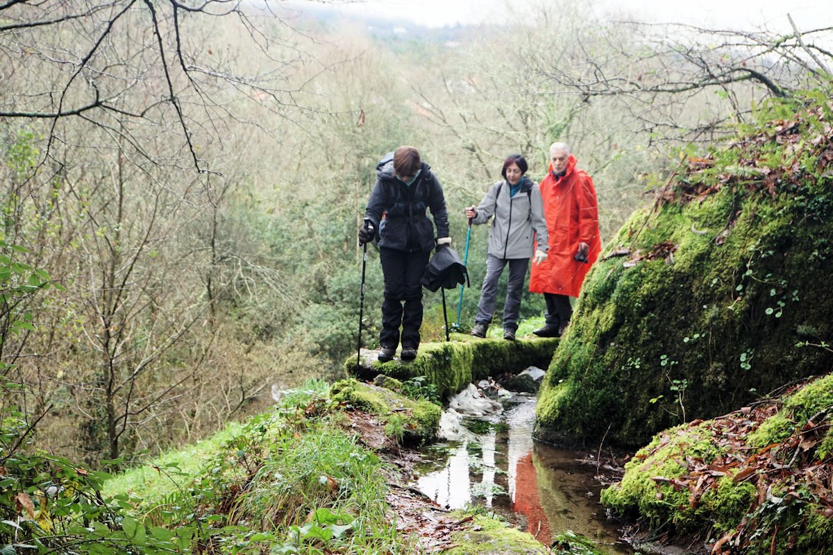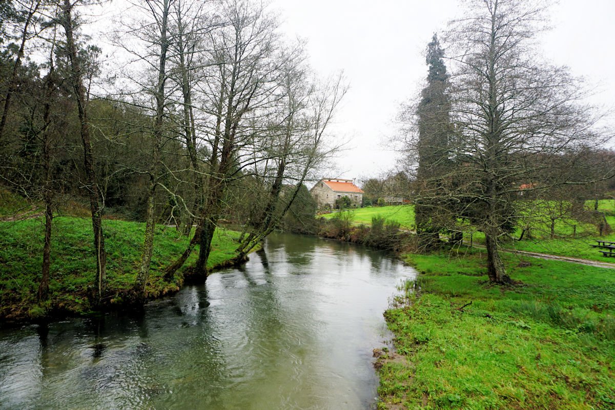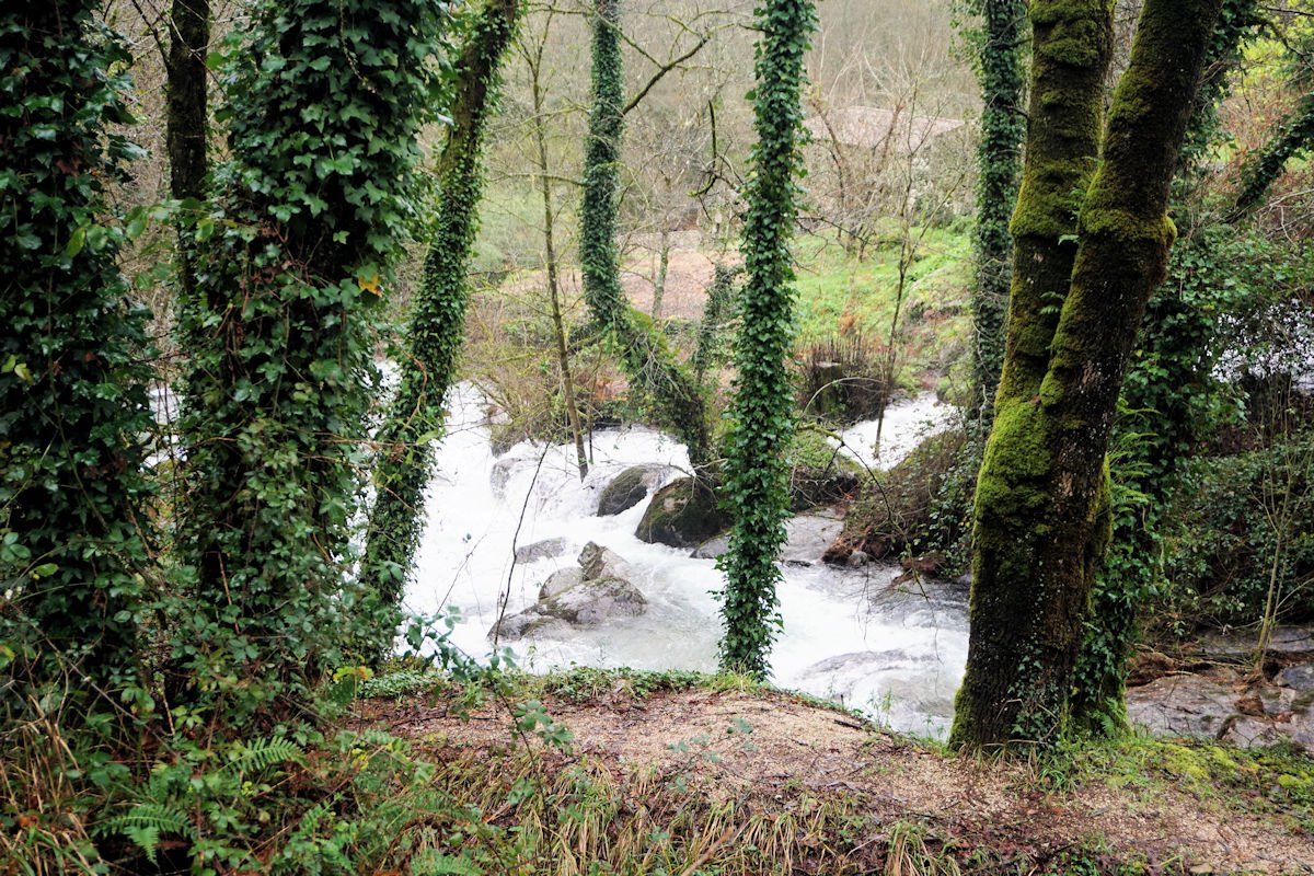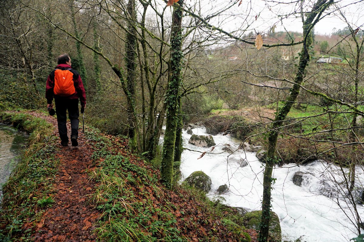 Rumamos pelas extremas dos campos de cultivo às margens do Coura, que cruzamos numa pontelha semidestruída, passando para a sua margem direita que fomos sempre acompanhando até à Ponte de Parada. Aí cruzamos de novo o rio Coura, continuando agora pela sua margem esquerda, seguindo uma levada que corre paralela ao rio, que nesta zona tem um pendor importante, descendo a encosta por uma série de quedas de água que o iam afastando cada vez mais do nosso trilho. Este troço difere do que originalmente estava previsto, mas valorizou muito o percurso, pois esta levada tem uma vista muito interessante.