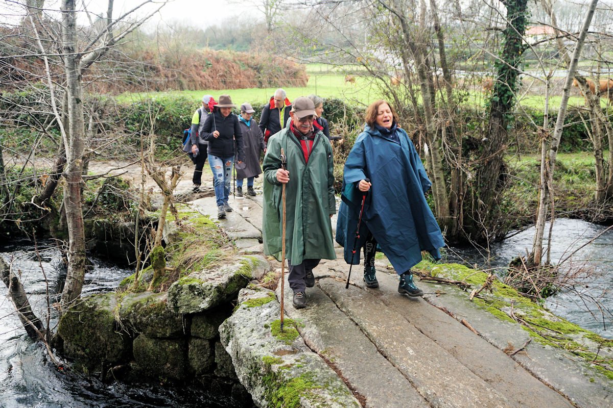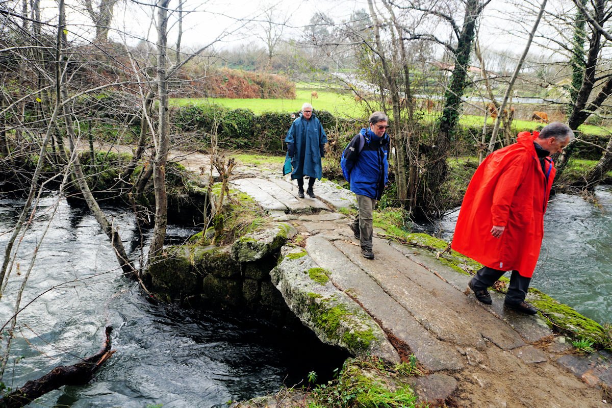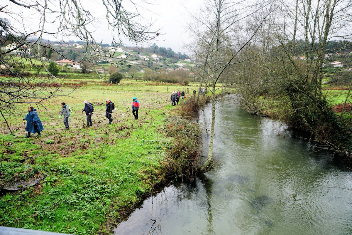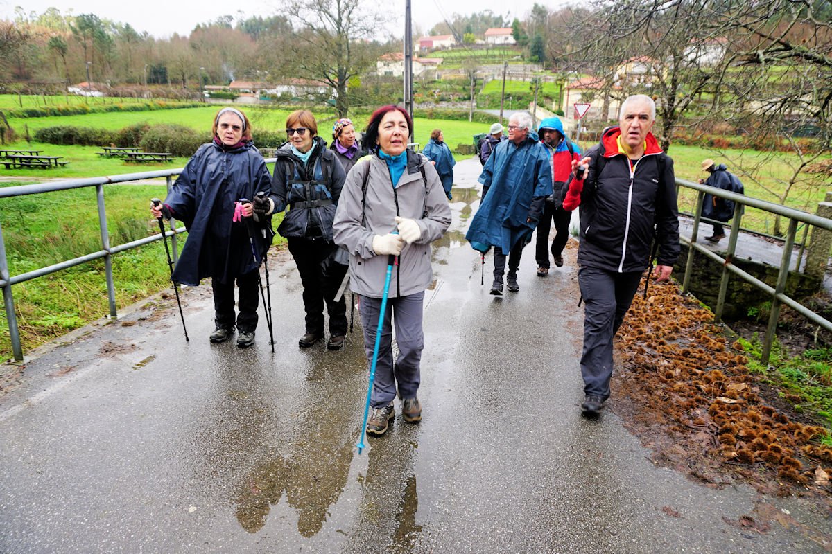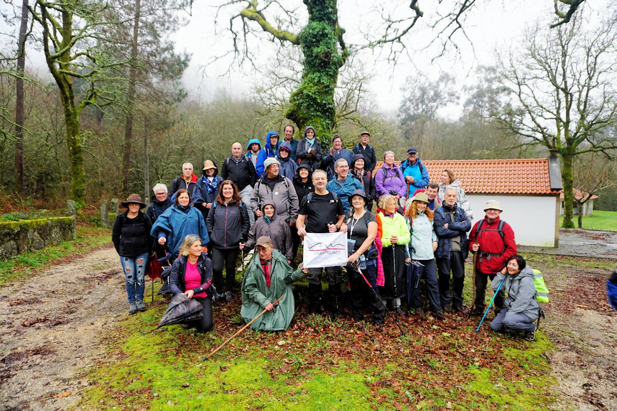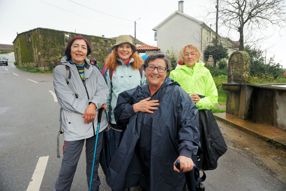 Como o sol raiava e o cenário era adequado, fizemos aquí nas margens do Coura o batismo do Camilo Correia, Paula Cristina e Graça Barroso. Não foi com as águas do Coura mas com a aguardente bagaceira do Branco que se fizeram os batismos de mais estes novos caminheiros, que assim passam a integrar o grupo.