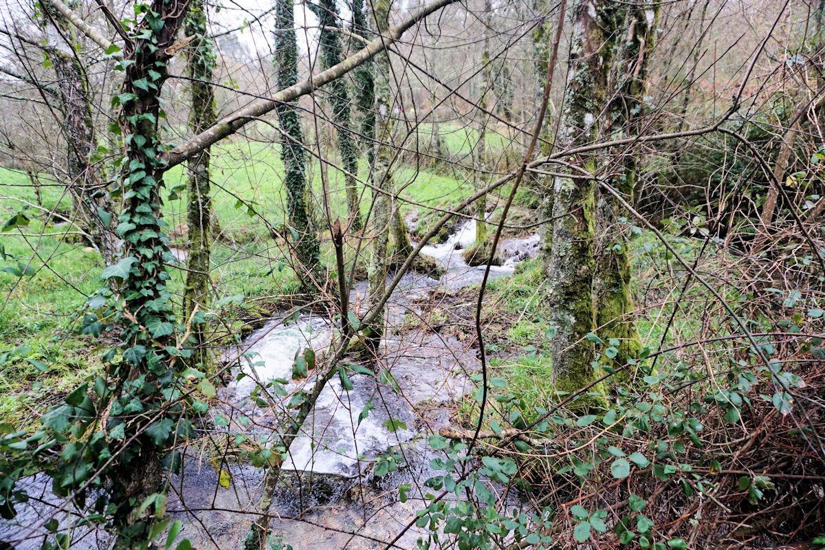 E a água em fartura causou-nos o primeiro contratempo, pois junto ao rio seguimos por uma levada de água, que ficou semidestruída com as enchentes, desaconselhando uma progressão segura. Para ultrapassar o contratempo fizemos um desvio a corta mato pela propriedade acima, retomando o caminho um pouco adiante.