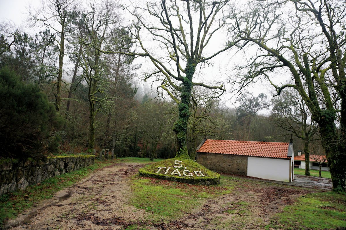 No lugar de Valinhas deixamos a margem do tumultuoso rio Coura e iniciamos a subida na direção o lugar dos Sobreiros, continuando por caminho florestal na direção do santuário de S. Tiago, ou Santiago perdido no meio de densa vegetação, em que a linha divisória das freguesias de Padronelo e Parada é feita pelo pequeno templo, que tem na porta de entrada duas caixas de esmolas, uma para as oferendas dos devotos de cada uma das freguesias confrontantes.