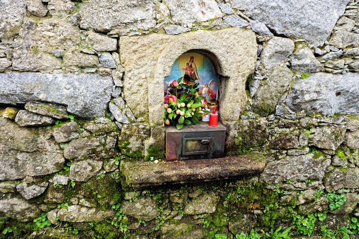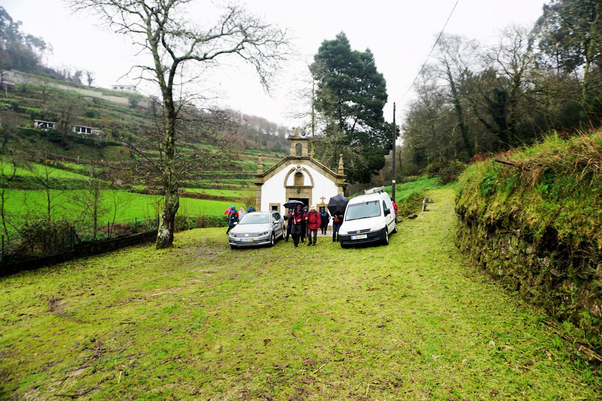 Entretanto a chuva aliviou bastante e o sol começou a espreitar pelas nuvens quando descemos pelo lugar da Várzea, passamos nas Alminhas das Eirinhas e seguimos na direção da capela de S. Gonçalo.
