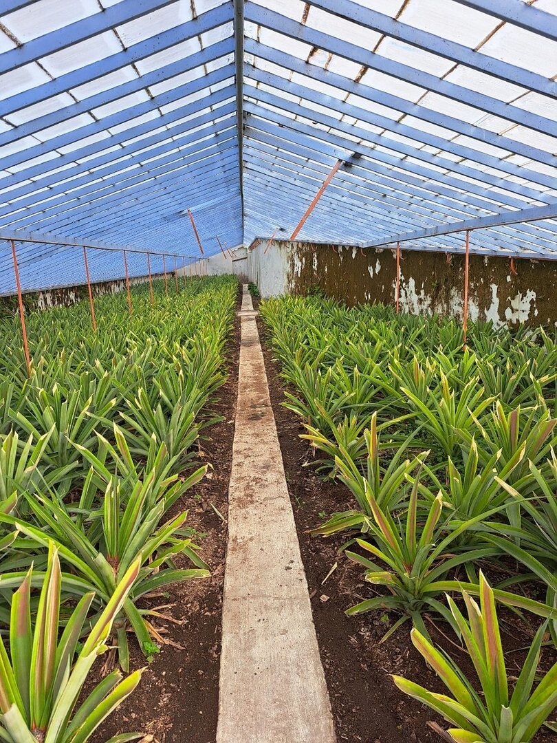 Visita à “Ananás Santo António”, uma plantação de ananases em estufa, situada perto de Ponta Delgada. Guiados por uma simpática funcionária, tomamos conhecimento de alguns aspectos interessantes e segredos ligados à história e aos métodos de produção artesanal.