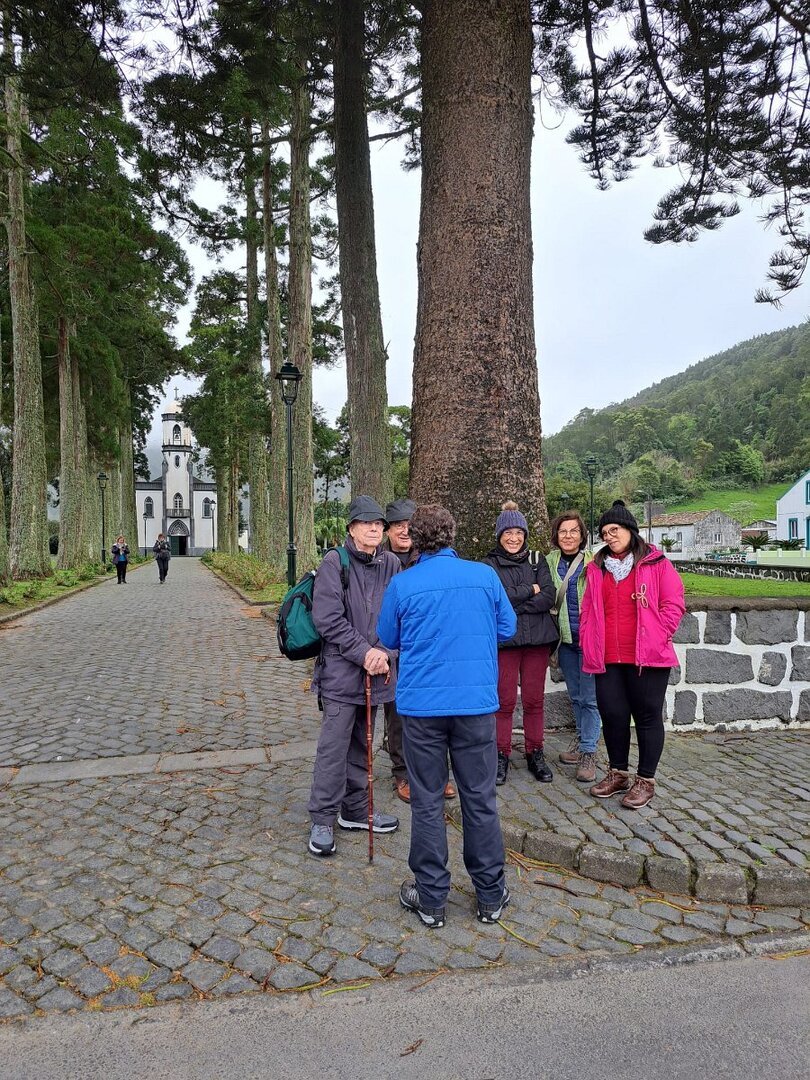 Dirigimo-nos, então, na direcção Sudeste da ilha, pelo Alto da Cova, e pela zona das caldeiras – nesta segunda passagem envoltos em nevoeiro – por Lomba, até à Fazenda das Lages, onde visitamos a Igreja de Nossa Senhora do Rosário. Prosseguimos para Oeste, com passagem na Ponta Lopo Vaz, até Mosteiro, para, finalmente, dar aqui início a um dos motivos que nos trouxe a estas paragens: uma boa caminhada.