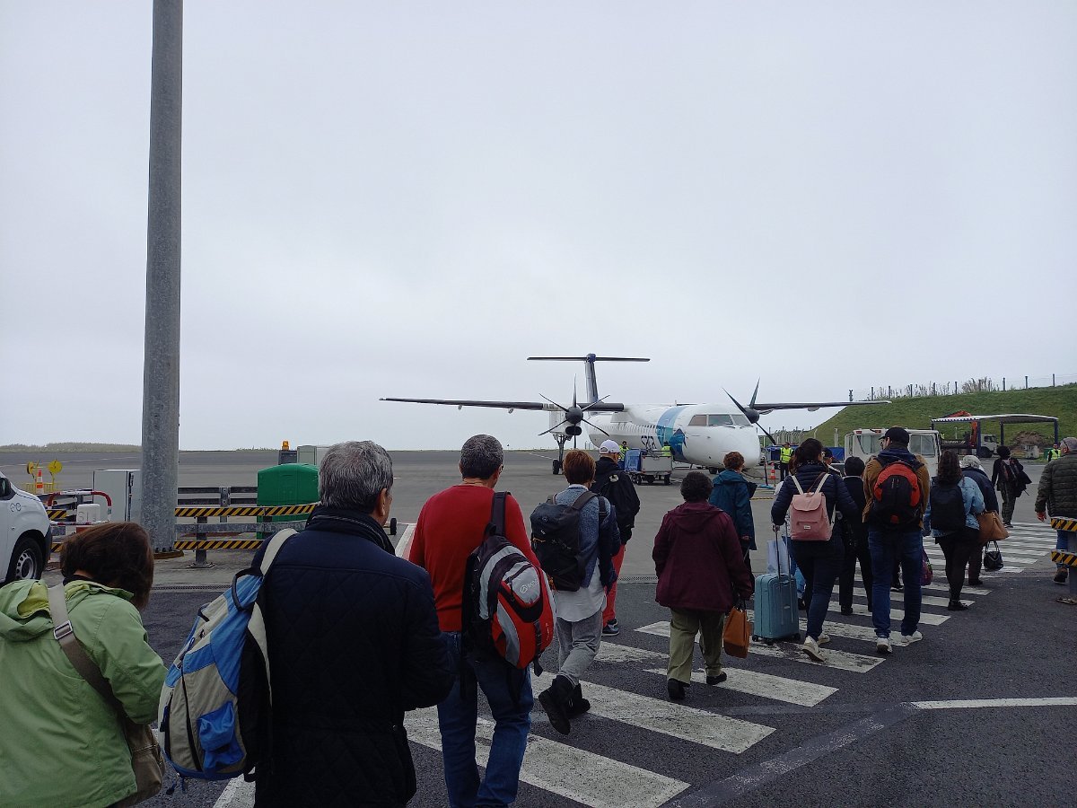 Prosseguimos rumo ao aeroporto, agora pela encosta Norte, para nova tentativa de embarque para a ilha das Flores. Em vão. A notícia dos fortes ventos que se faziam sentir na chegada, impediam qualquer aterragem, mesmo com a reconhecida experiência e perícia dos pilotos da SATA que habitualmente operam com estes pequenos aviões a hélice, em condições difíceis.
