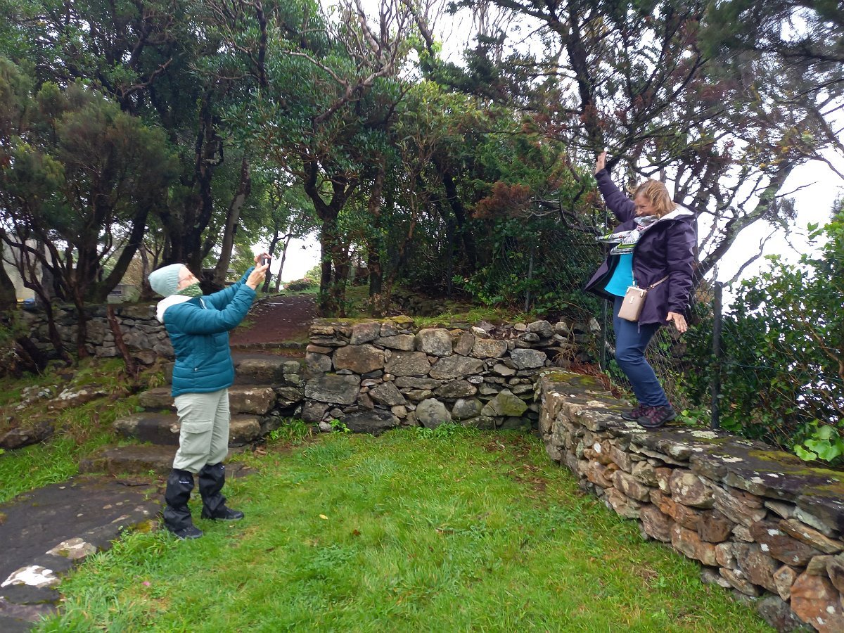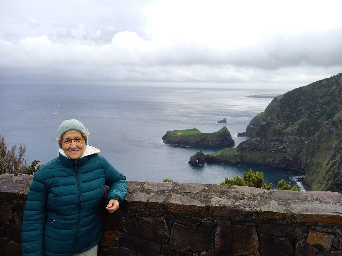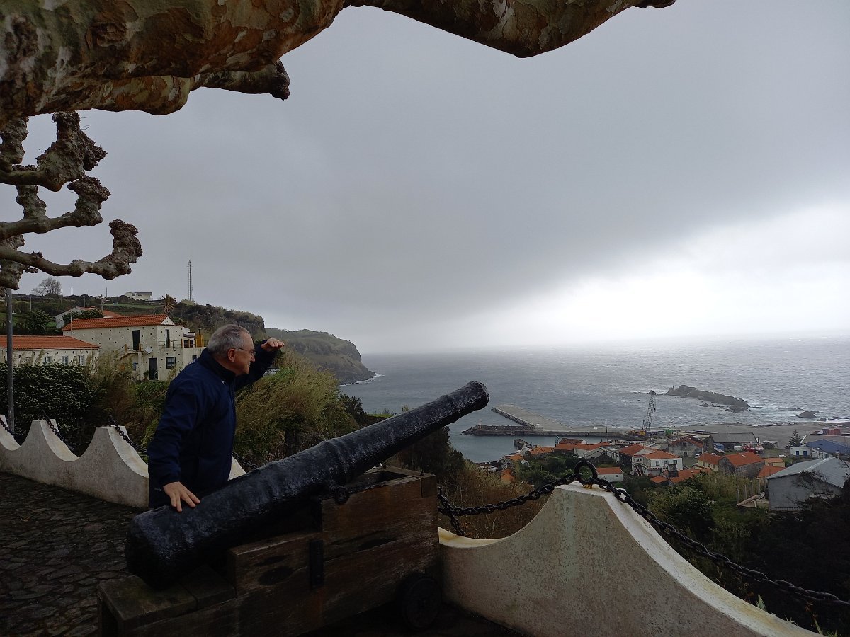 Partimos cedo, a percorrer a zona Nordeste da ilha, acidentada e de belas vistas, competentemente conduzidos pelo Sílvio e pelo Chico: Cedros, Ponta Ruiva – aqui visitamos o Museu da Casa do Machado, uma interessante recolha de objectos, testemunhos de um quotidiano passado que ainda não nos é estranho – continuando pela Capela de S. João, Ponta Delgada, e, no cimo do promontório da Ponta do Albarnaz, o episódio mais divertido, a produzir cenas hilariantes, fruto da forte ventania que quase nos levava às nuvens. Retornamos por Ponta Delgada, onde paramos para o tal café, que alguns acompanharam, imagine-se, com ovos de codorniz!