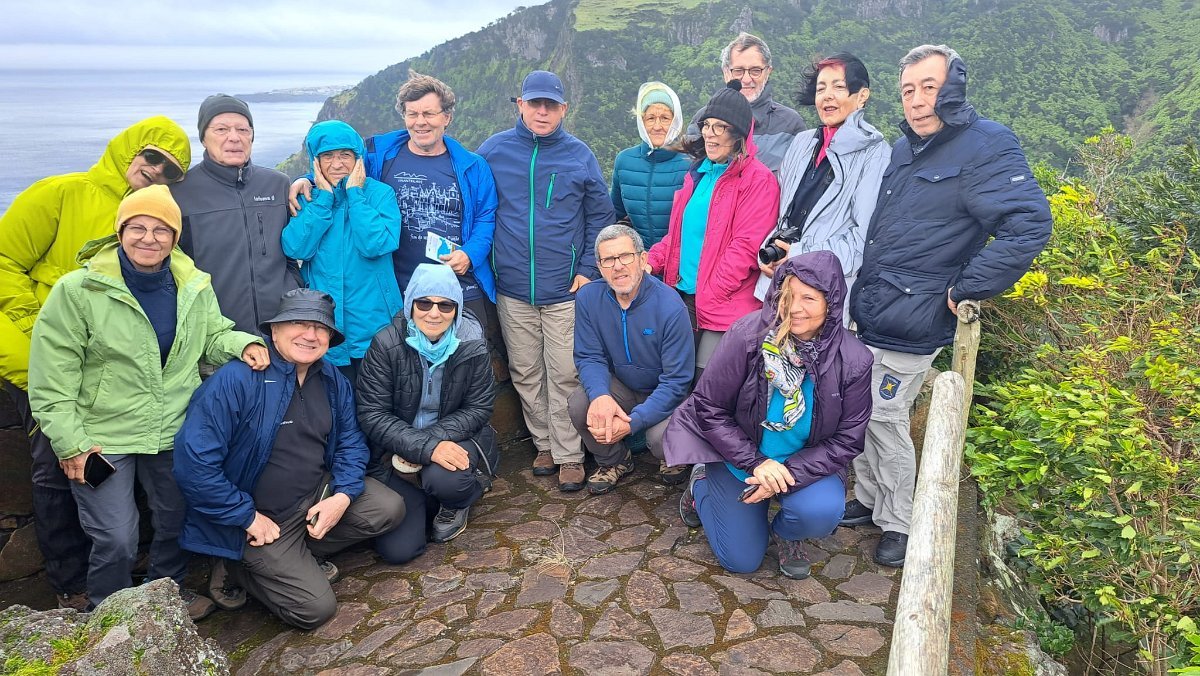 Mas até começou com uma preocupação: o nosso amigo Abreu tinha perdido a carteira com todos os documentos e estava inconsolável. Porém, depois de muita ansiedade e buscas exaustivas, lá apareceu! Como dizia o outro, nada se perde…. Tão feliz ficou o Abreu que, simpaticamente, ofereceu o café da manhã, em Ponta Delgada (Flores), a todo o grupo!