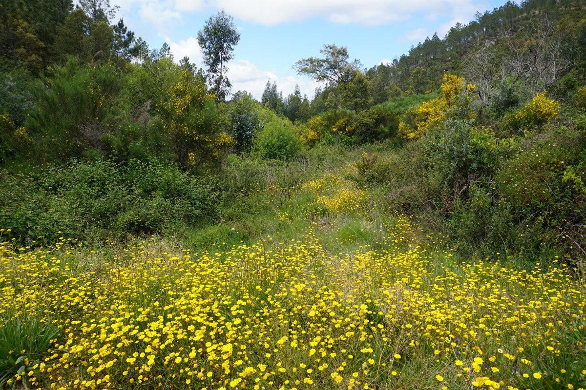 Findo o frugal almoço, iniciamos um troço ao longo do ribeiro da Água d’Alta que vai decorrendo ora pela margem direita, ora pela esquerda, sempre muito perto das águas calmas do ribeiro, rompendo uma flora primaveril, com luxuriante palete de cores.