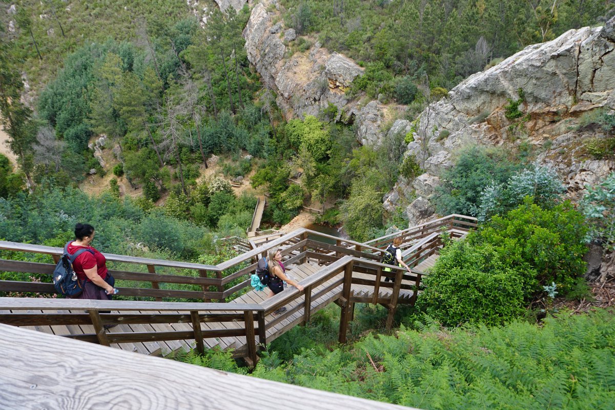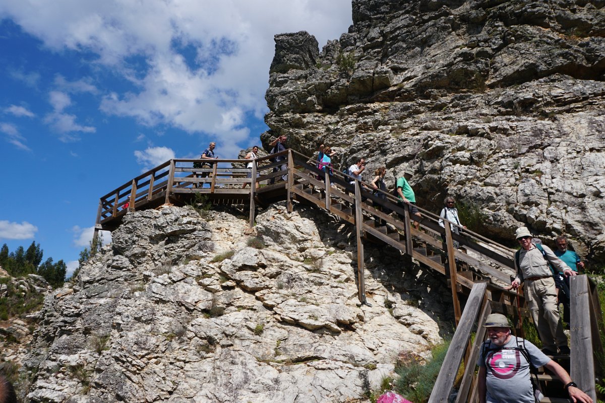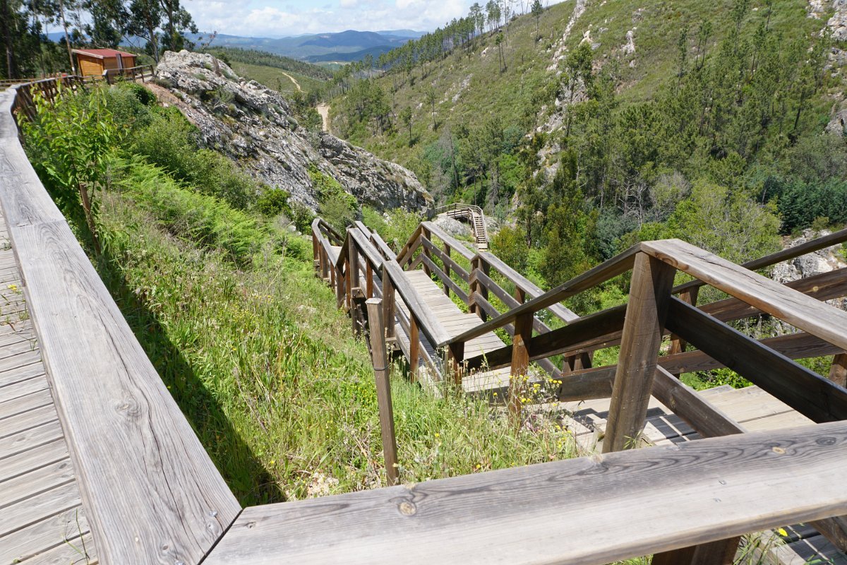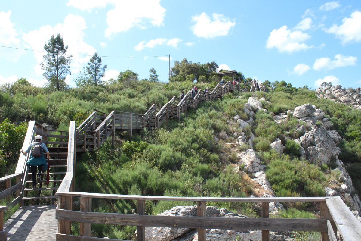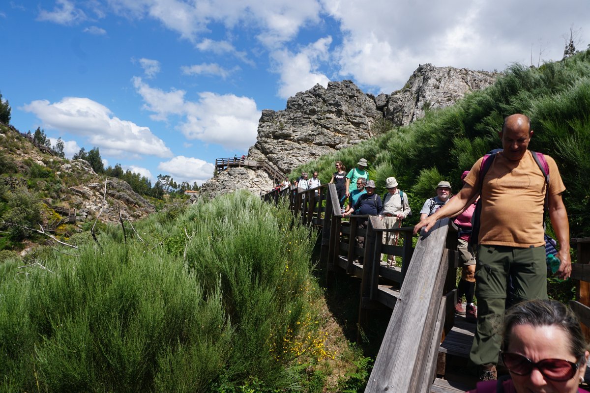 Desta vez fomos até ao distrito de Castelo Branco para fazer os muito badalados Passadiços do Orvalho, situados no concelho de Oleiros, mais precisamente na freguesia do Orvalho, que lhe dá o nome. Estes passadiços estão inseridos na área do Geopark Naturtejo e prometiam “proporcionar uma das paisagens mais bonitas da Beira Baixa com um conjunto de geomonumentos classificados pela UNESCO, como a Cascata da Fraga de Água d´Alta e o Cabeço do Mosqueiro”.