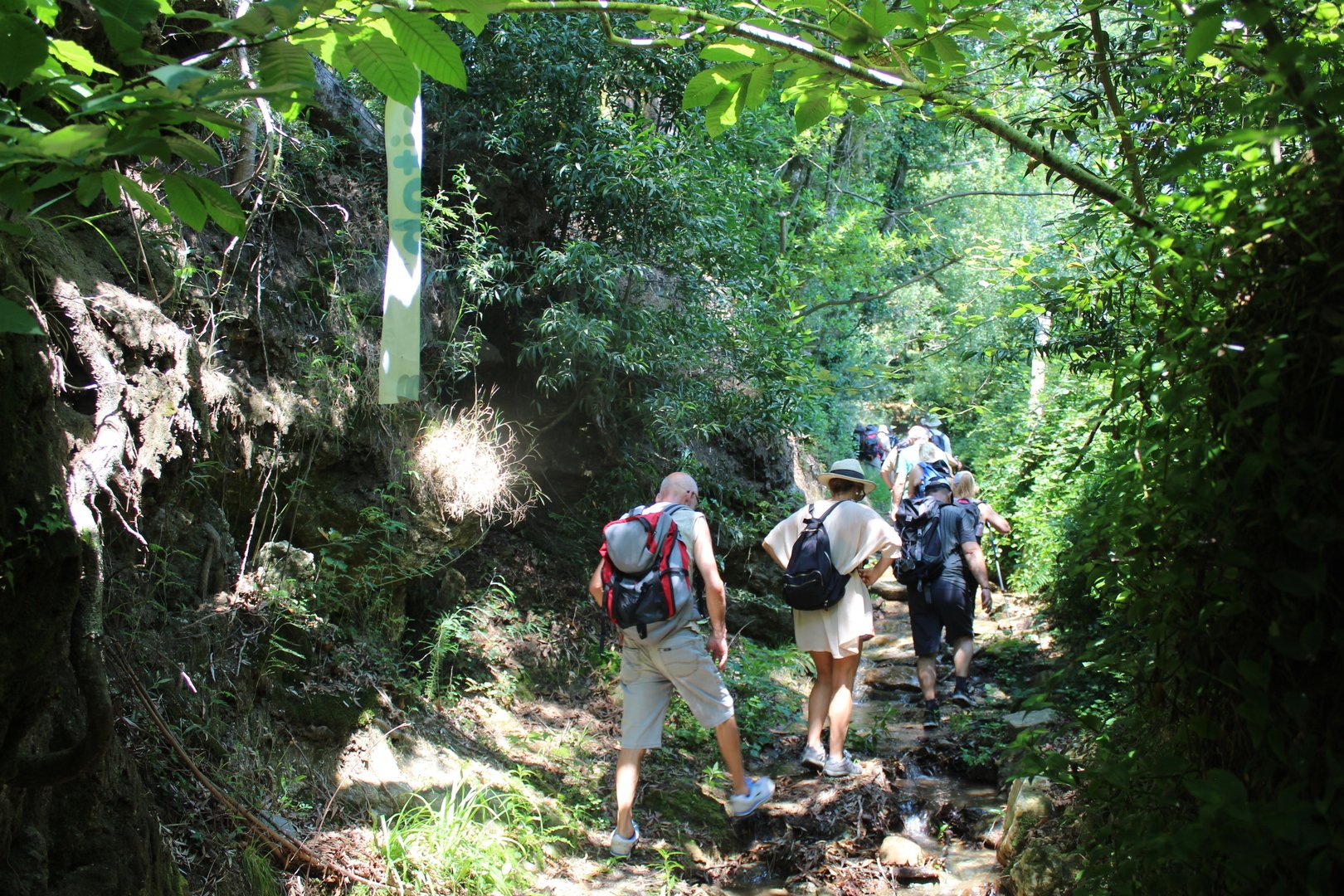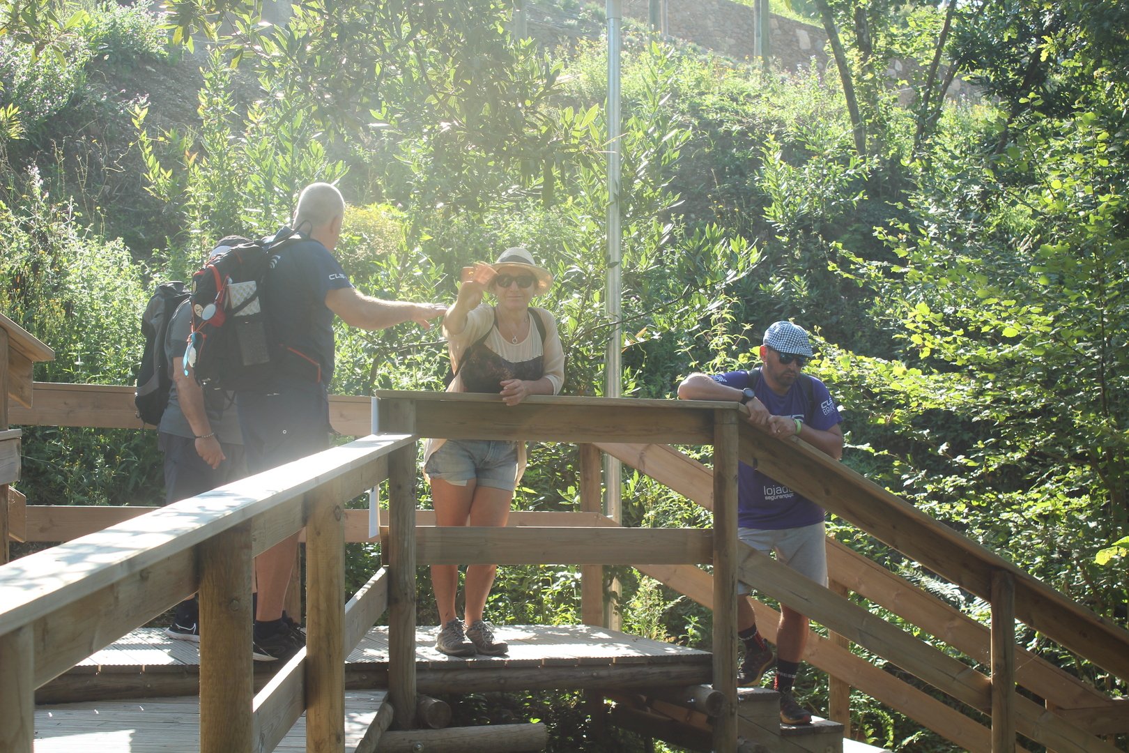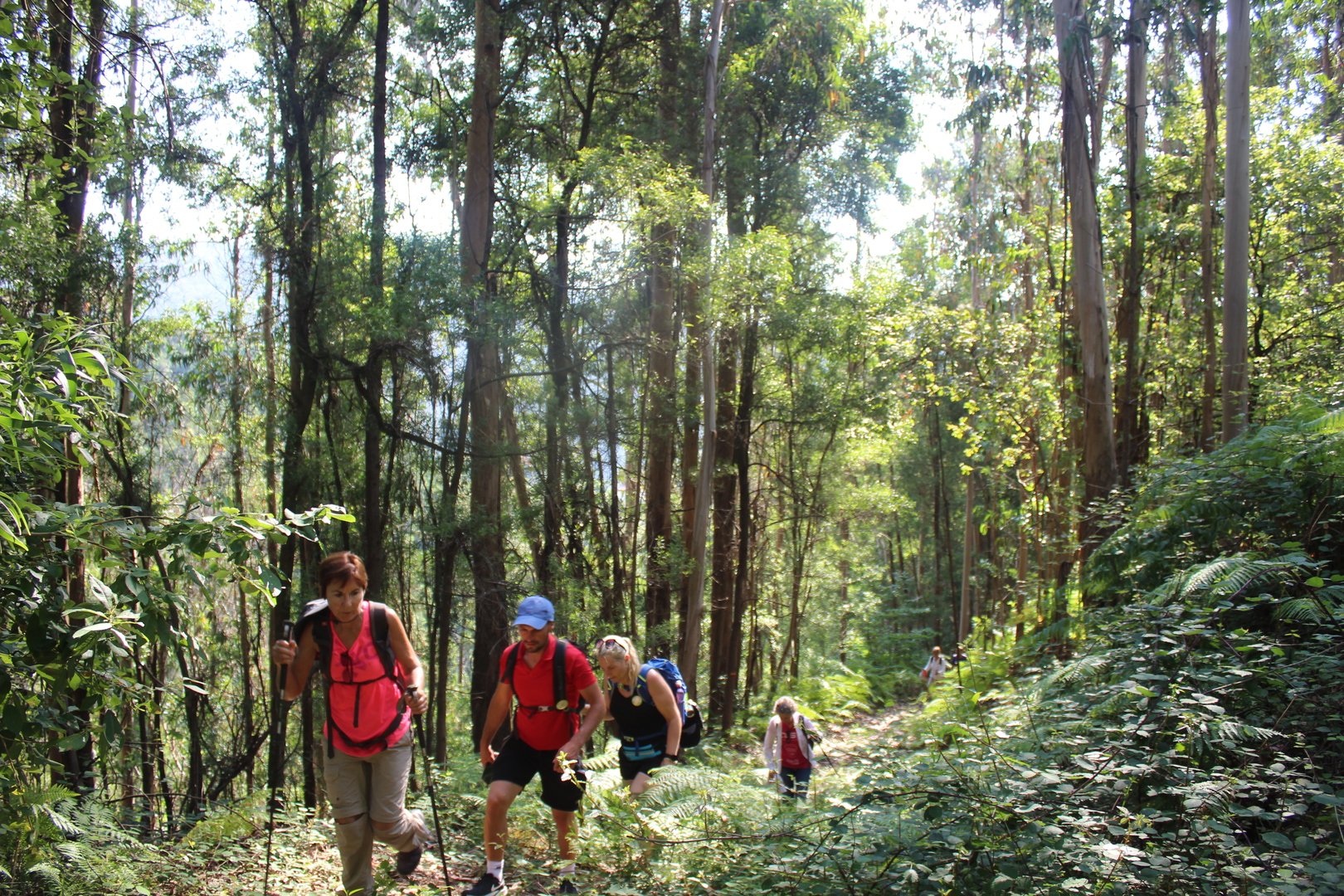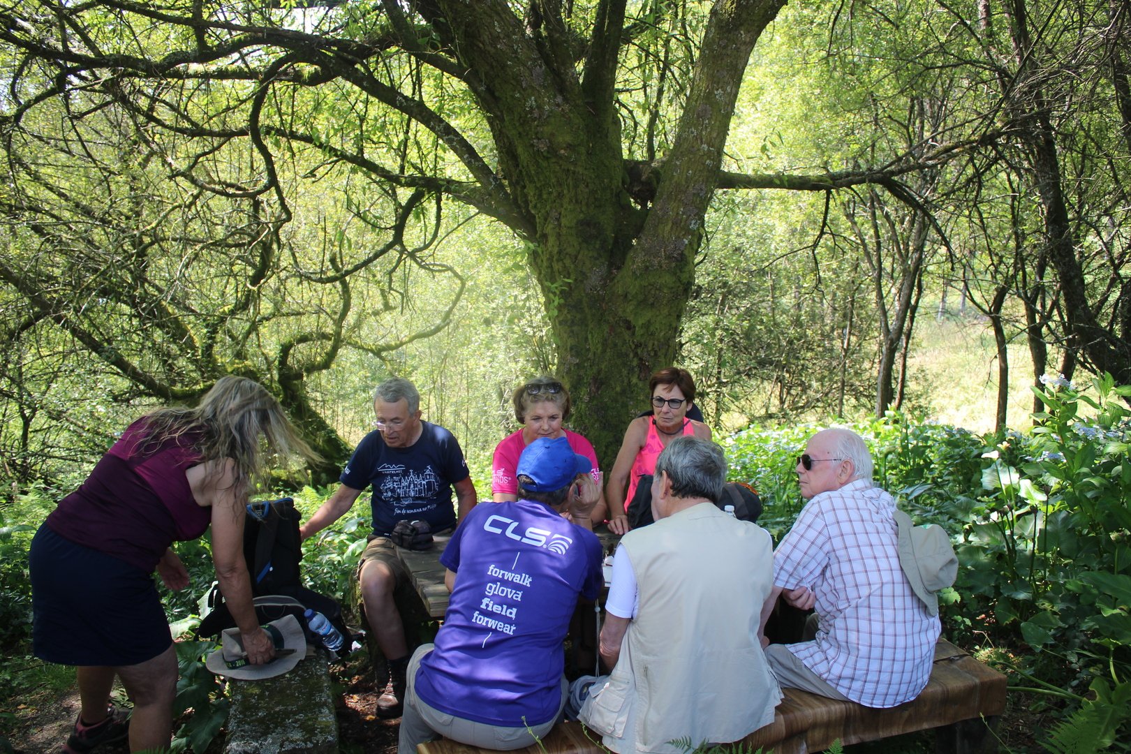 Iniciamos o trilho partindo do Santuário de N. Sr. do Socorro na freguesia de Labruja (Ponte de Lima). Aqui se dirigiam as gentes da ribeira de Viana em tempos de aflição, atestado pelos numerosos ex-votos expostos no seu interior. Cruzamos os recém reconstruídos Moinhos da Várzea instalados no ribeiro de S. João assim como a zona envolvente, e logo depois a igreja Paroquial. Sempre subindo primeiro por entre o casario e logo depois nos embrenhamos numa mata até atingirmos a pequena capela de Sta. Cristina, local onde se fez breve pausa e reabastecimento. Atingimos a EN201 e caminhamos ao longo da mesma até chegarmos ao Alto da Portela Pequena onde virando á direita apanhamos um estradão florestal que nos levou até à casa Florestal de Portela Grande, local escolhido para realizarmos o almoço eram cerca das 12H45. Aqui neste local situa-se um dos mais emblemáticos do Caminho Central de Santiago. A subida que vinda da Labruja até aqui sendo bastante ingreme é referenciada como local de dificuldade elevada.