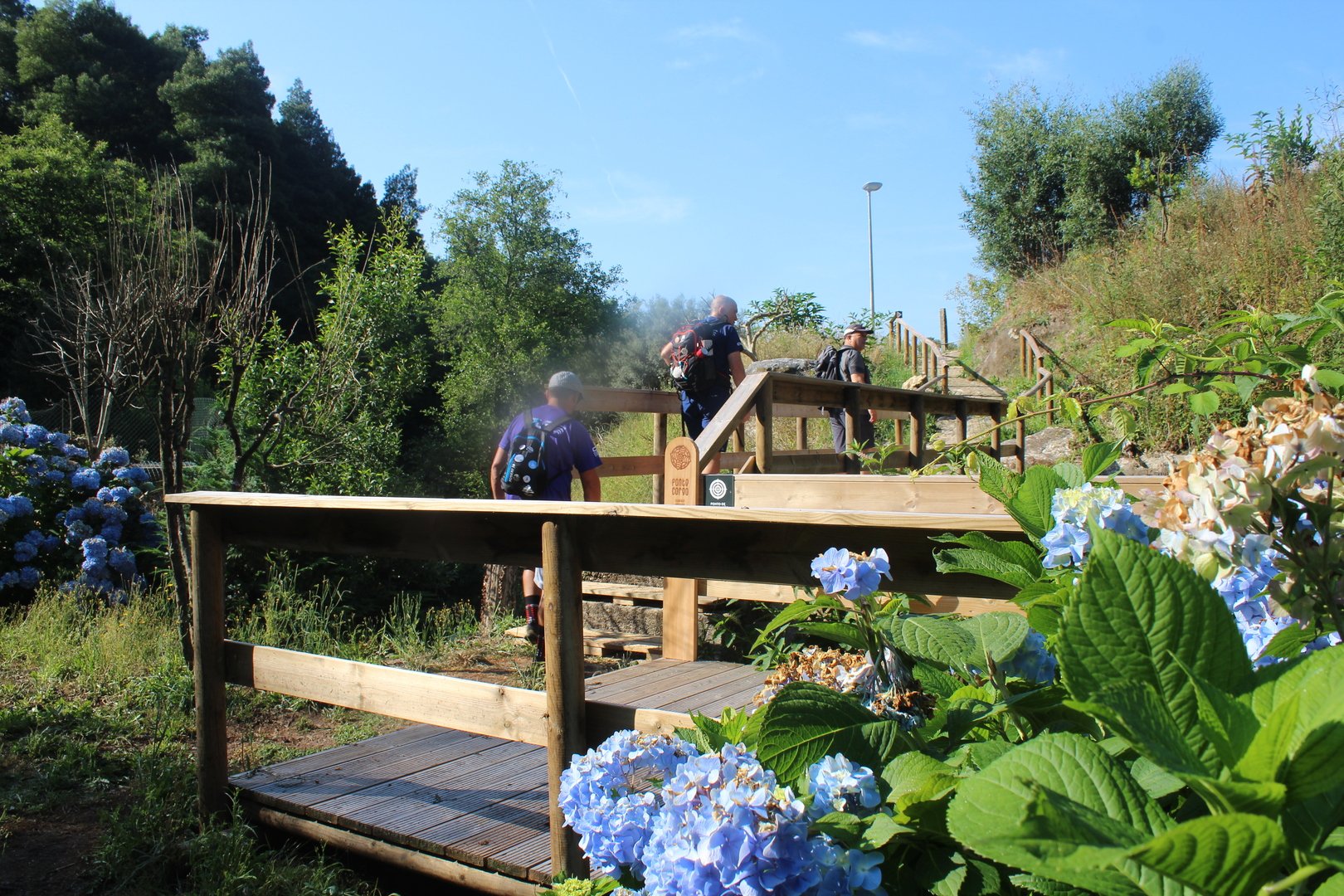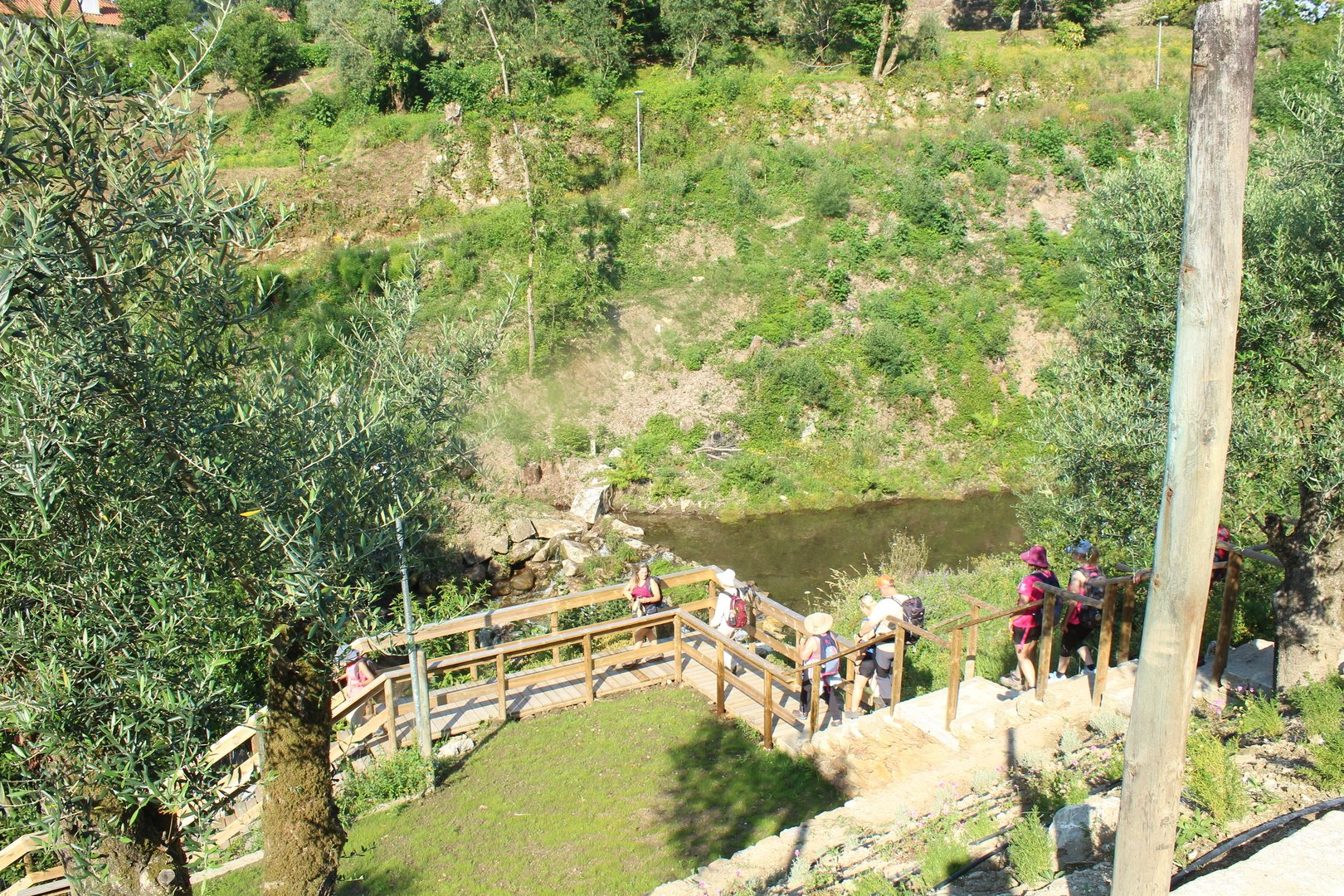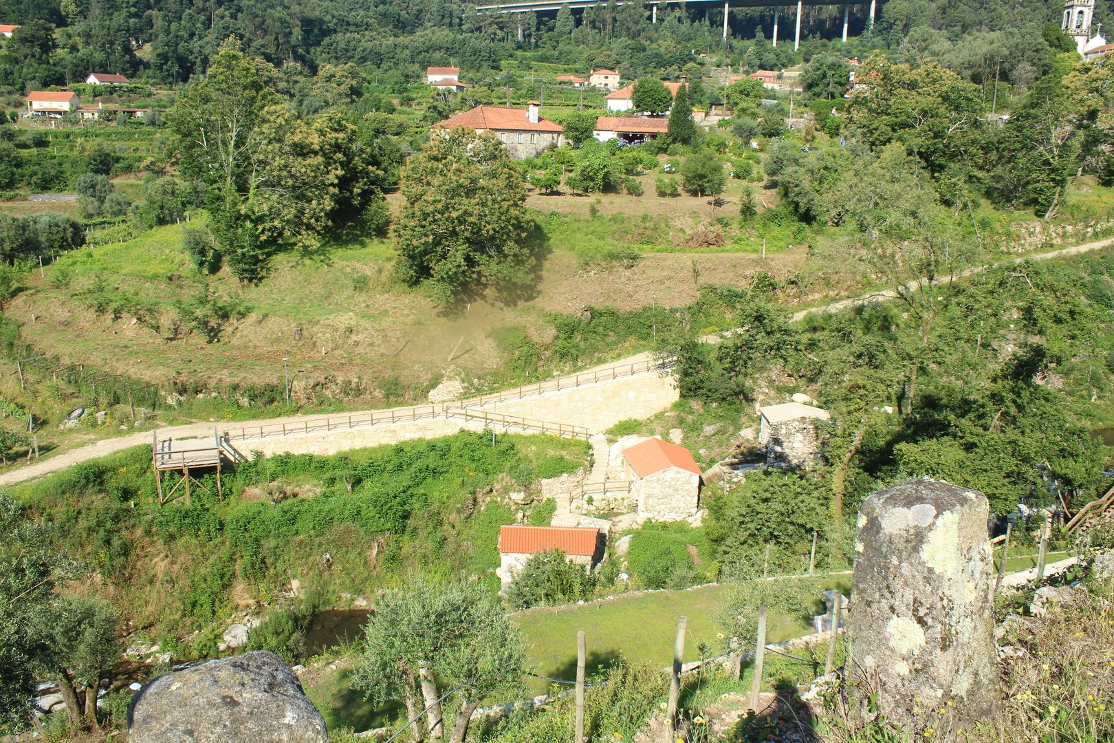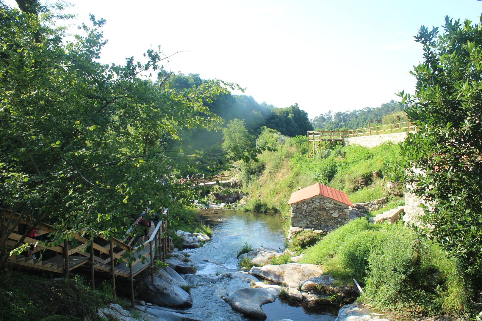 Realizado o almoço e termos aproveitado para encher os cantis, iniciamos a descida e a meio cruzamos a muito referenciada Cruz dos Franceses, local mítico do caminho por sinalizar onde o povo da Labruja montou uma emboscada às tropas de Napoleão na sua retirada. Continuamos descendo e chegamos e atingimos a pequena ermida de S. João da gruta ou da Grove, local repleto de encanto com o seu bucólico parque de merendas. Aqui passa o ribeiro de S. João, afluente do rio Labruja. Agora sempre acompanhando este ribeiro na sua descida a breve trecho cruzamos a Ponte de Porto Ribeiro e mais à frente atingimos o final deste percurso novamente junto ao Santuário do Sr. Do Socorro.