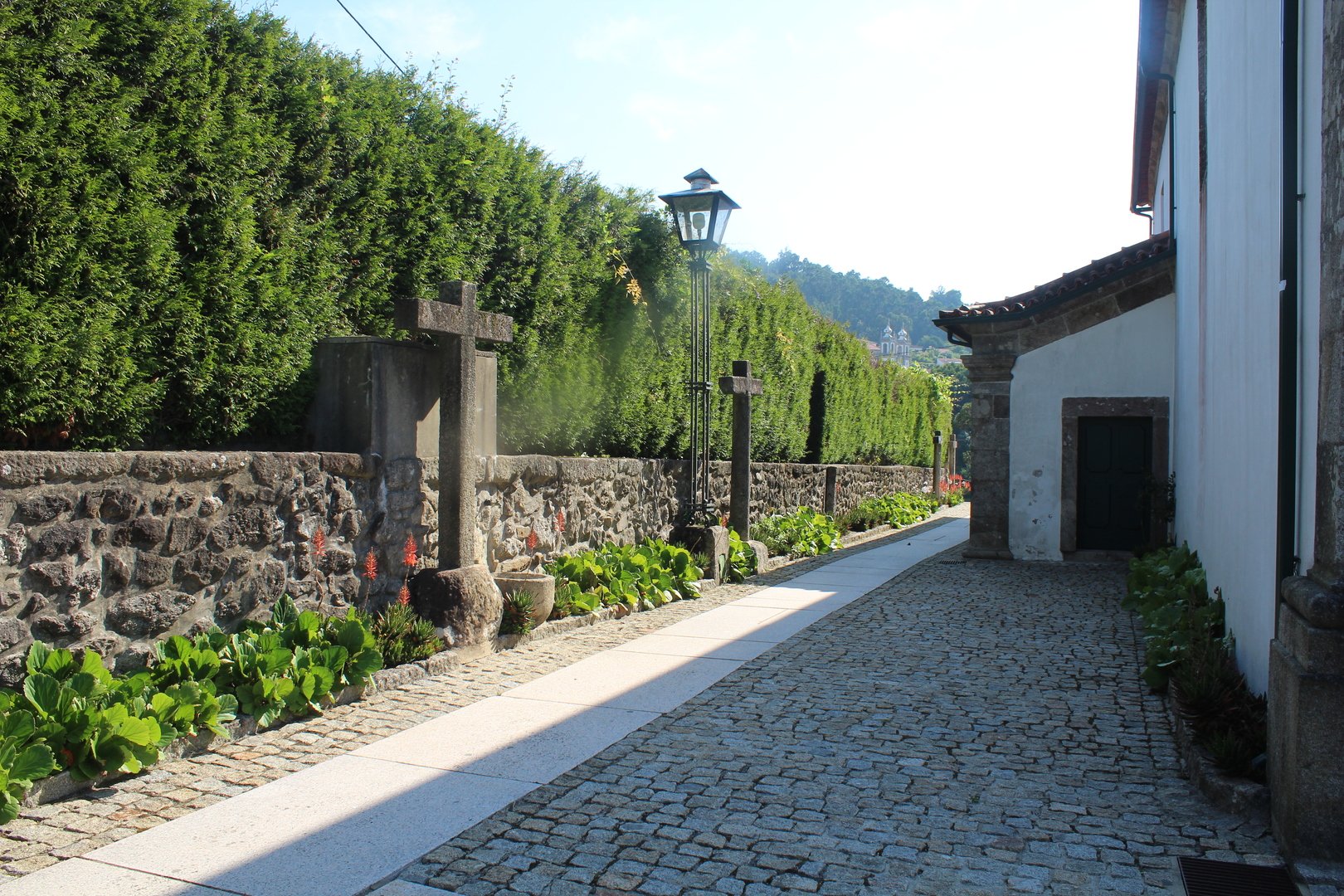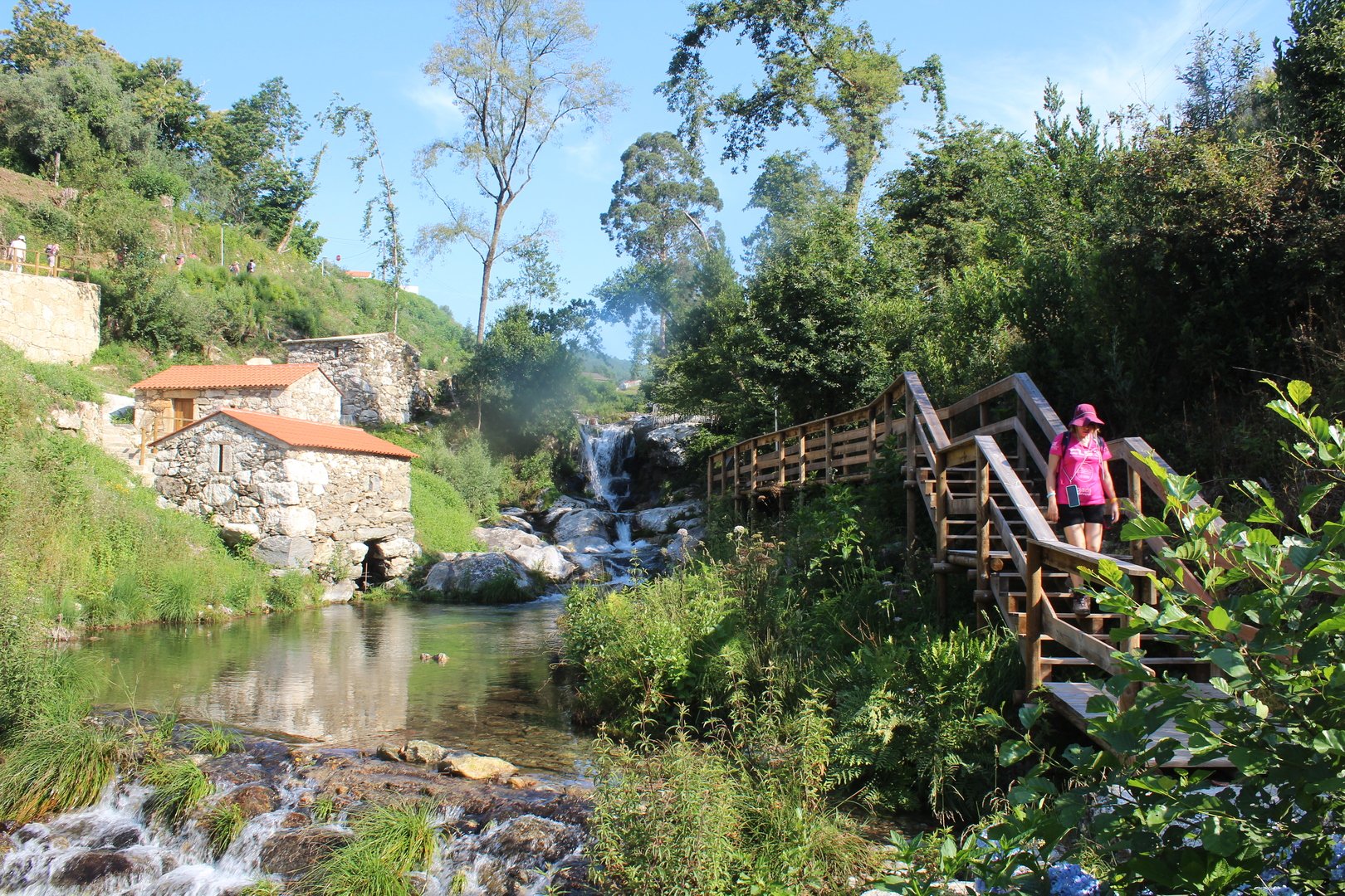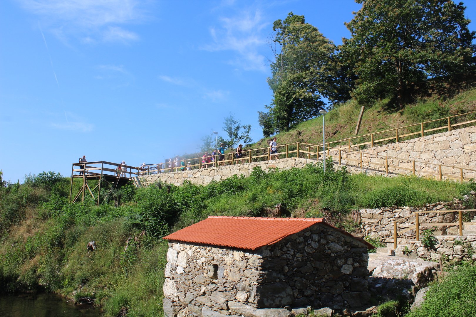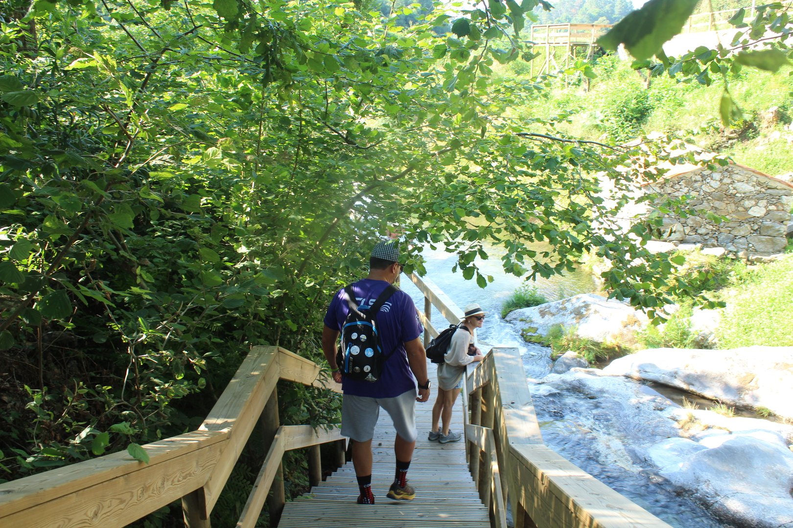 Realizado o almoço e termos aproveitado para encher os cantis, iniciamos a descida e a meio cruzamos a muito referenciada Cruz dos Franceses, local mítico do caminho por sinalizar onde o povo da Labruja montou uma emboscada às tropas de Napoleão na sua retirada. Continuamos descendo e chegamos e atingimos a pequena ermida de S. João da gruta ou da Grove, local repleto de encanto com o seu bucólico parque de merendas. Aqui passa o ribeiro de S. João, afluente do rio Labruja. Agora sempre acompanhando este ribeiro na sua descida a breve trecho cruzamos a Ponte de Porto Ribeiro e mais à frente atingimos o final deste percurso novamente junto ao Santuário do Sr. Do Socorro.