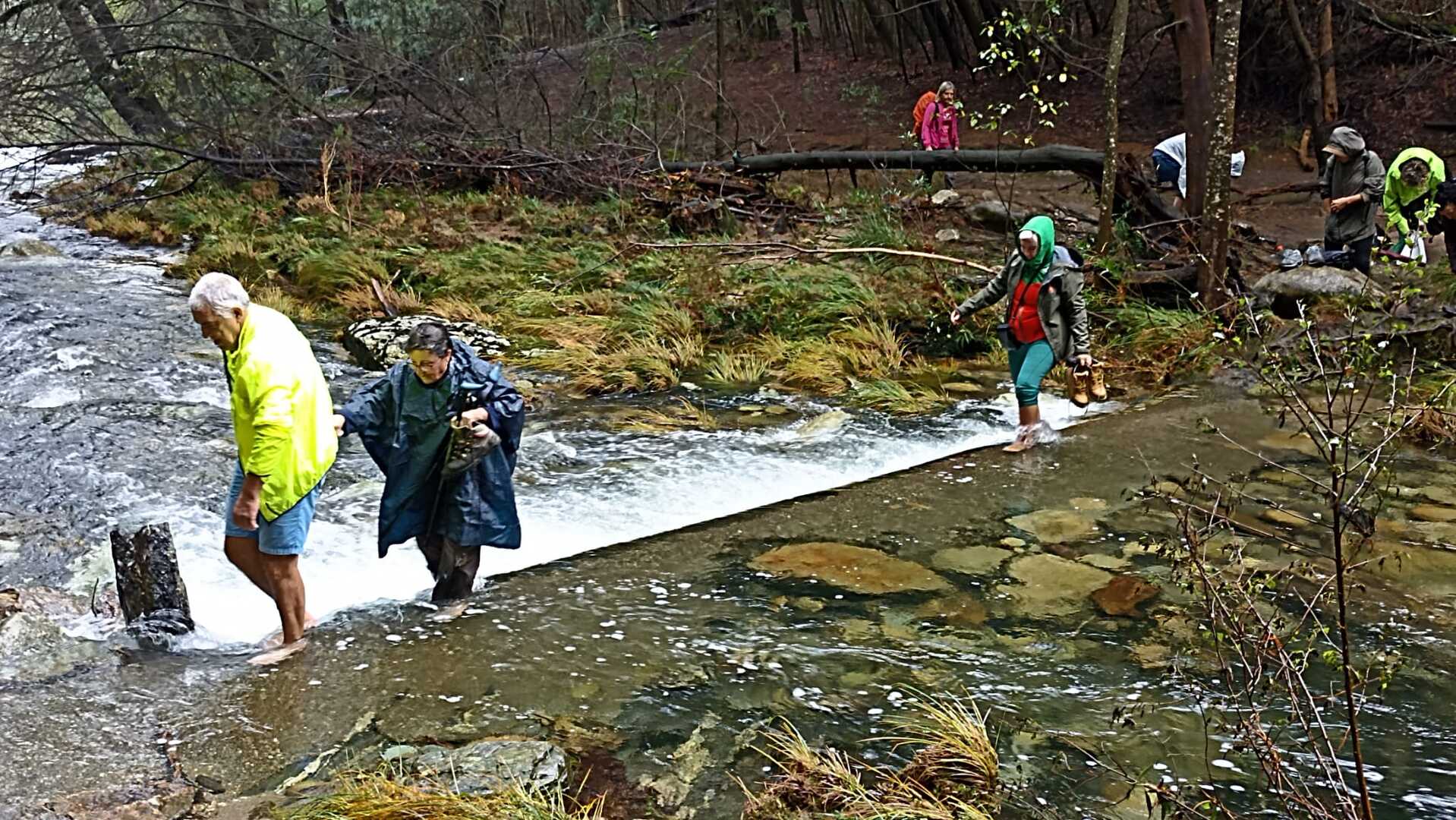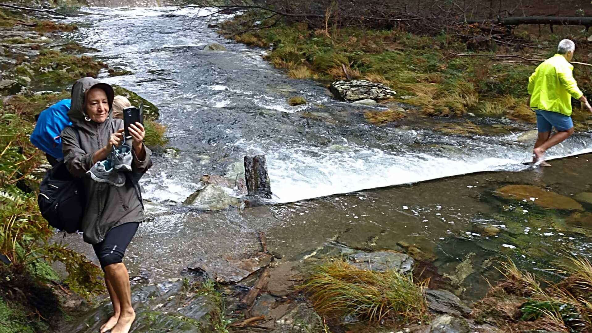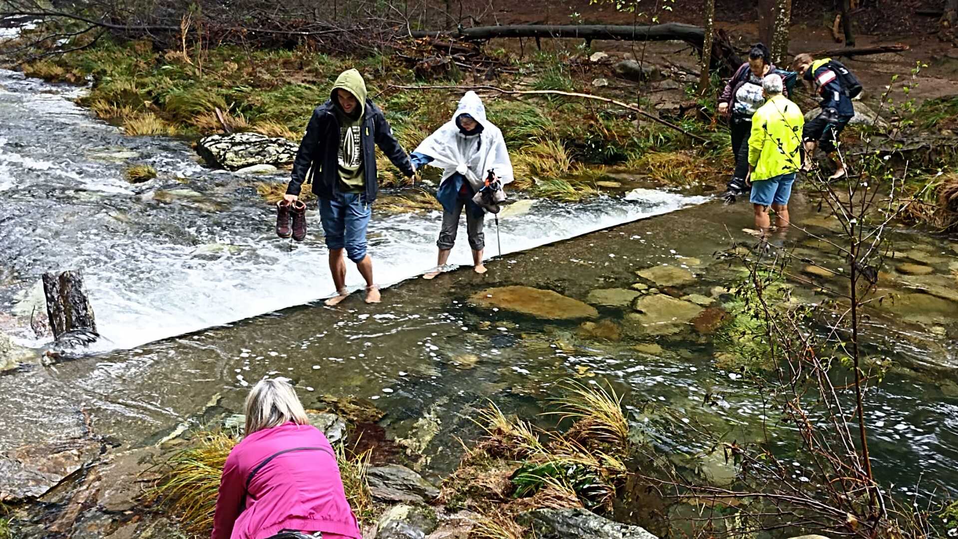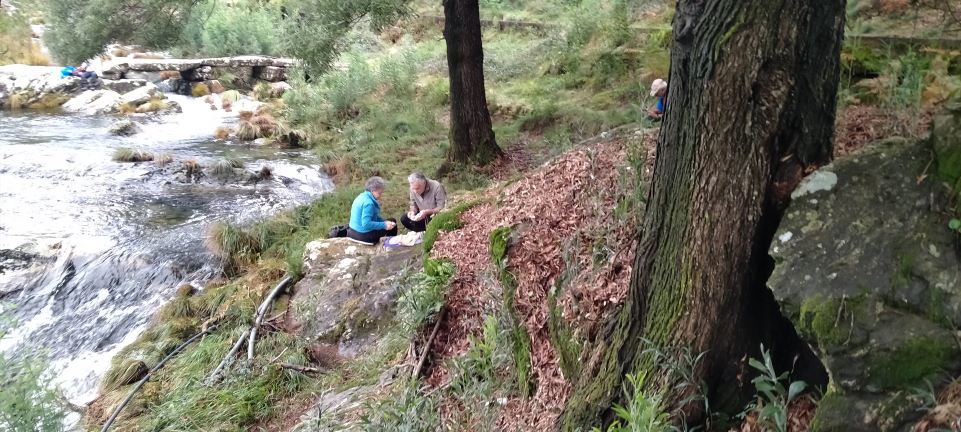 Ao chegarmos à cascata, e dado o elevado caudal do rio, alguns caminheiros optaram por descalçar as botas e atravessar o rio, enquanto outros, receando uma constipação, preferiram seguir por terra firme e encontrar-se connosco mais à frente.