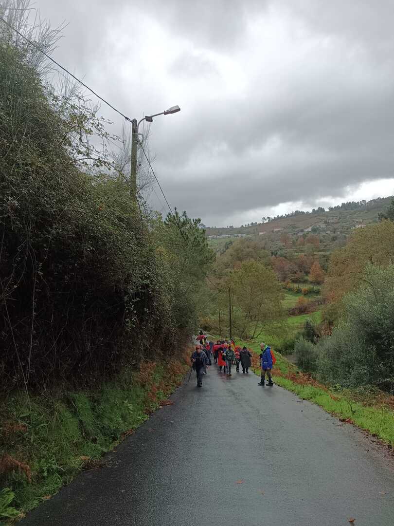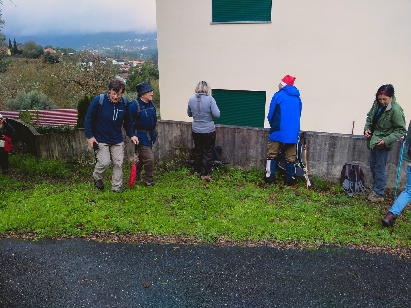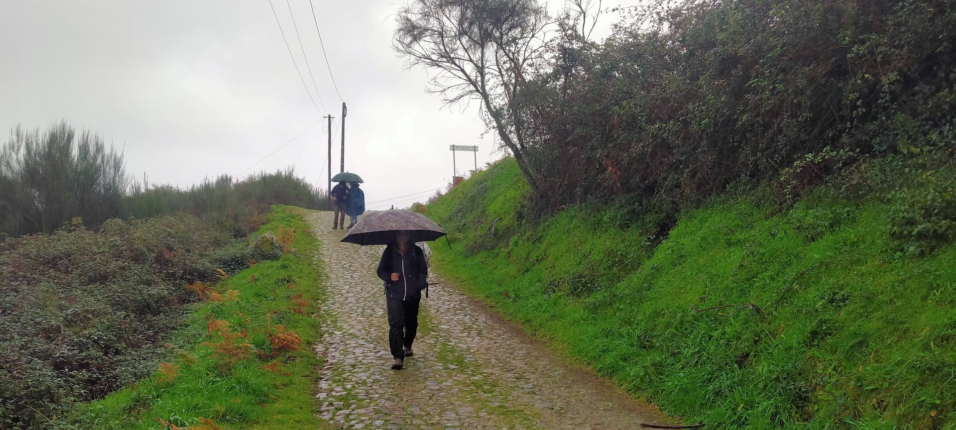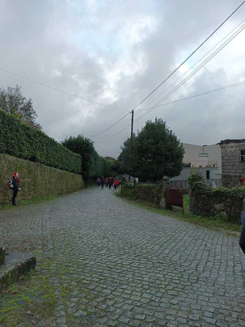 Como o estado do tempo se agravava, decidimos não seguir até ao Convento de São Martinho de Crasto, deixando essa parte para uma próxima caminhada. Começámos a descer pela Rua da Carvalha, acompanhados por uma chuvinha persistente, e continuando por mais algumas calçadas escorregadias, chegámos ao final do percurso.