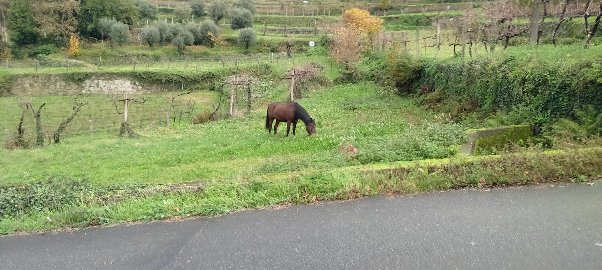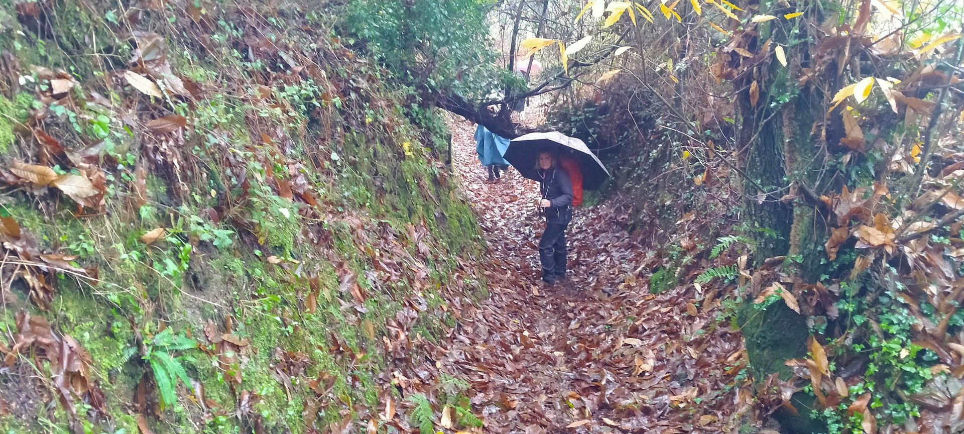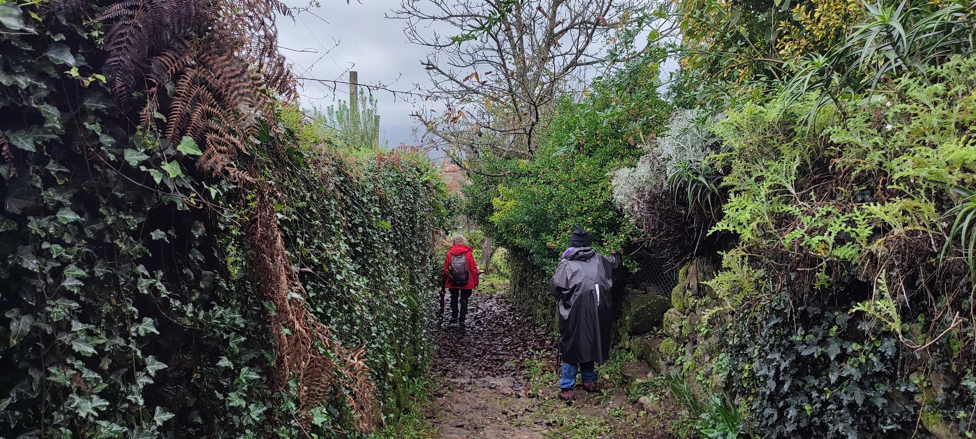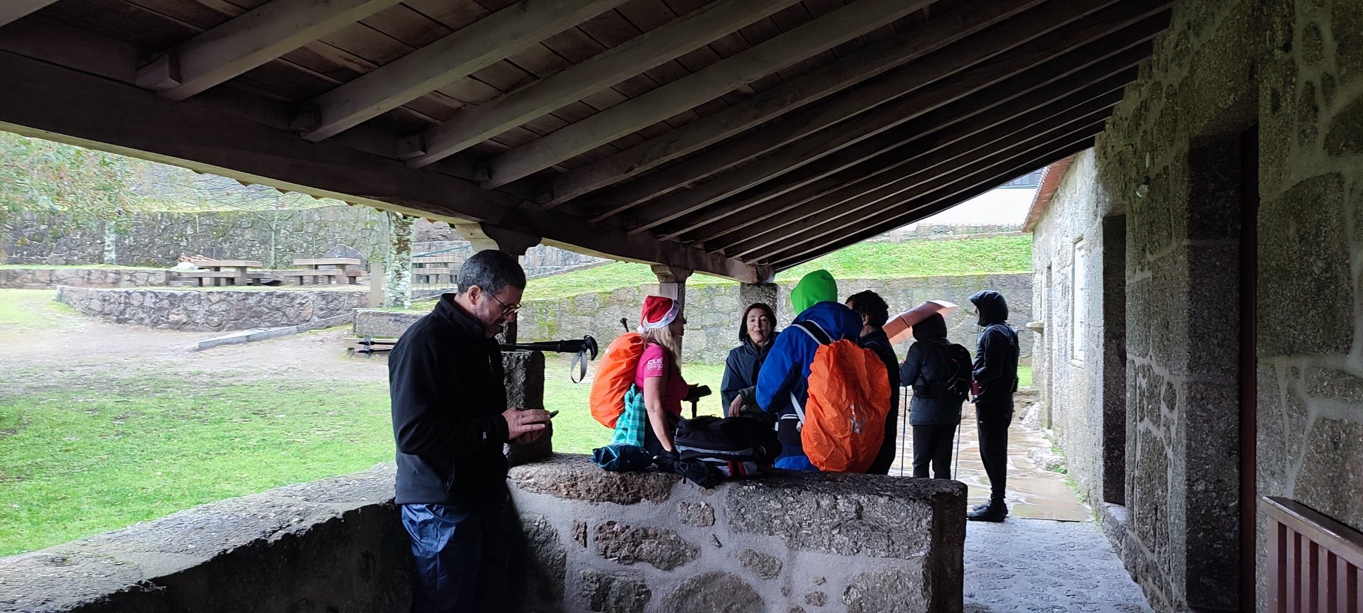 Como o estado do tempo se agravava, decidimos não seguir até ao Convento de São Martinho de Crasto, deixando essa parte para uma próxima caminhada. Começámos a descer pela Rua da Carvalha, acompanhados por uma chuvinha persistente, e continuando por mais algumas calçadas escorregadias, chegámos ao final do percurso.