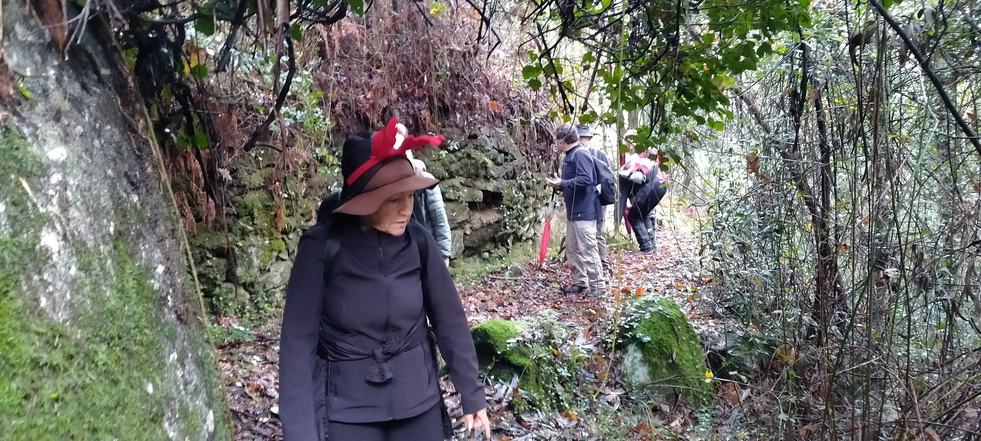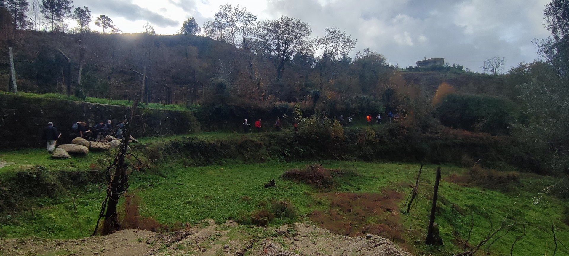 Começámos então a subir por um caminho empedrado até ao lugar de Bruzende, onde fizemos uma paragem para tomar o lanche da manhã. Após este momento de descanso, retomámos o caminho com cuidado, pois este apresentava-se escorregadio.